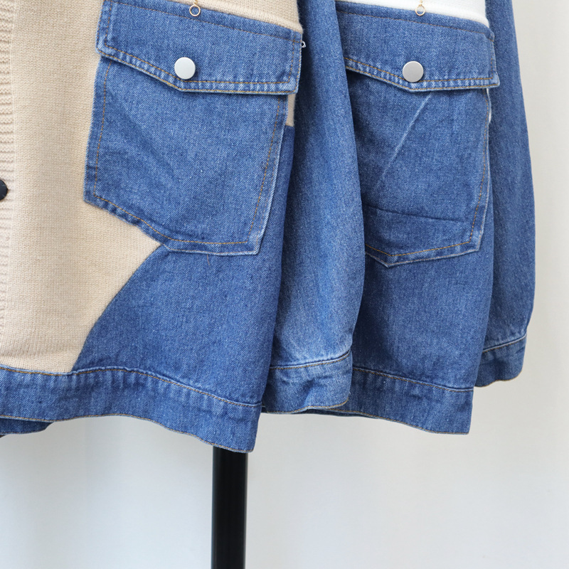 데님 스플 라이스 니트 카디건 가을, 겨울 새로운 스타일 루즈 캐주얼 패션 다목적 게으른 스타일 스웨터 자켓 여성용