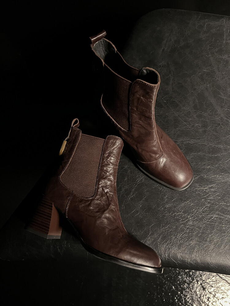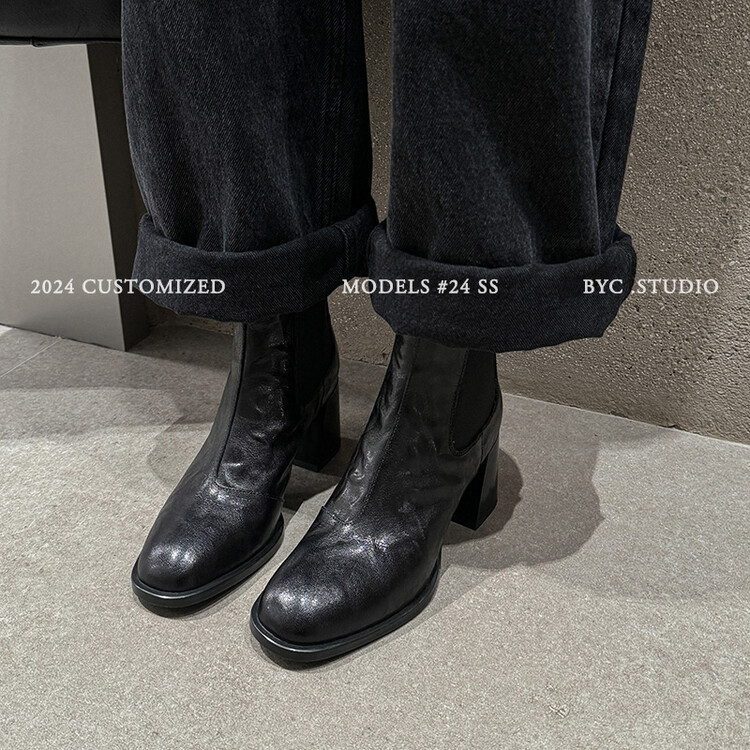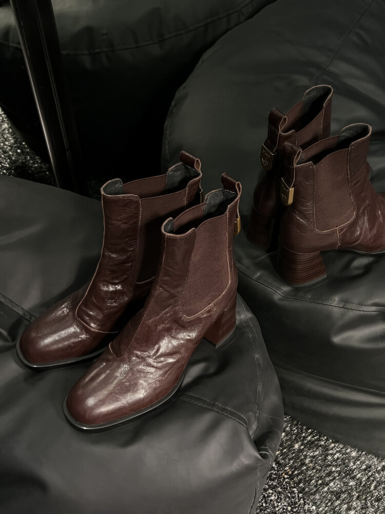 레트로 양가죽 두꺼운 굽 숏부츠 여성용 단화 2025 가을 겨울 신상 라운드 토 슬립온 하이힐 및 누드 부츠 여성용 숏부츠스토어 가기