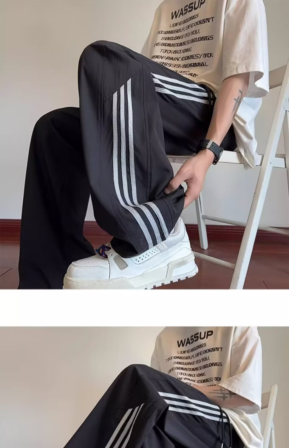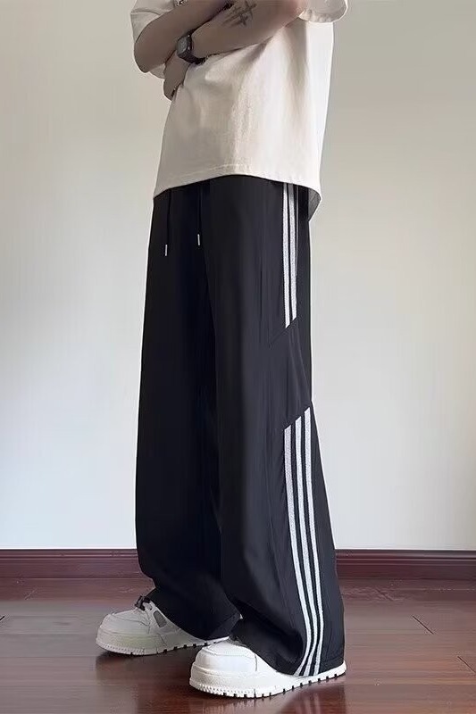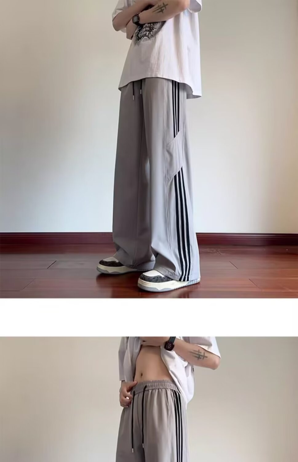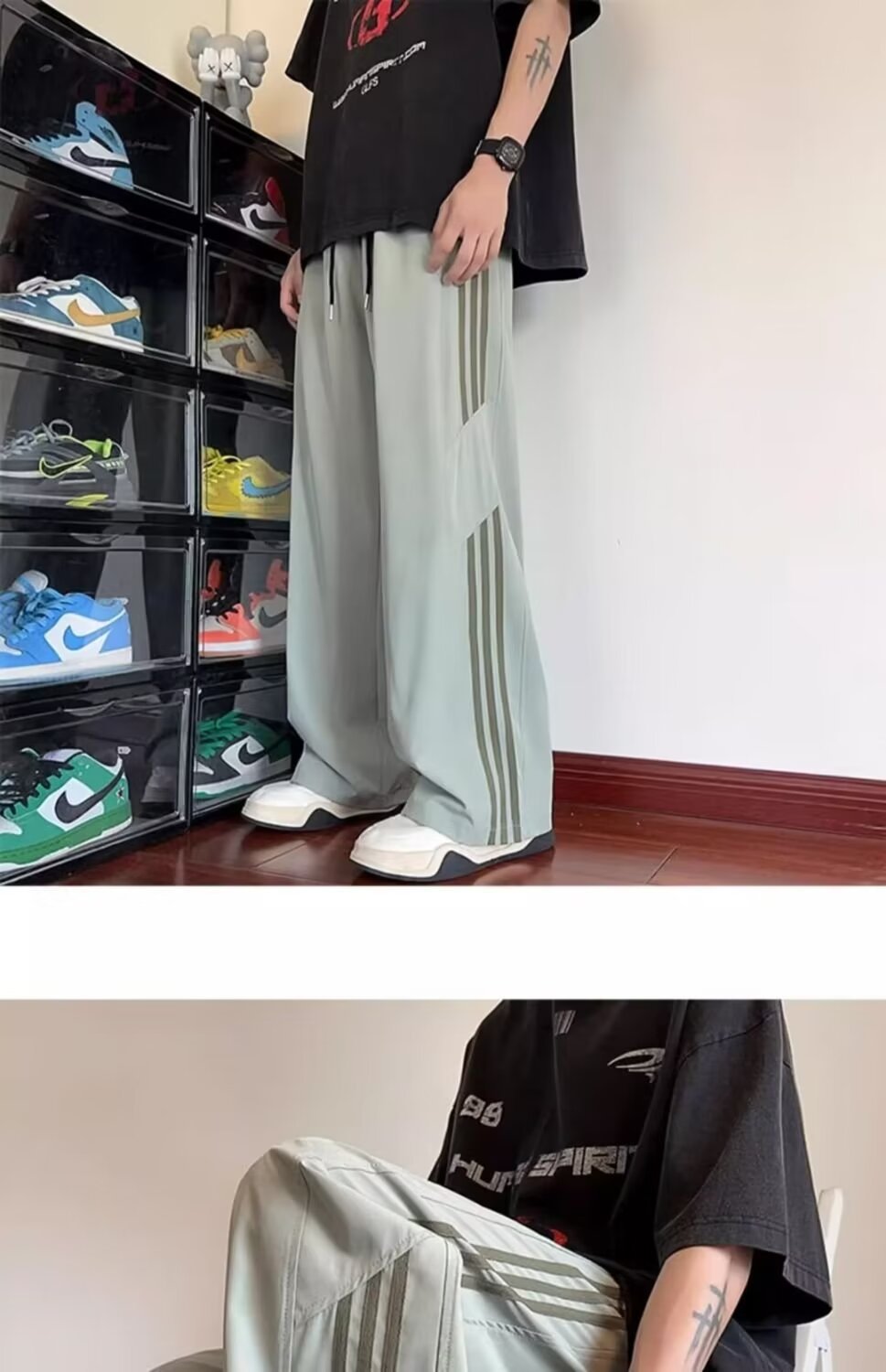 아메리칸 스타일 3 바 아이스 실크 빠른 건조 바지 남자 여름 얇은 하이 스트리트 느슨한 바지 넓은 다리 캐주얼 스포츠 바지 여름스토어 가기