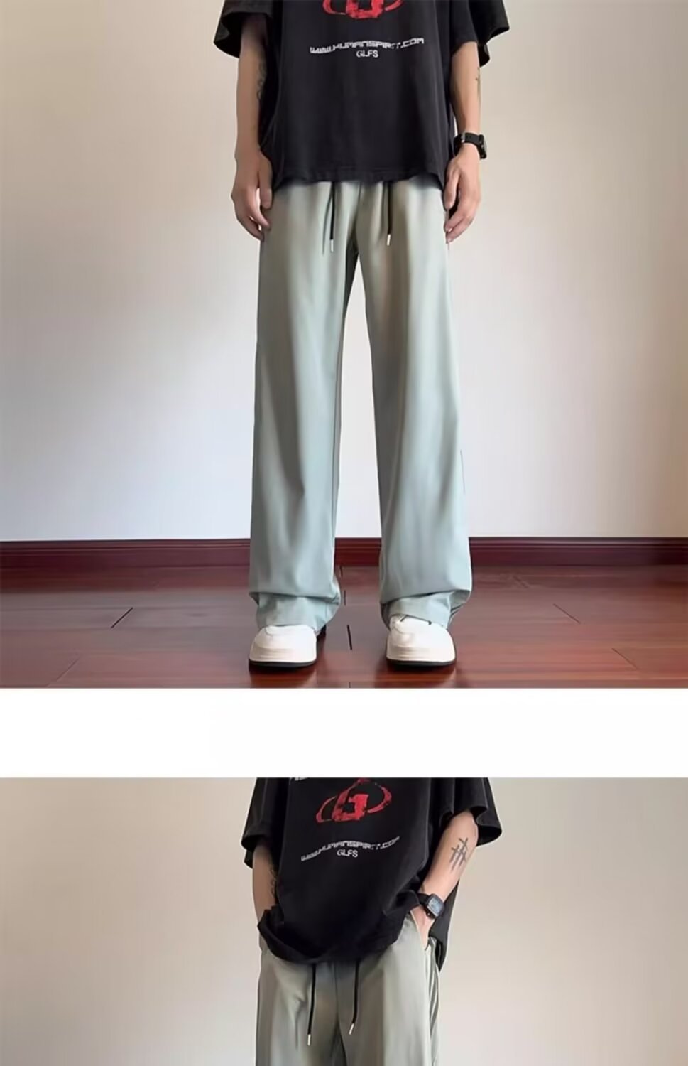 아메리칸 스타일 3 바 아이스 실크 빠른 건조 바지 남자 여름 얇은 하이 스트리트 느슨한 바지 넓은 다리 캐주얼 스포츠 바지 여름