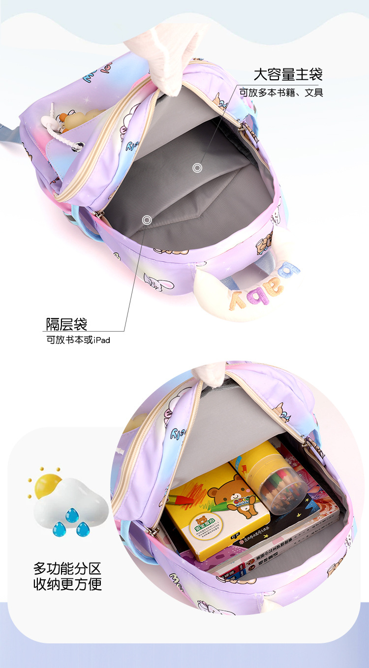 유치원 Schoolbag 소녀의 중산층 배낭 귀여운 경량 만화 곰 튀는 물 소년 토끼 배낭