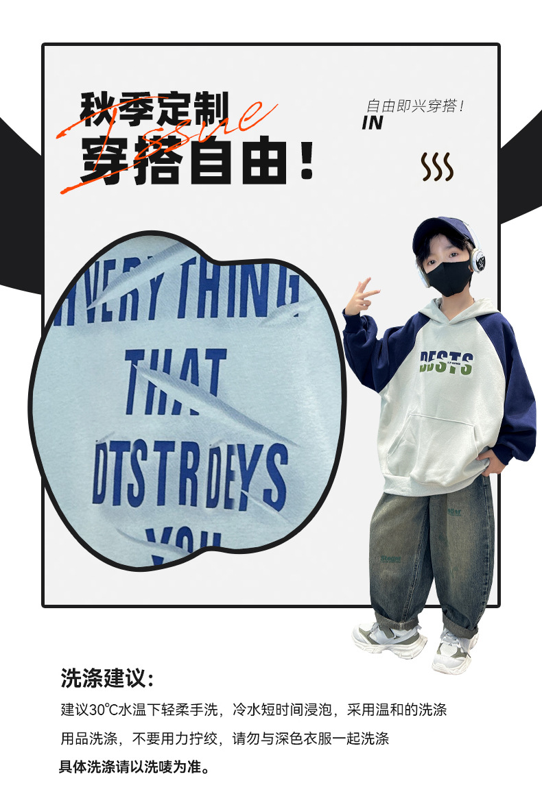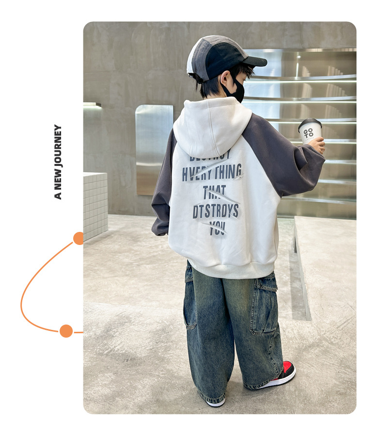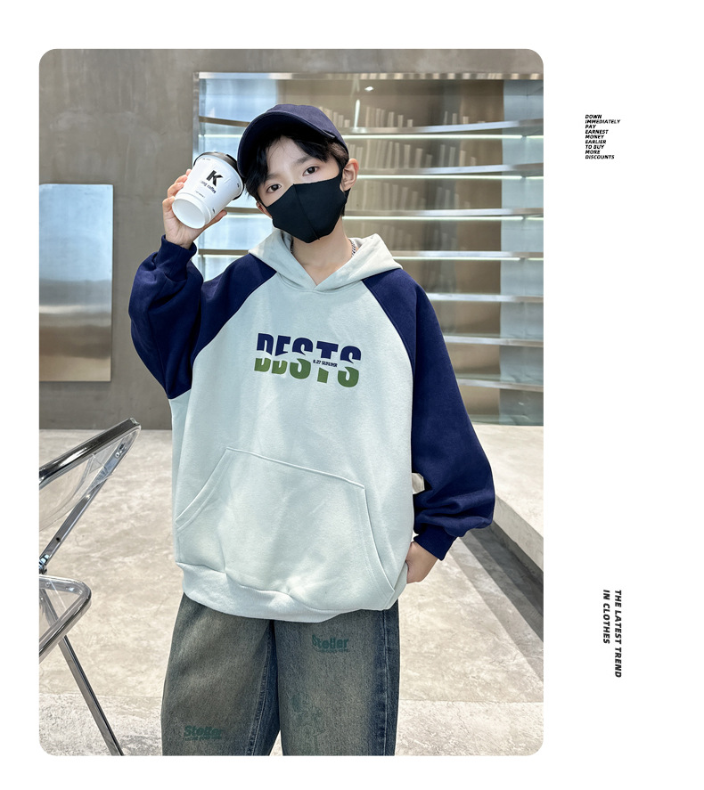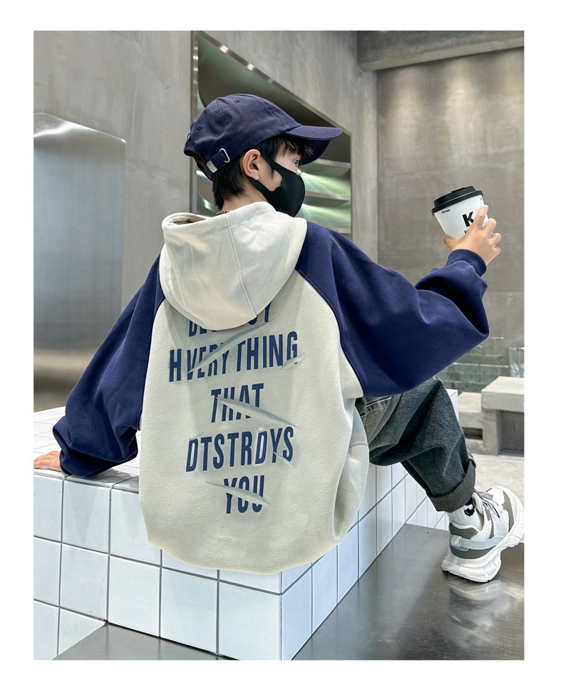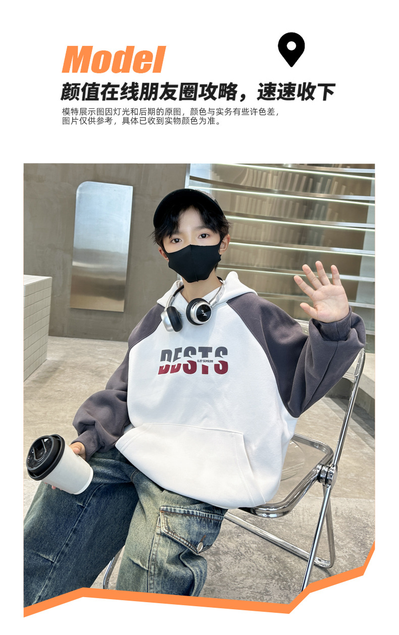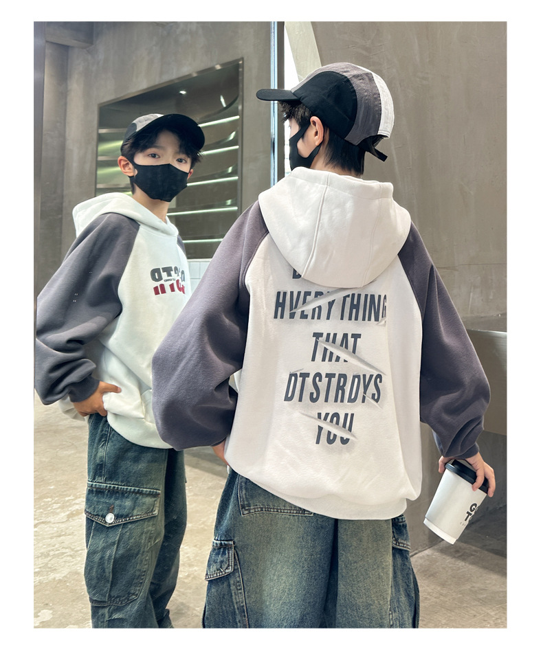 아동복 소년 운동복 봄, 가을 2025 새로운 스타일 중대형 아동 가을 소년상의 긴팔 가을 의류 후드 트렌드