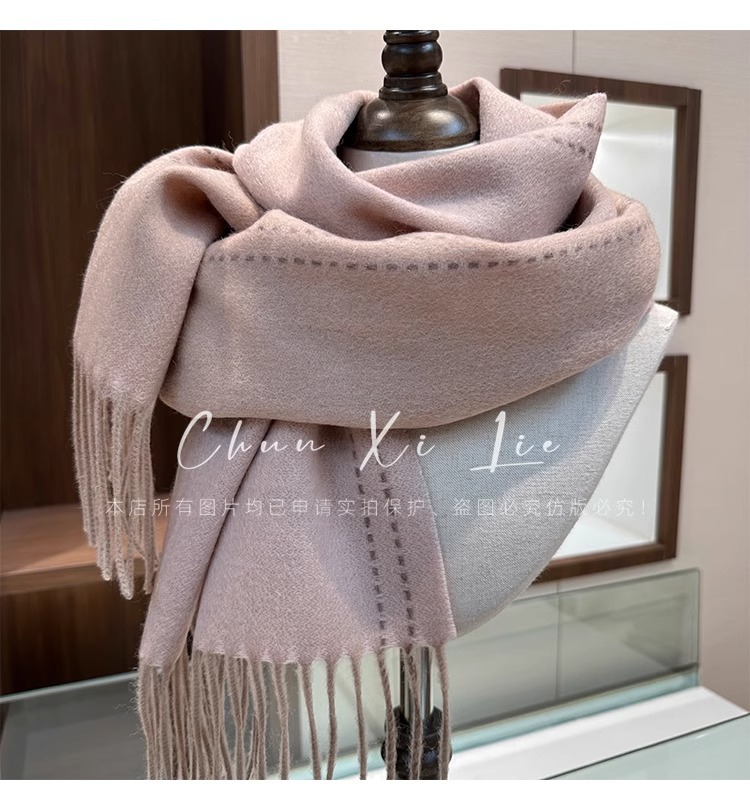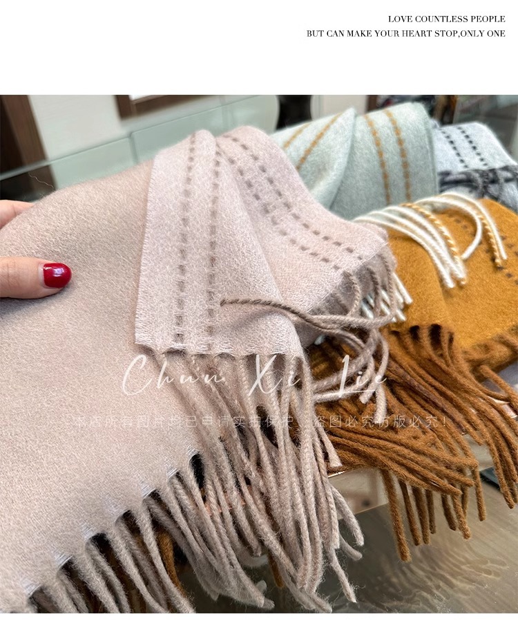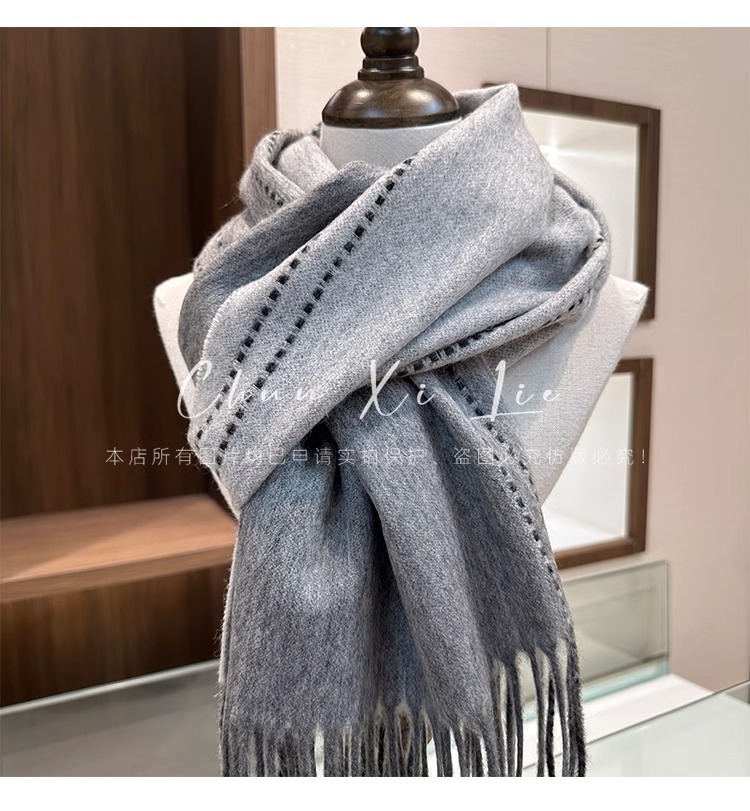 100 순수 양모 스카프 여성의 가을 및 겨울 올 매치 도트 스트라이프 따뜻한 목 커플 남성 고급 이중 사용 목도리스토어 가기