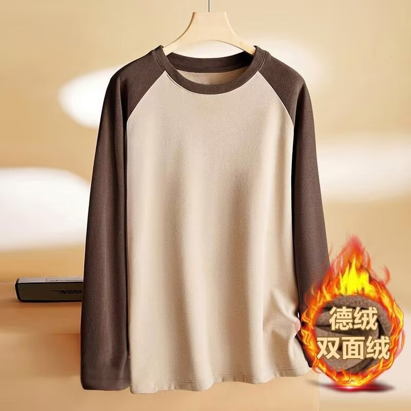 국경 간 가을과 겨울 독일 벨벳 따뜻한 둥근 목 스웨터 남성과 여성의 동일한 복합 우유 실크 솔리드 컬러 느슨한 긴팔 탑
