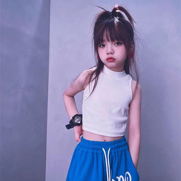 소녀 2024 여름 소녀 아기 순면 조끼 민소매 슬링 높은 허리 재즈 댄스 테이블 공연 의상 부모-어린이스토어 가기