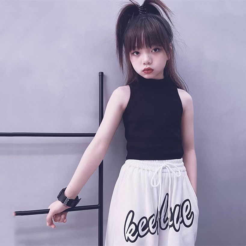 소녀 2024 여름 소녀 아기 순면 조끼 민소매 슬링 높은 허리 재즈 댄스 테이블 공연 의상 부모-어린이