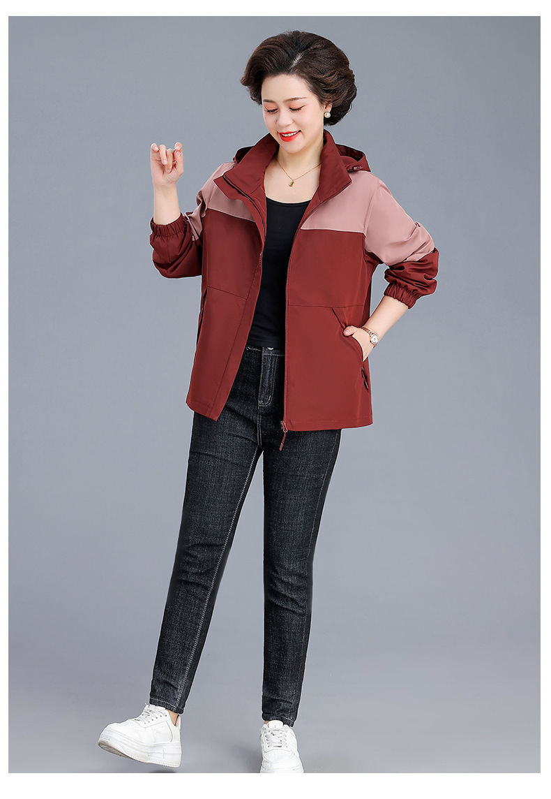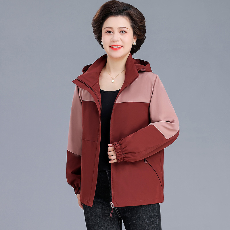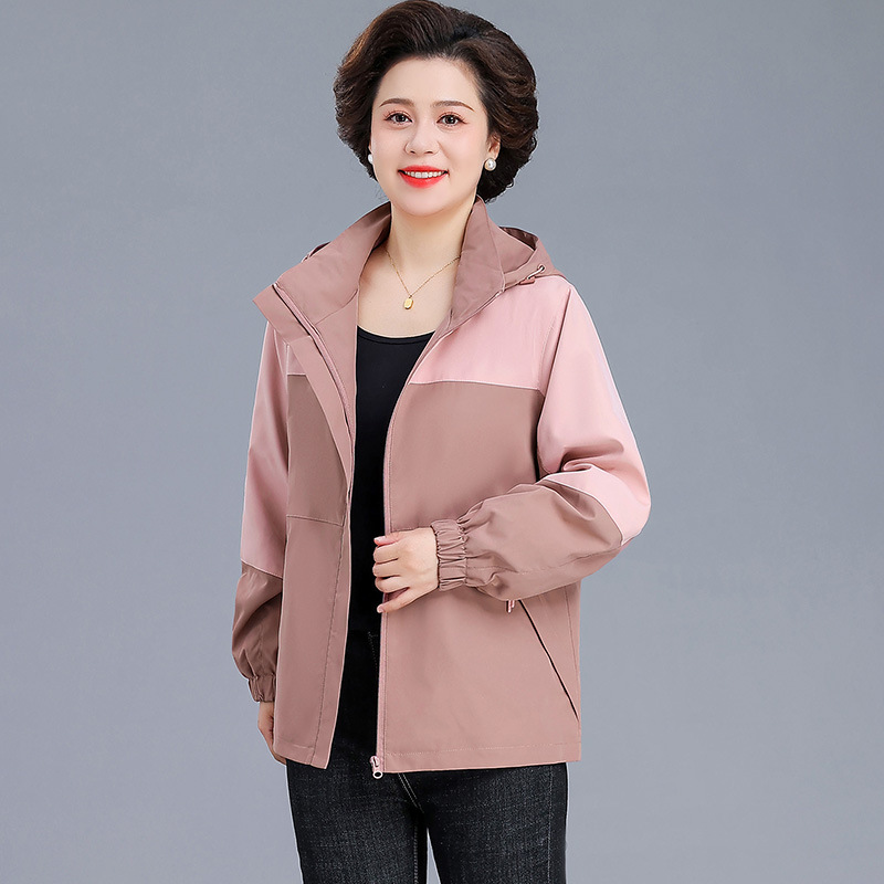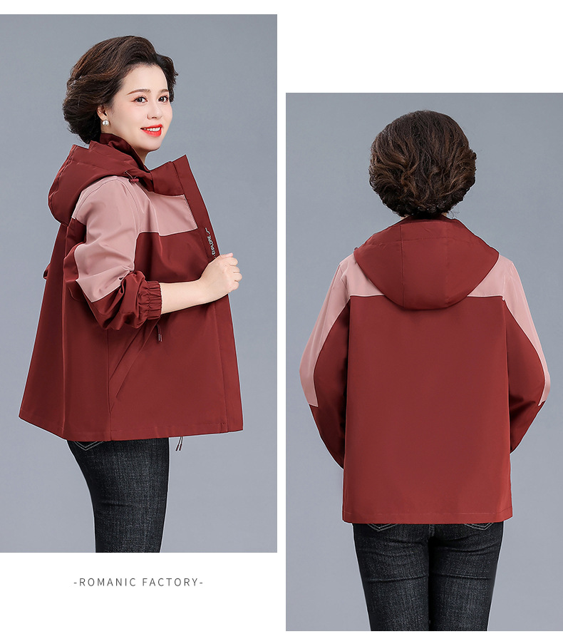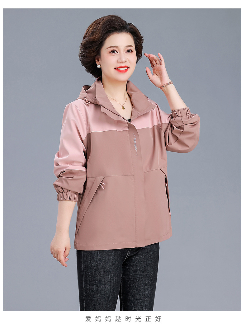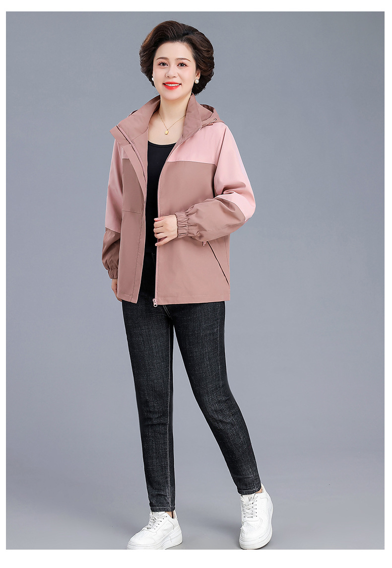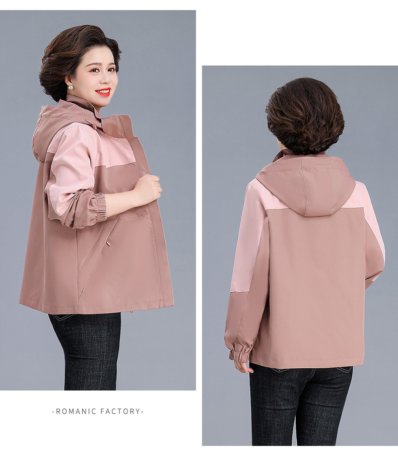 시어머니 가을 코트 짧은 2024 중년 및 노인 여성 야외 재킷 캐주얼 윈드 브레이커 후드 재킷