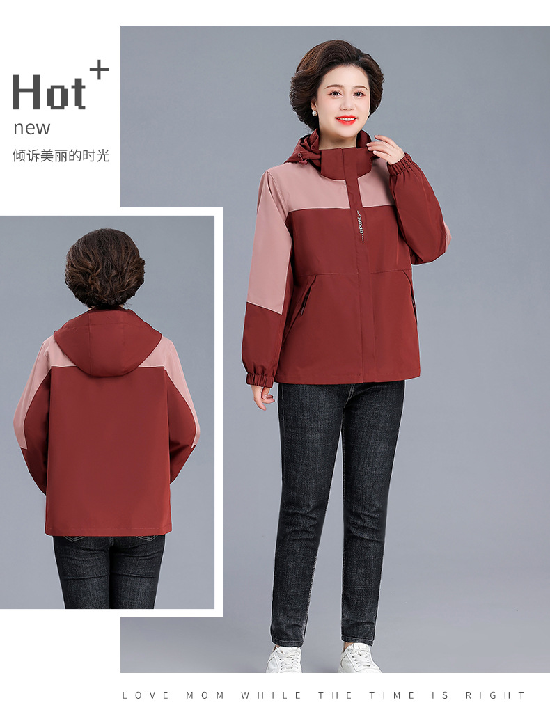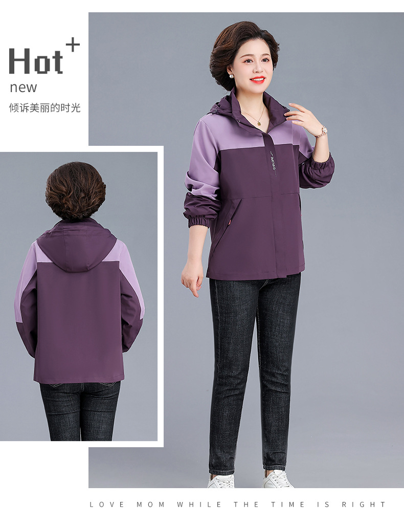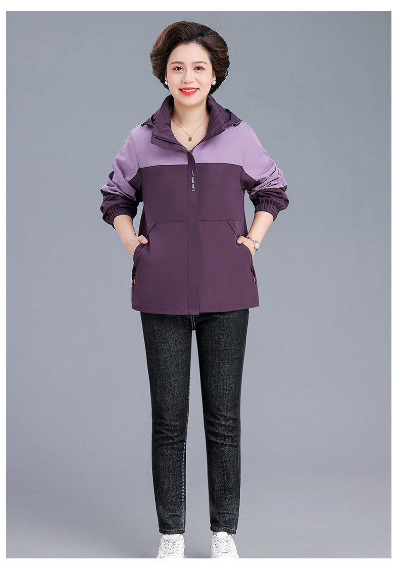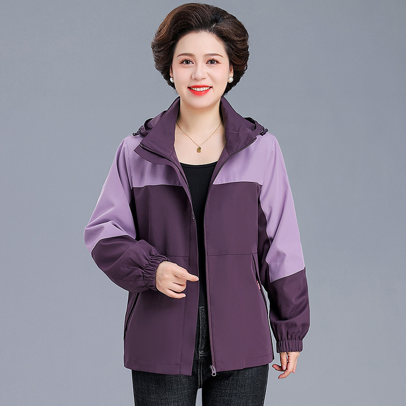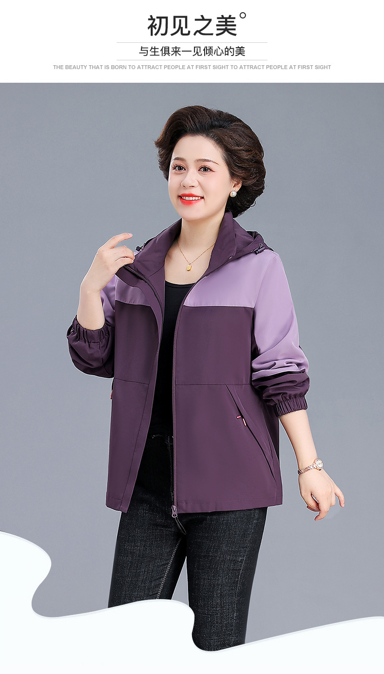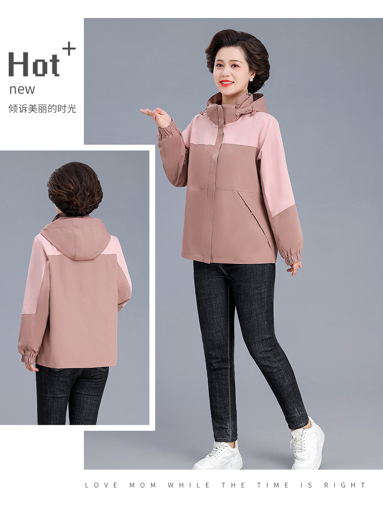 시어머니 가을 코트 짧은 2024 중년 및 노인 여성 야외 재킷 캐주얼 윈드 브레이커 후드 재킷