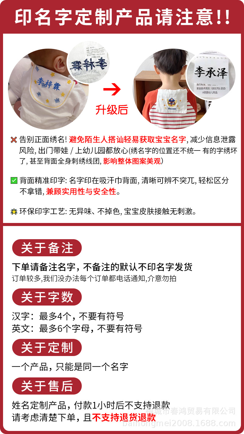 어린이용 순면 A급 땀흡수 타월, 유치원 아기용 등받이 패드, 아기 여름용 남아 통기성 땀흡수 타월, 이름 인쇄 가능스토어 가기