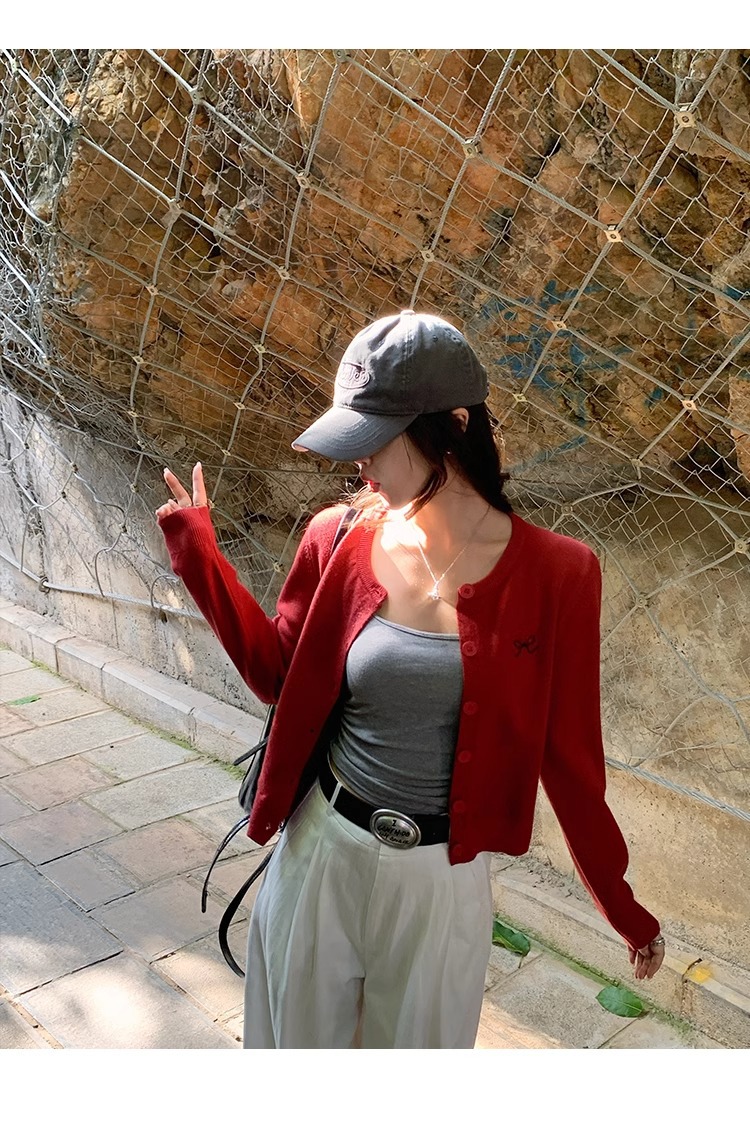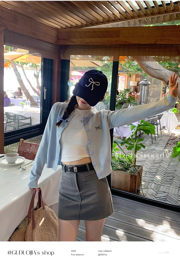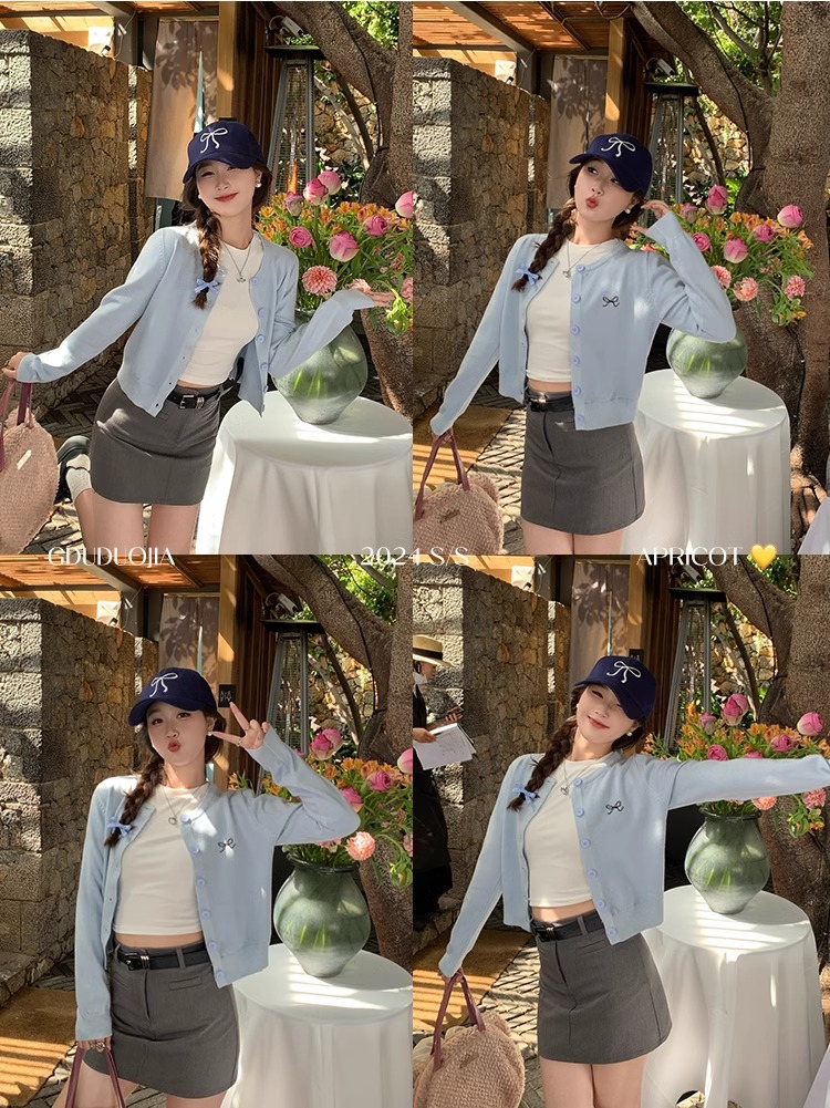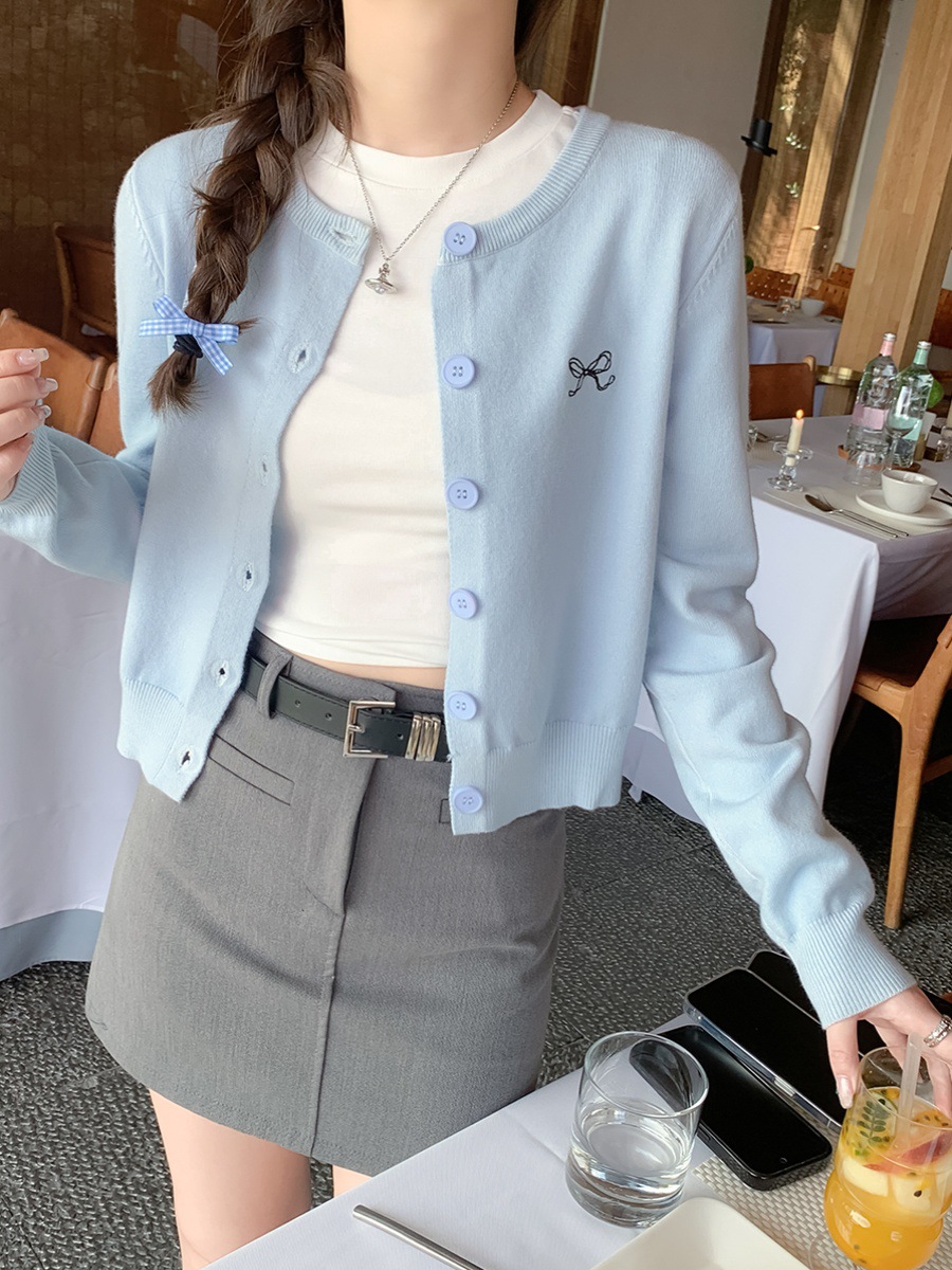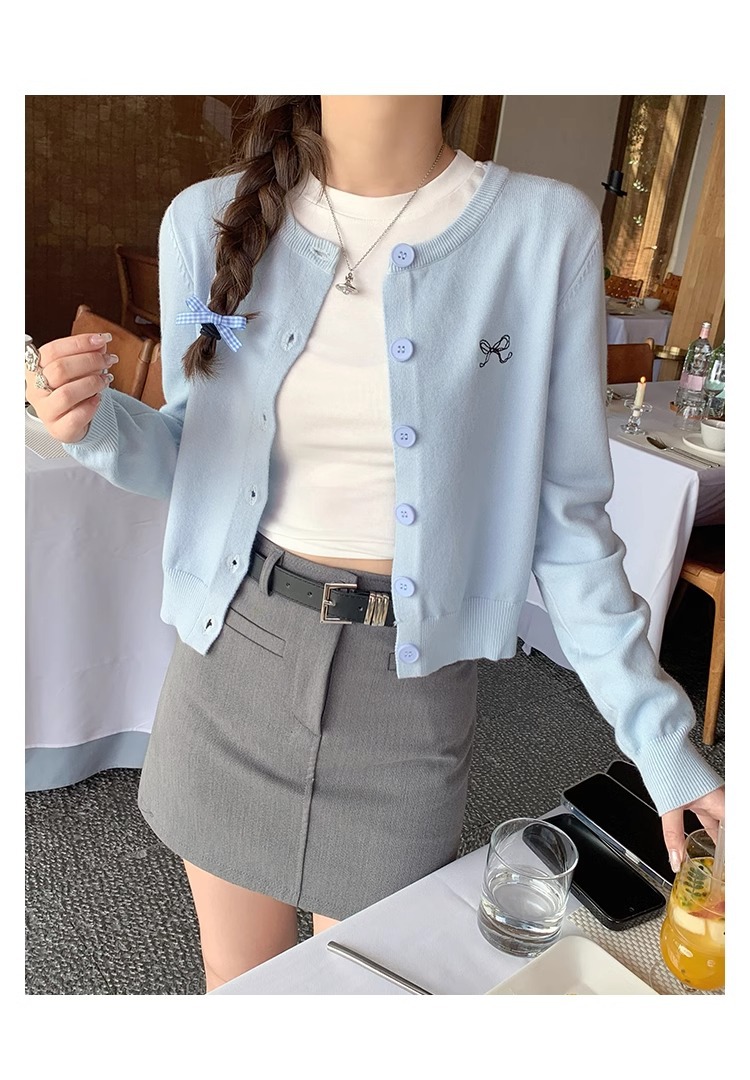 프렌치 스타일 가디건 슬림핏 신상 니트웨어 패션 숏 스타일 라운드넥 긴팔 반하이넥 부드러운 탑 봄가을용스토어 가기