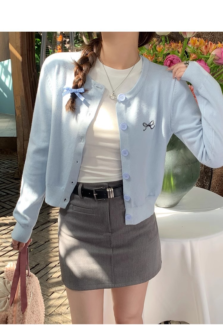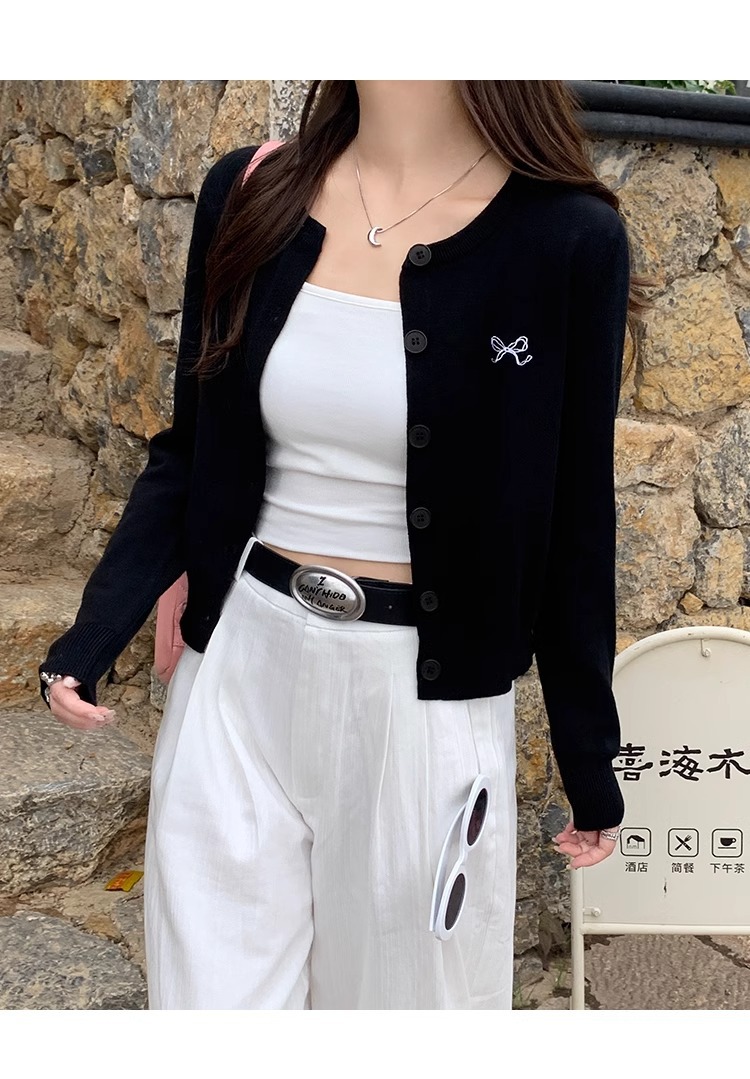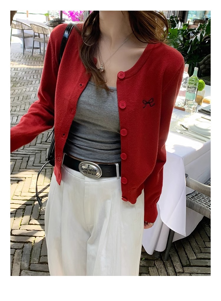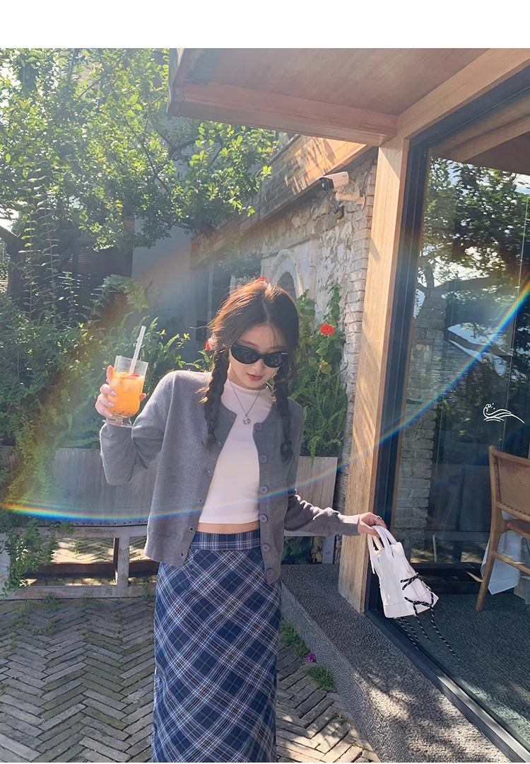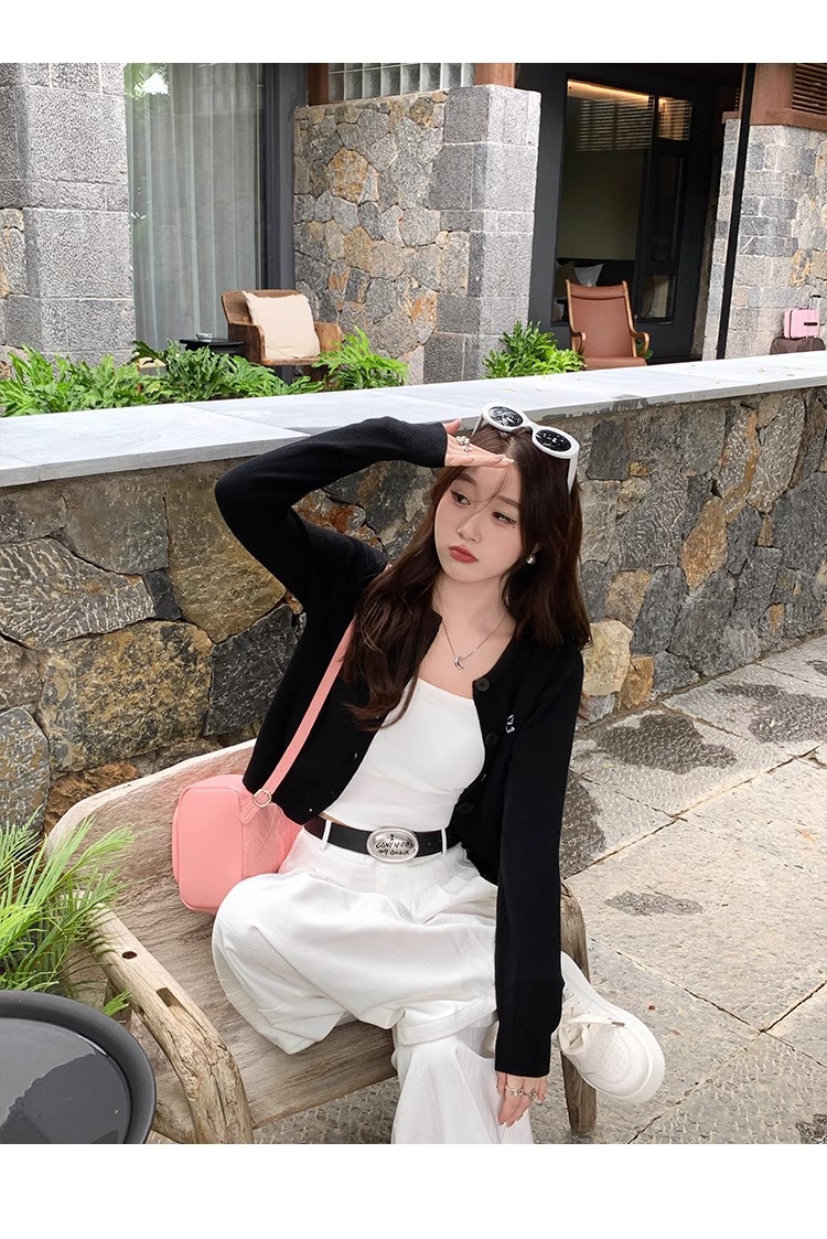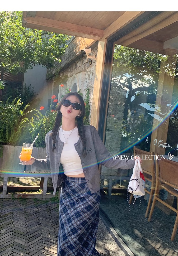 프렌치 스타일 가디건 슬림핏 신상 니트웨어 패션 숏 스타일 라운드넥 긴팔 반하이넥 부드러운 탑 봄가을용스토어 가기