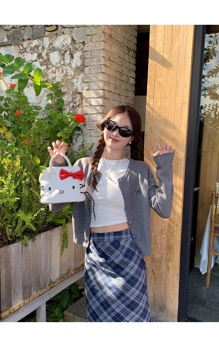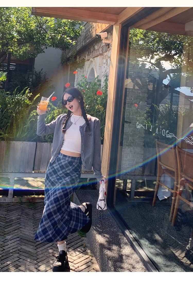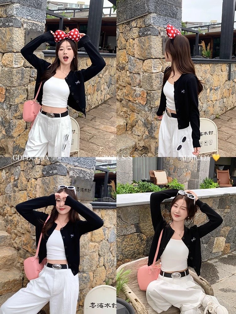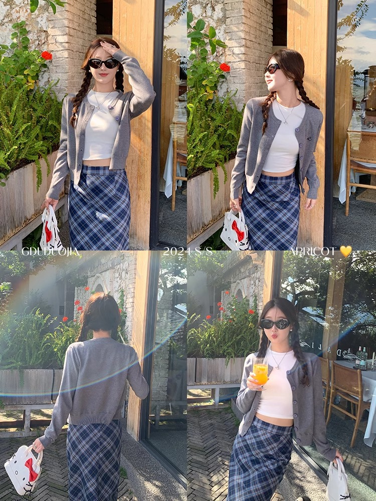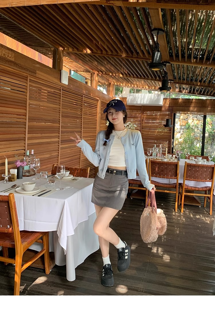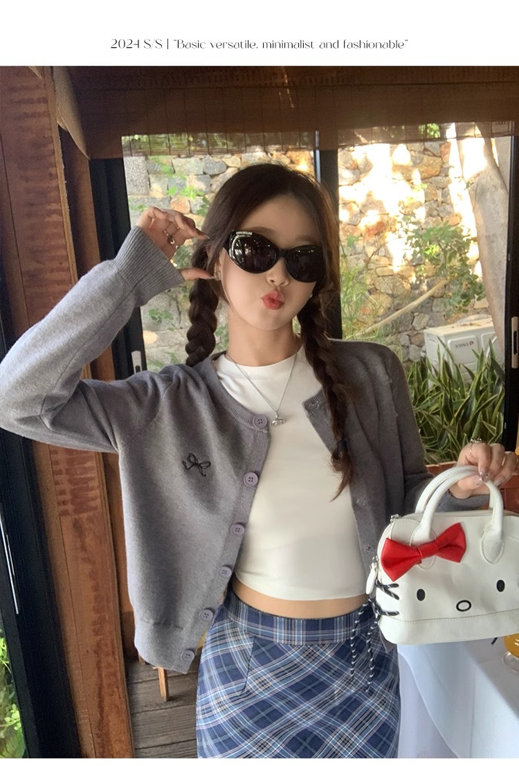 프렌치 스타일 가디건 슬림핏 신상 니트웨어 패션 숏 스타일 라운드넥 긴팔 반하이넥 부드러운 탑 봄가을용스토어 가기
