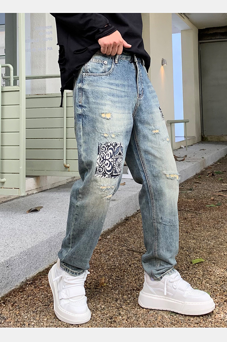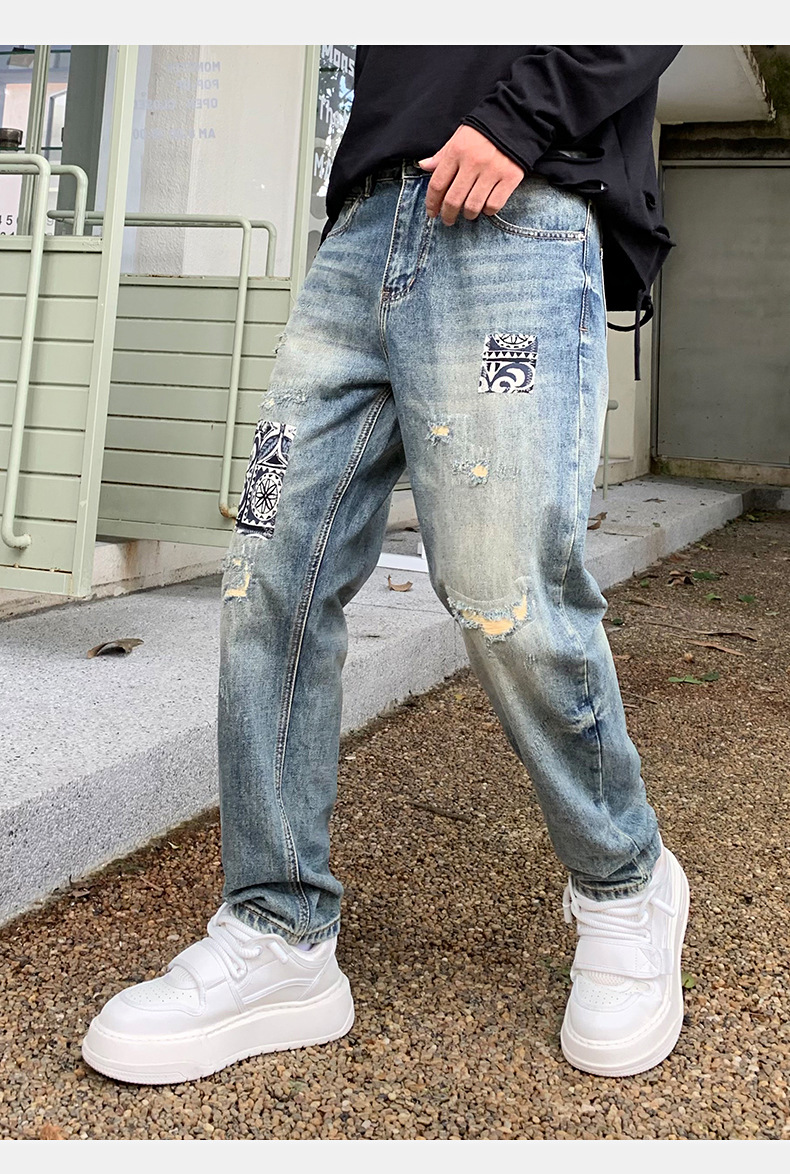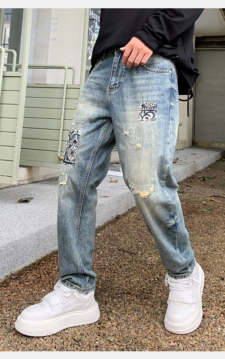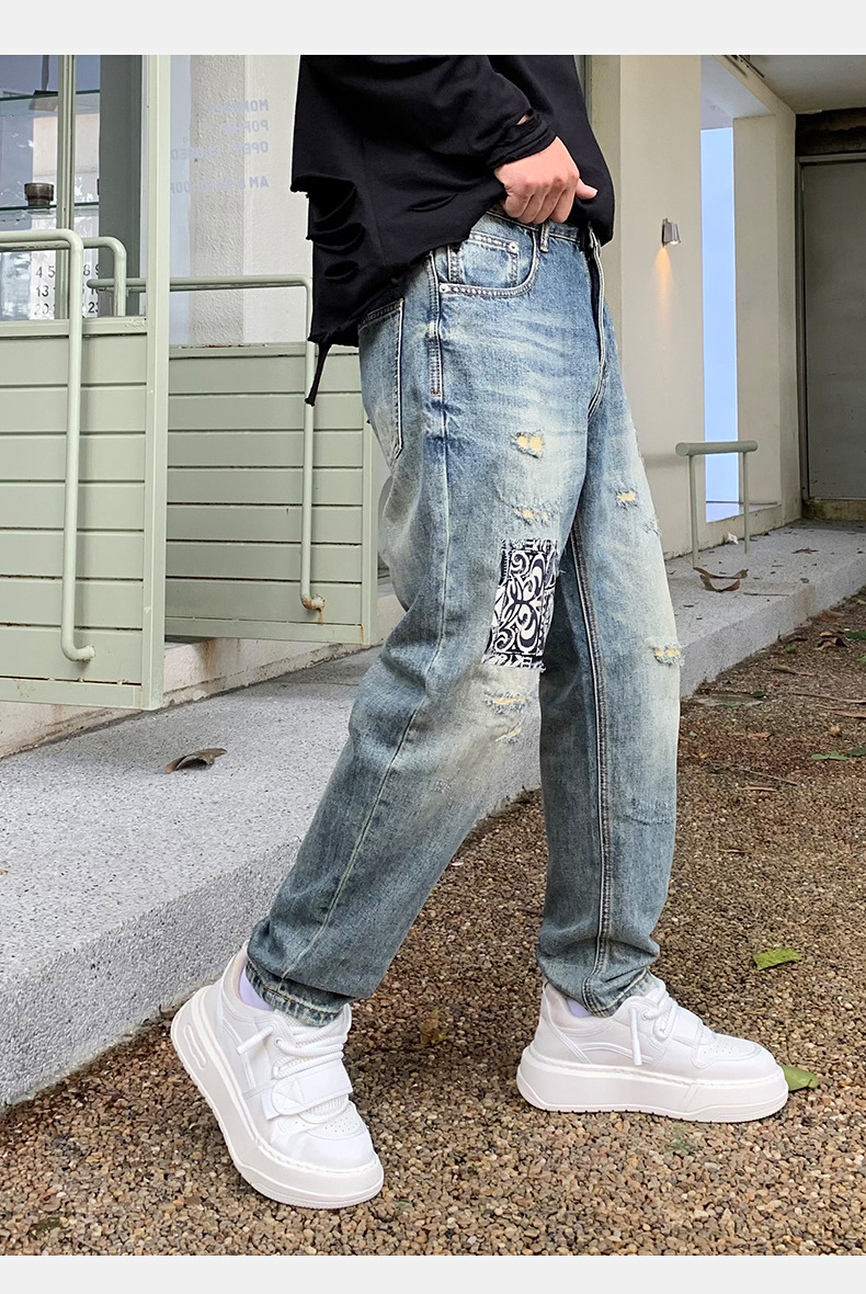 빈티지 데님 토레 바지 긁힌 구멍 패치 할란 바지 유행 브랜드 남성 패션 테이퍼 진 청바지 느슨한 바지스토어 가기