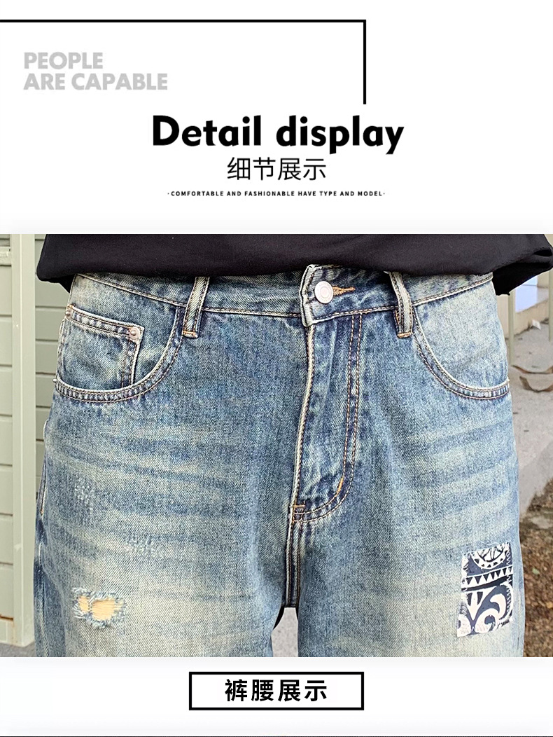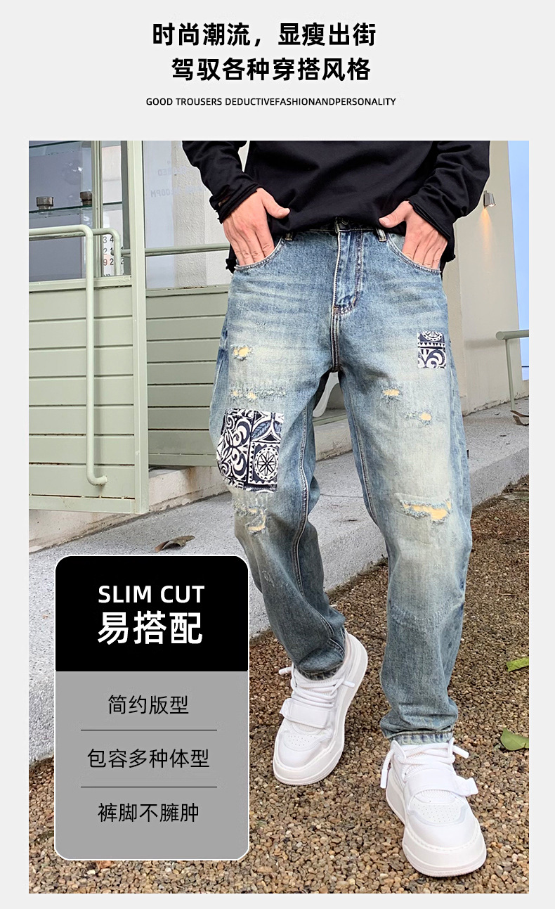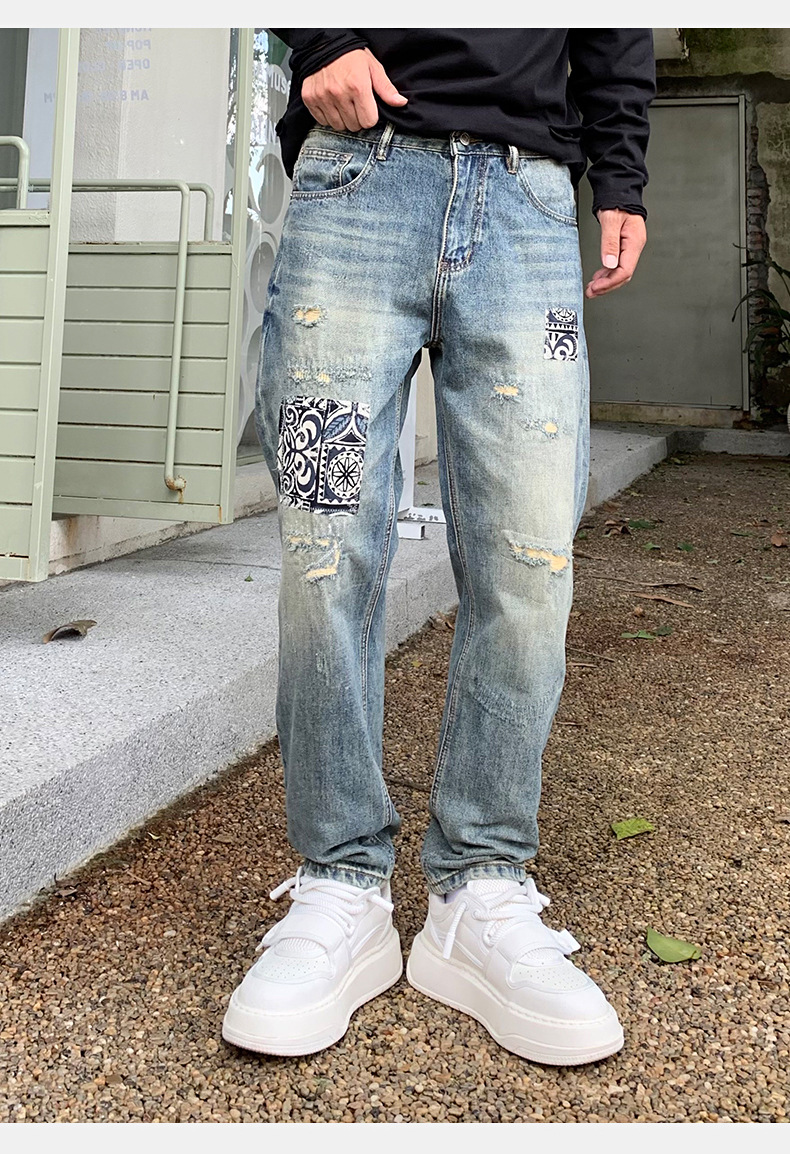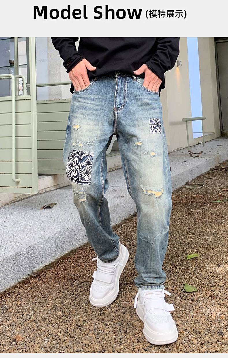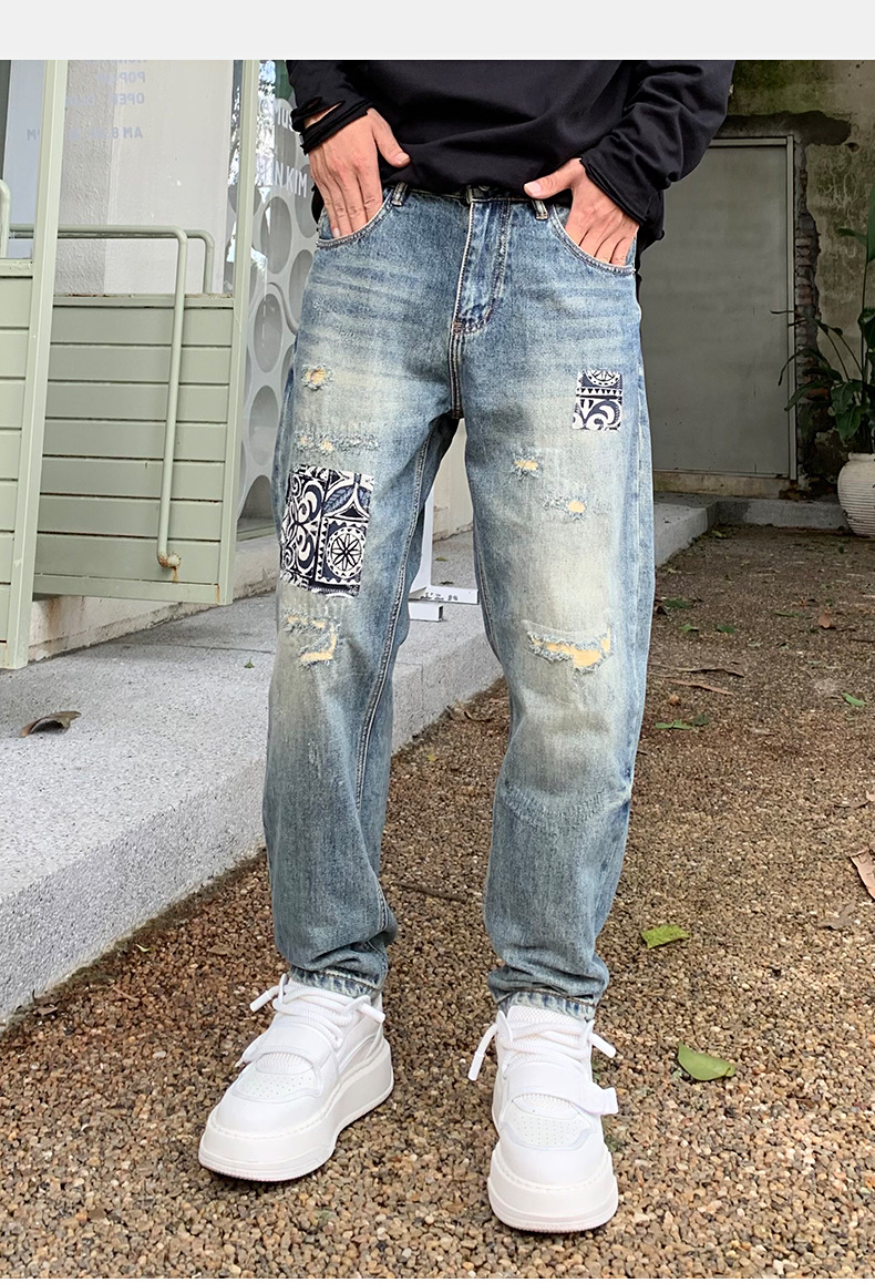 빈티지 데님 토레 바지 긁힌 구멍 패치 할란 바지 유행 브랜드 남성 패션 테이퍼 진 청바지 느슨한 바지스토어 가기