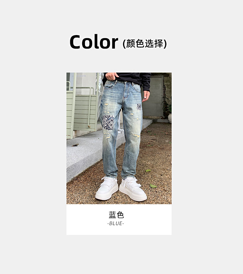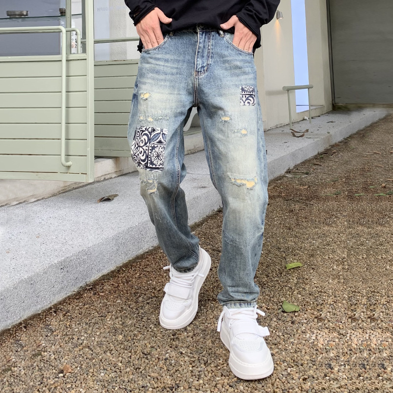 빈티지 데님 토레 바지 긁힌 구멍 패치 할란 바지 유행 브랜드 남성 패션 테이퍼 진 청바지 느슨한 바지