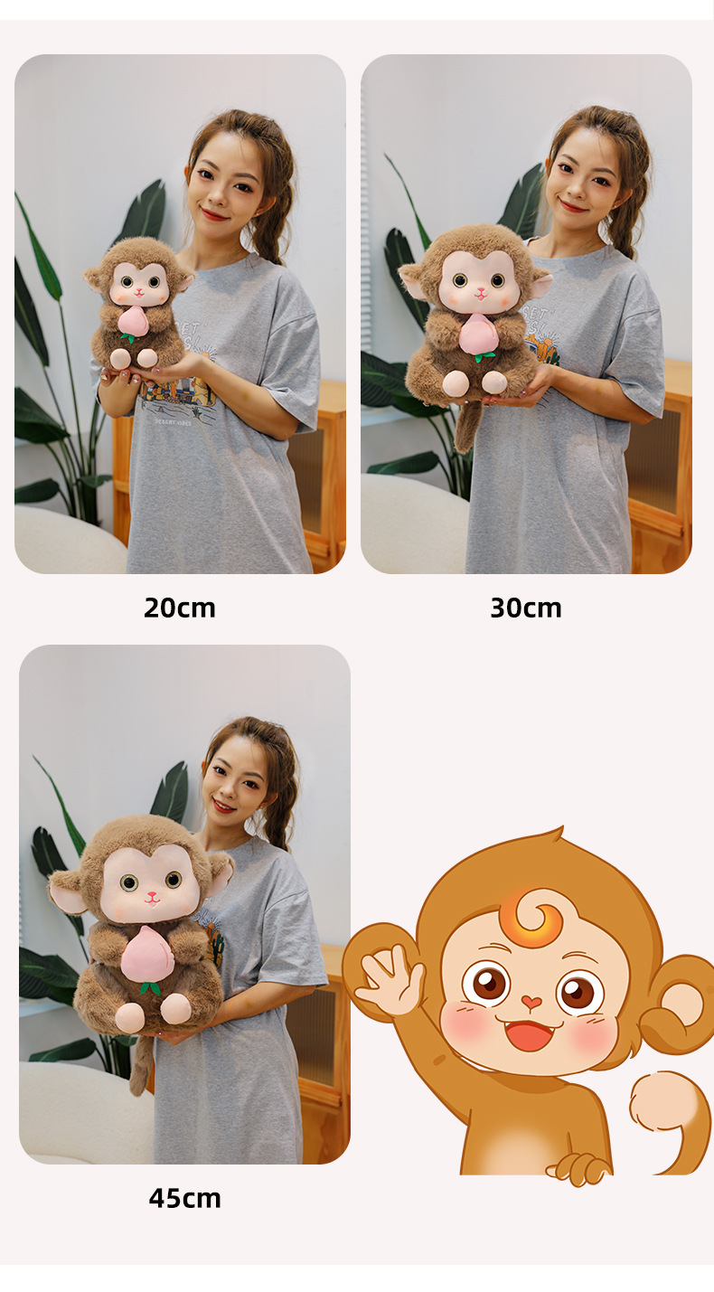 정품 복숭아 원숭이 봉제 장난감 베개 커플 원숭이 인형 인형 장식품 어린이 휴일 선물 인형스토어 가기