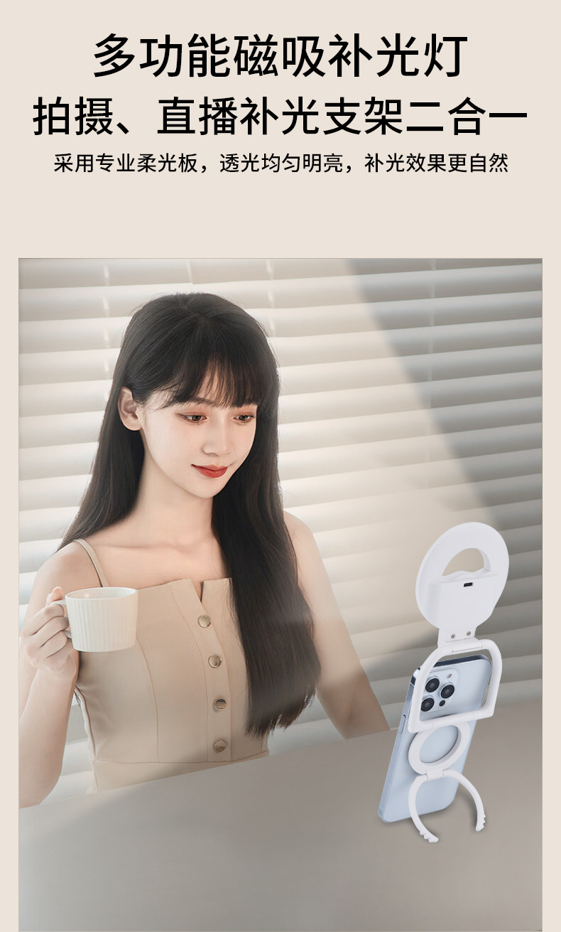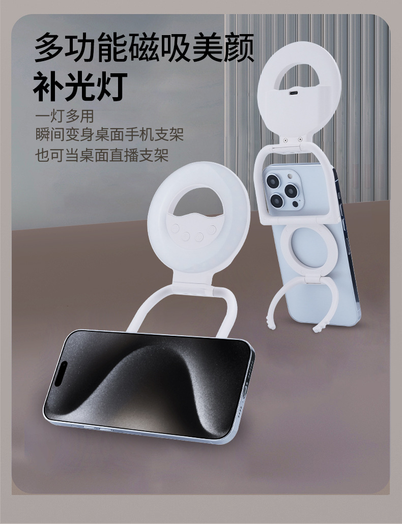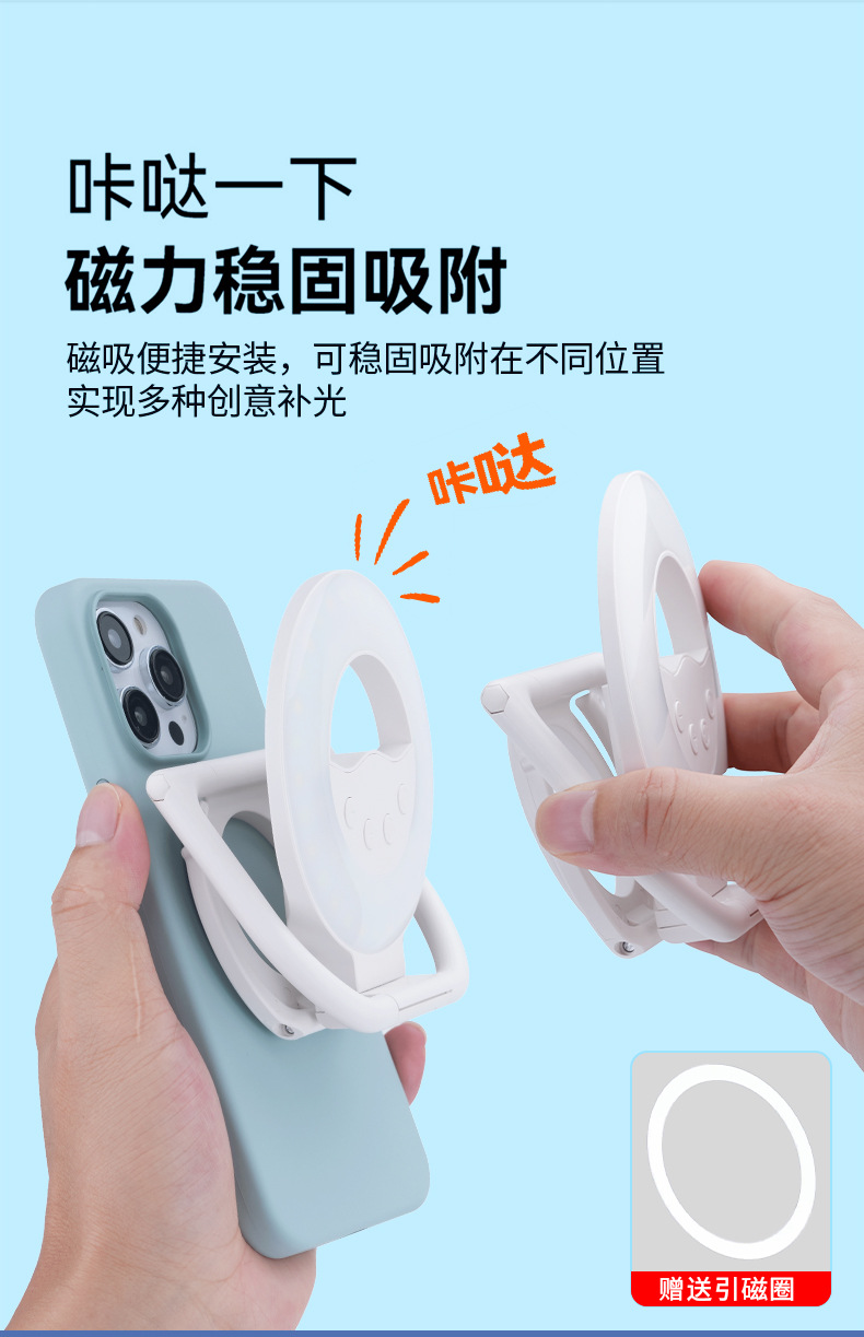 다기능 휴대용 접이식 자기 휴대 전화 케이스 채우기 빛 아름다움 휴대용 사진 라이브 방송 여성을위한 야외 데스크탑 스탠드스토어 가기