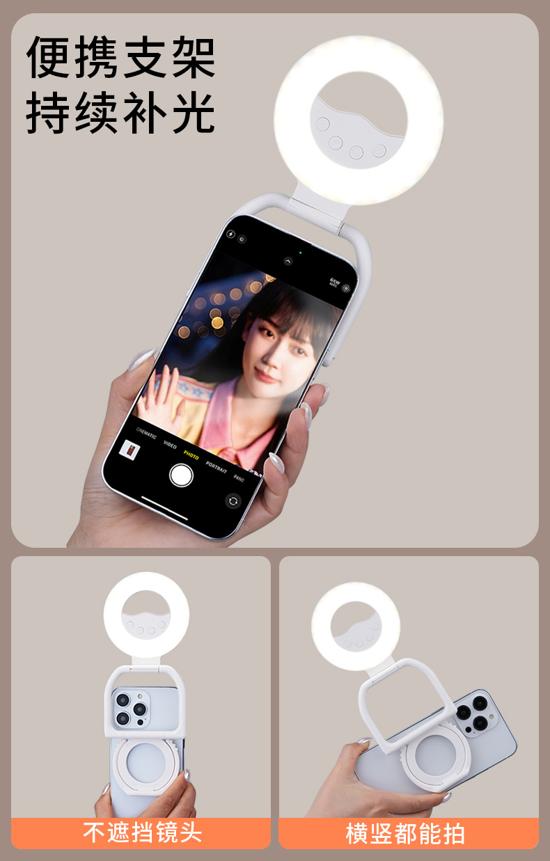 다기능 휴대용 접이식 자기 휴대 전화 케이스 채우기 빛 아름다움 휴대용 사진 라이브 방송 여성을위한 야외 데스크탑 스탠드