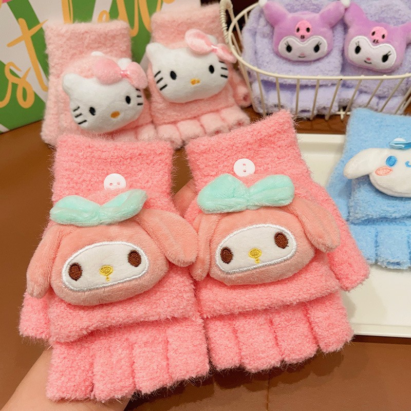 소년 소녀를위한 Yugui 개 kulomi 중간 반 손가락 장갑 가을과 겨울 어린이 장갑 따뜻한 다섯 손가락 뒤집기 장갑스토어 가기
