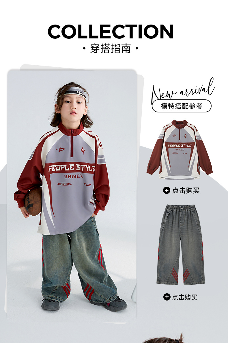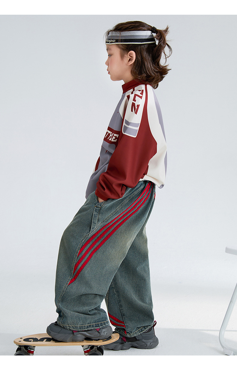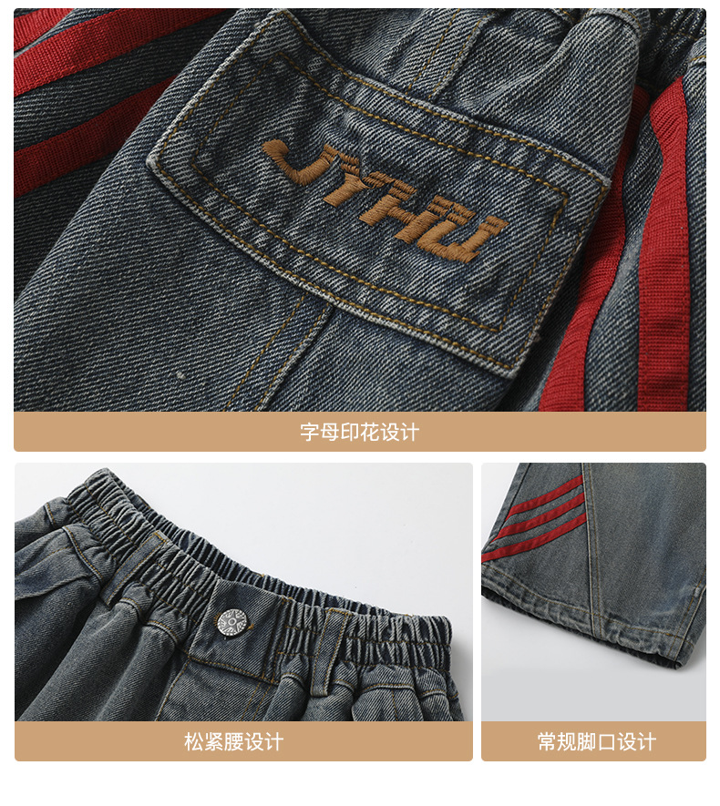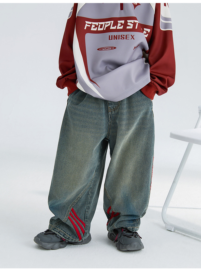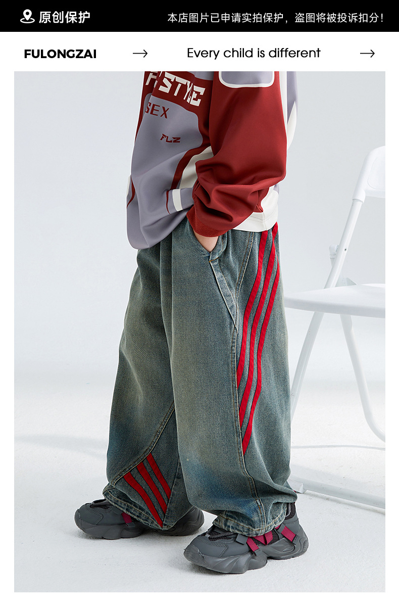 FULONGZAI 부모-어린이 아동복 2024 가을 새로운 스타일 중대형 어린이 느슨한 아동용 트렌디 브랜드 청바지스토어 가기