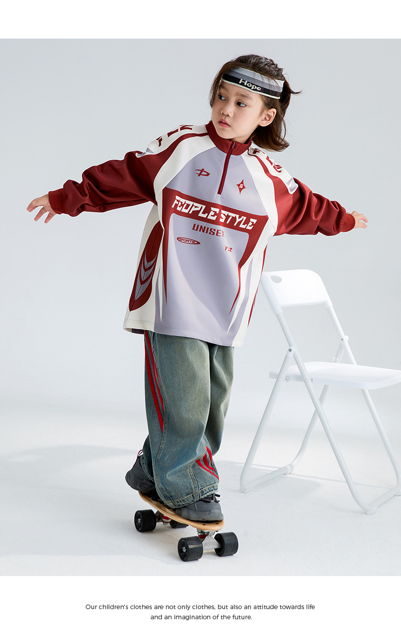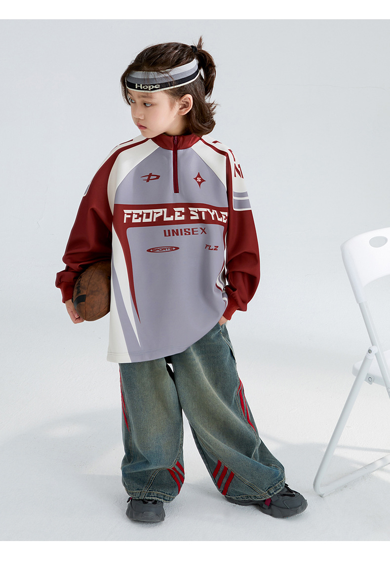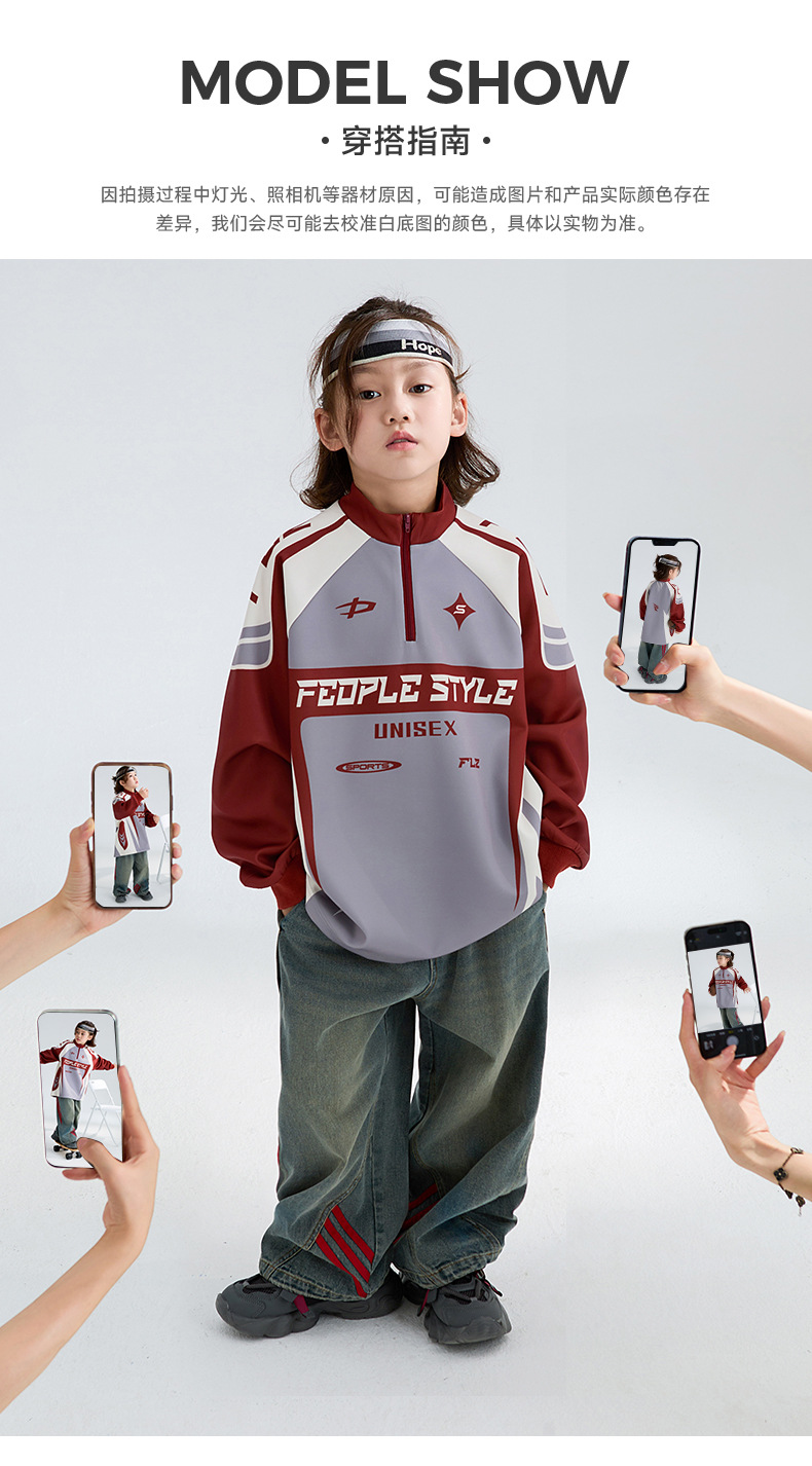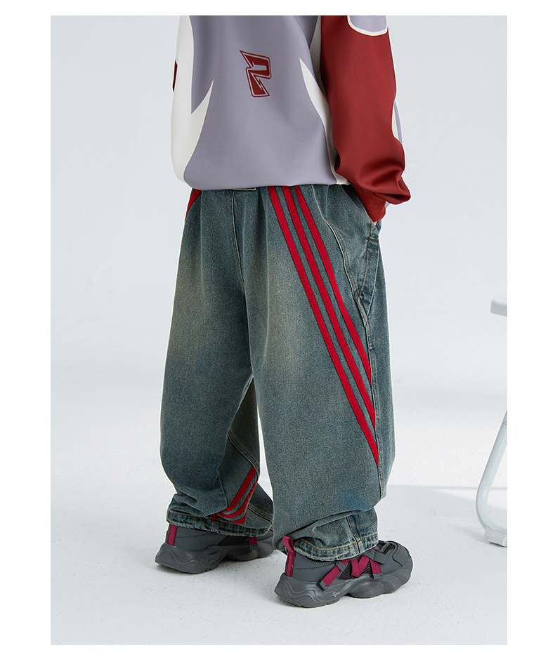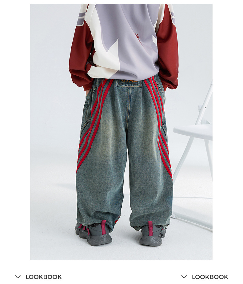 FULONGZAI 부모-어린이 아동복 2024 가을 새로운 스타일 중대형 어린이 느슨한 아동용 트렌디 브랜드 청바지스토어 가기