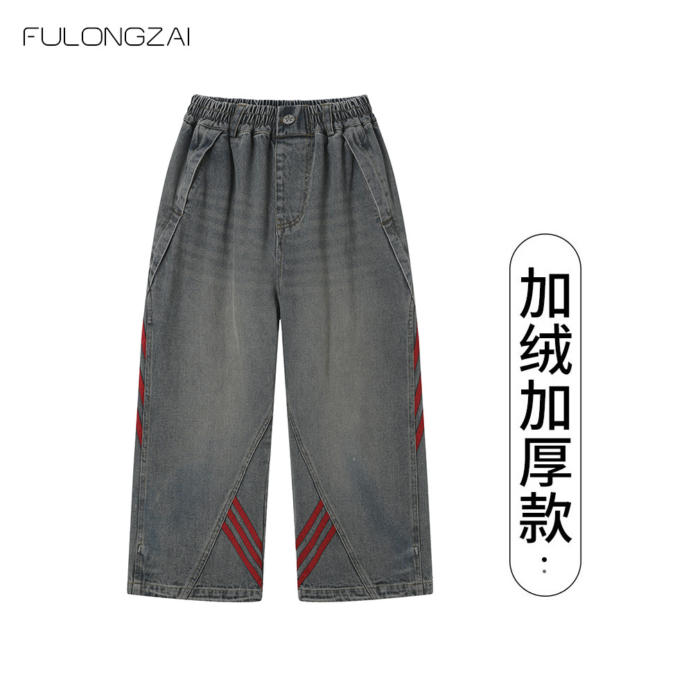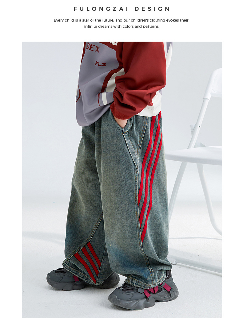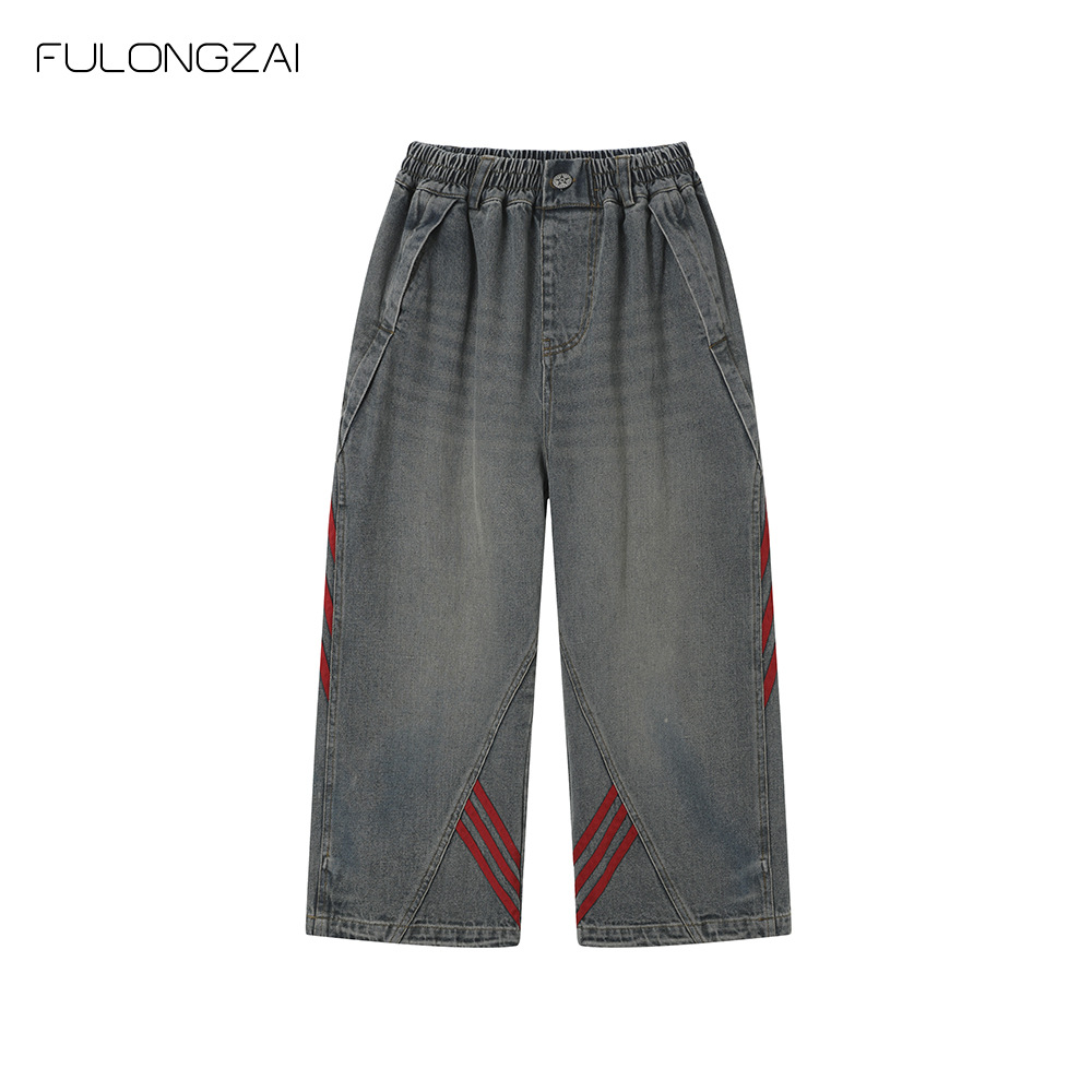FULONGZAI 부모-어린이 아동복 2024 가을 새로운 스타일 중대형 어린이 느슨한 아동용 트렌디 브랜드 청바지