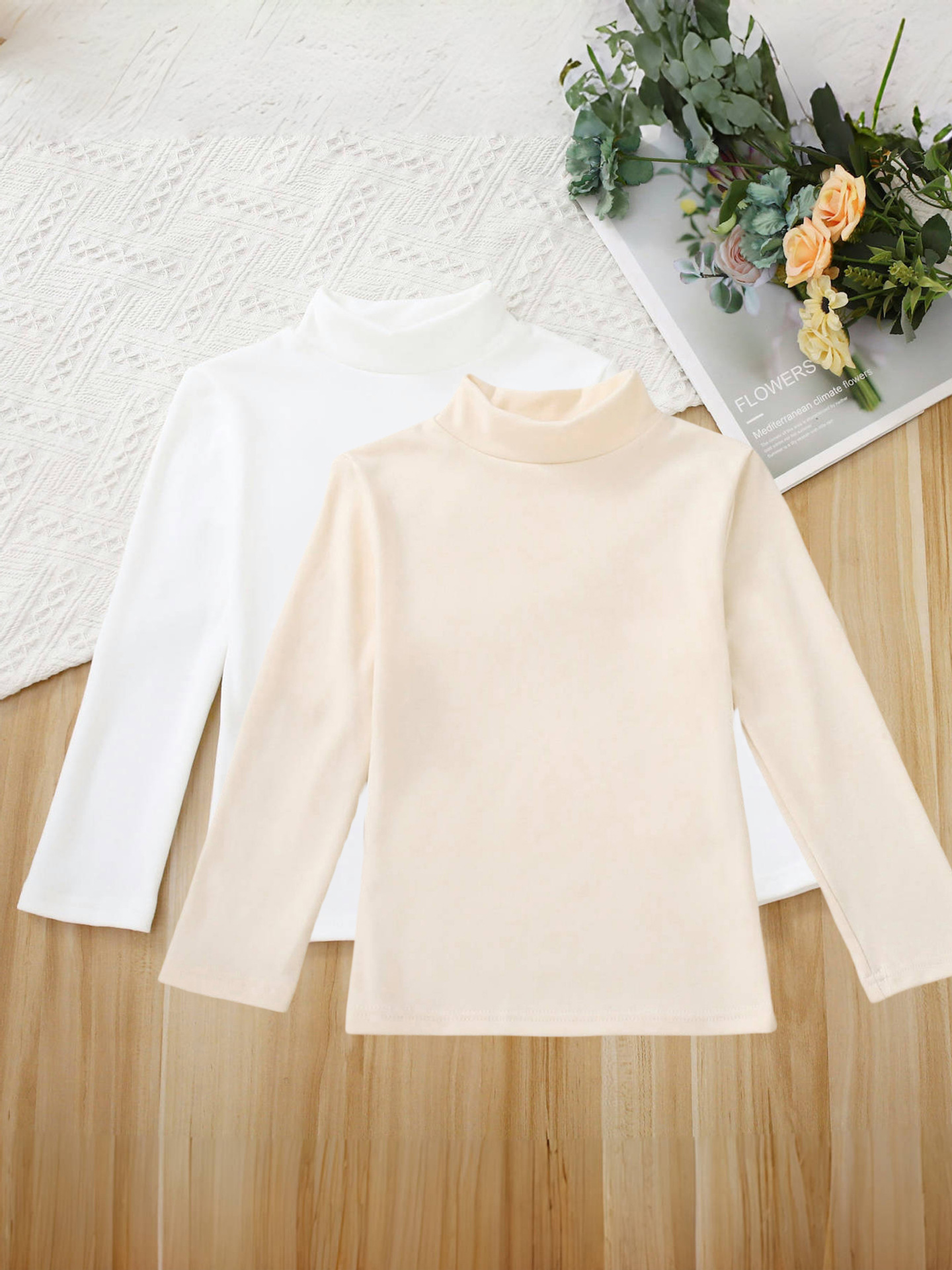 하프 하이 칼라 어린이 흰색 바닥 셔츠 소년 소녀 독일 벨벳 이너 아기의 긴팔 티셔츠 봄과 가을 겨울 코트