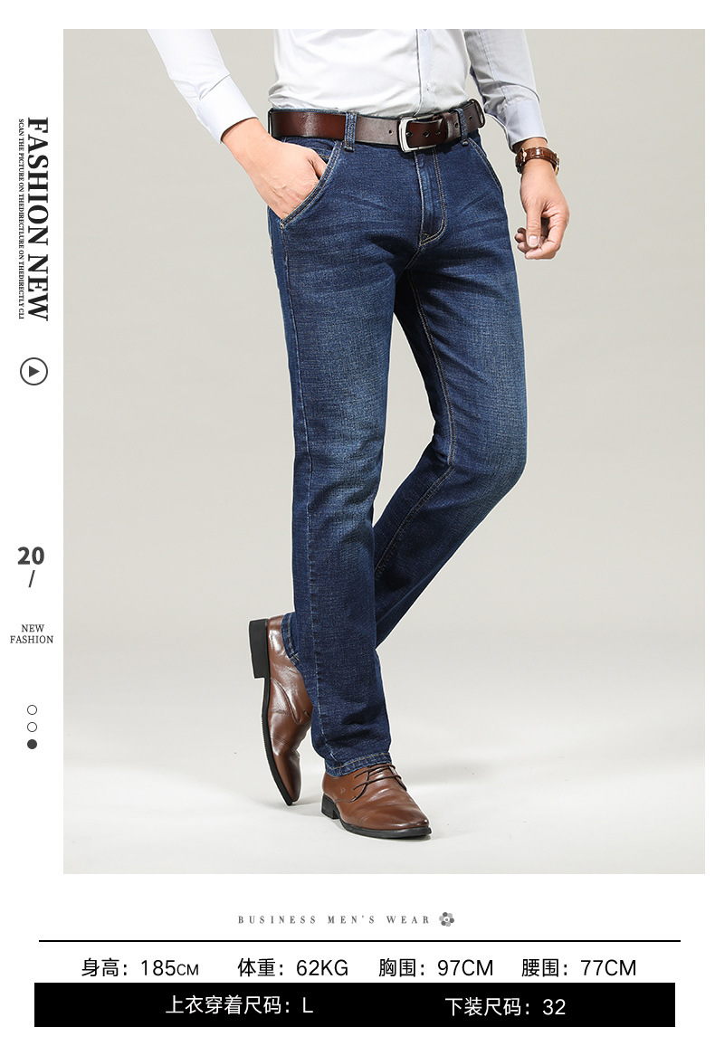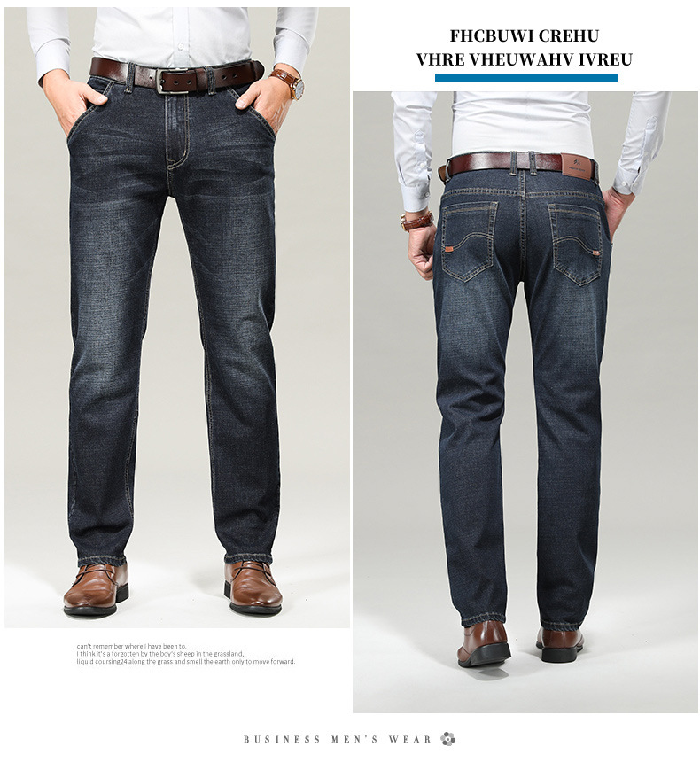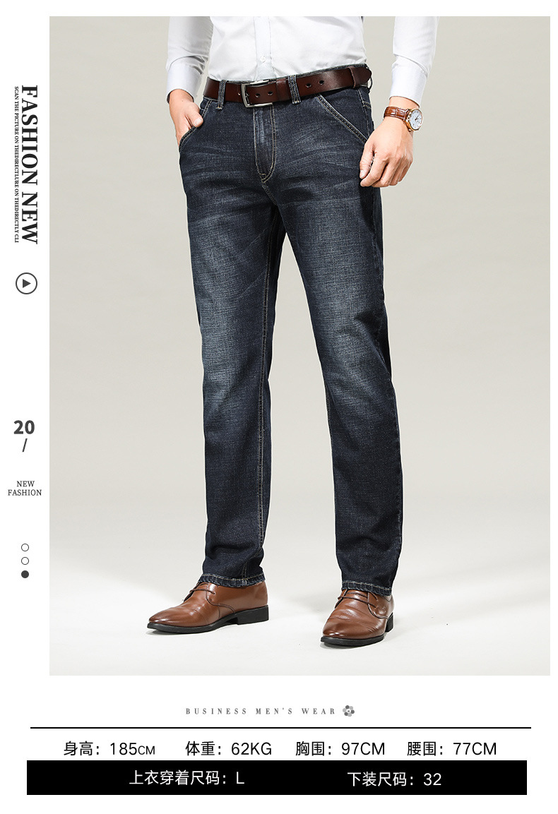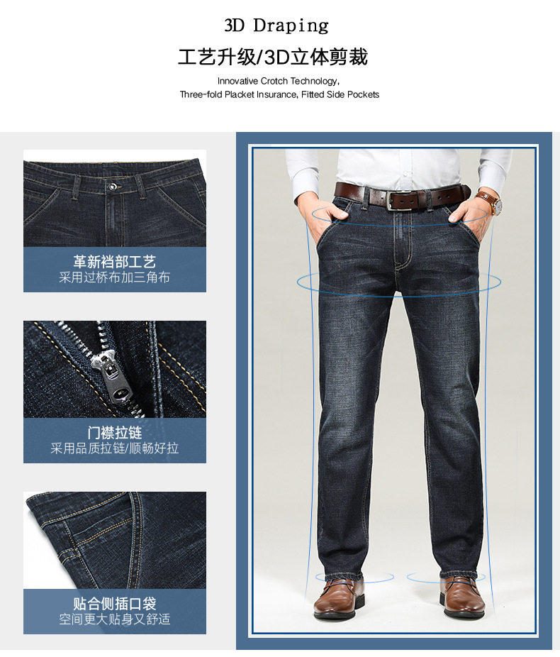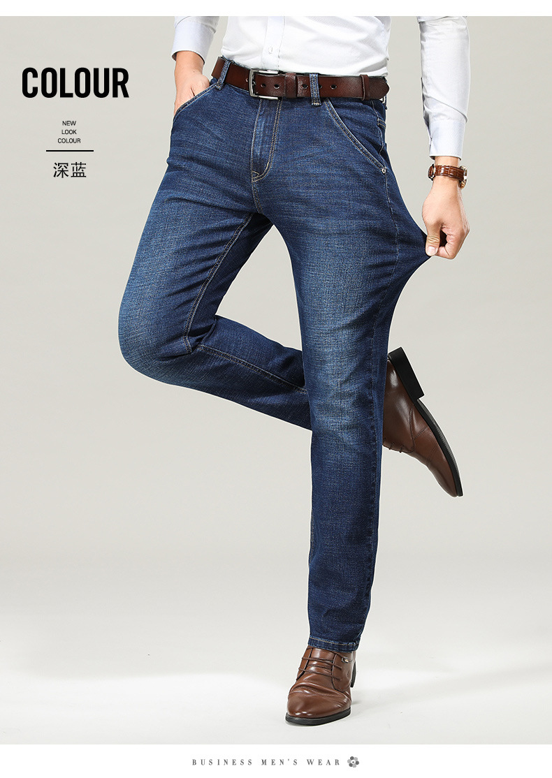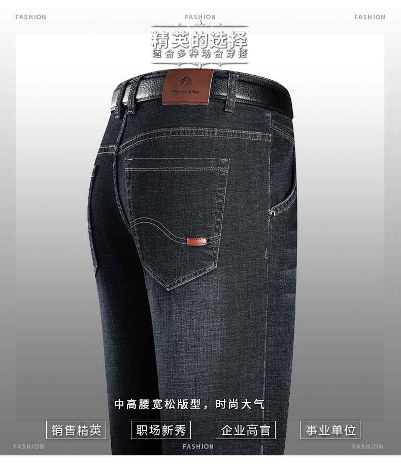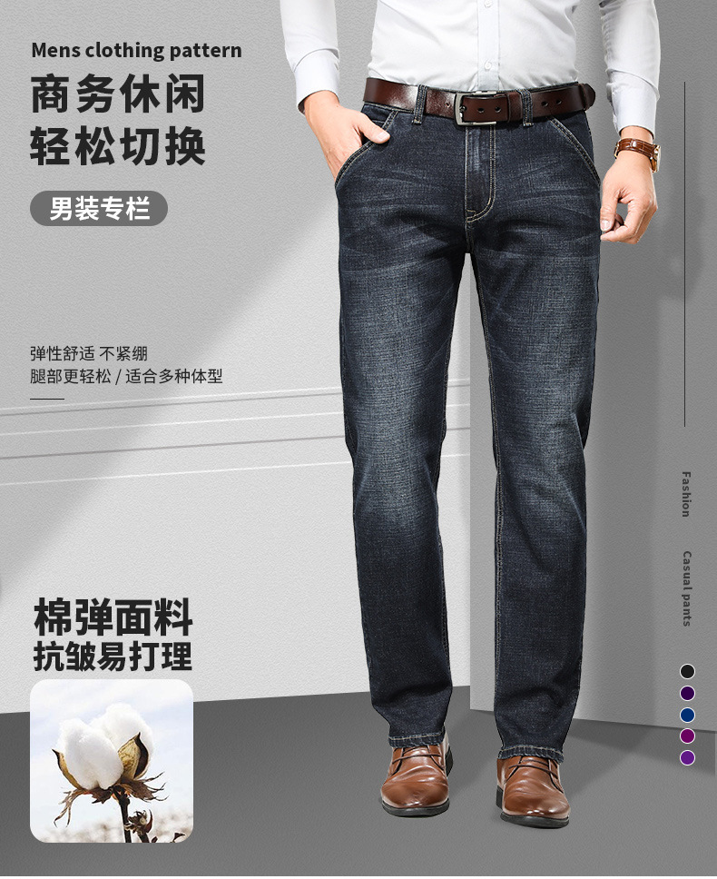 가을과 겨울 청바지 남성용 스트레이트 느슨한 탄성 남성용 바지 중년 플러스 사이즈 비즈니스 캐주얼 남성용 두꺼운 바지스토어 가기