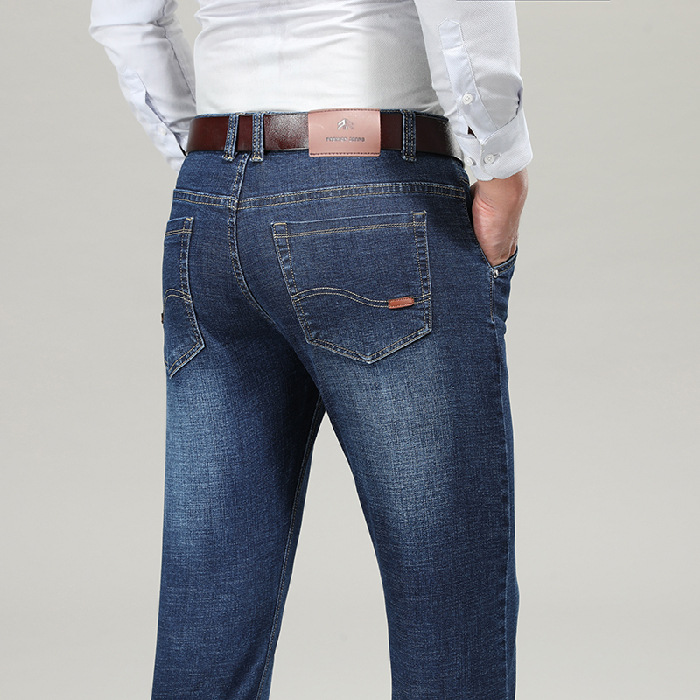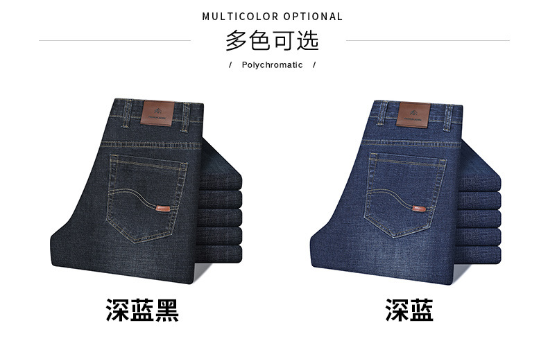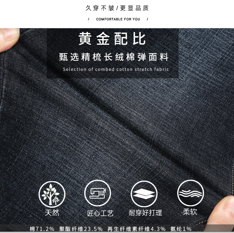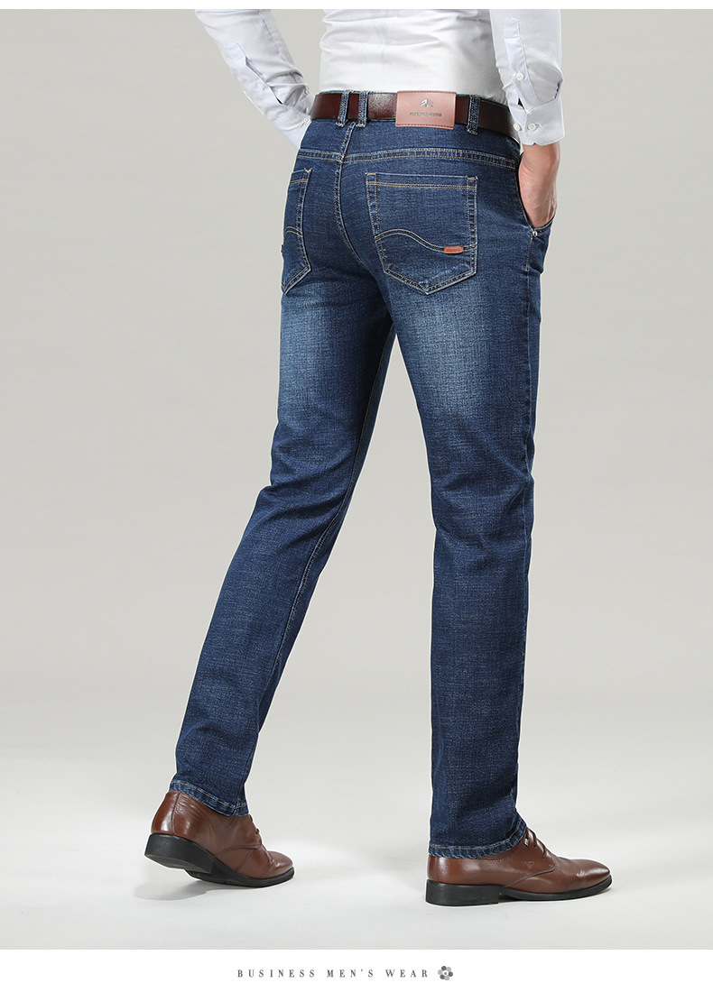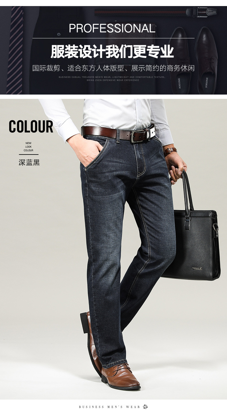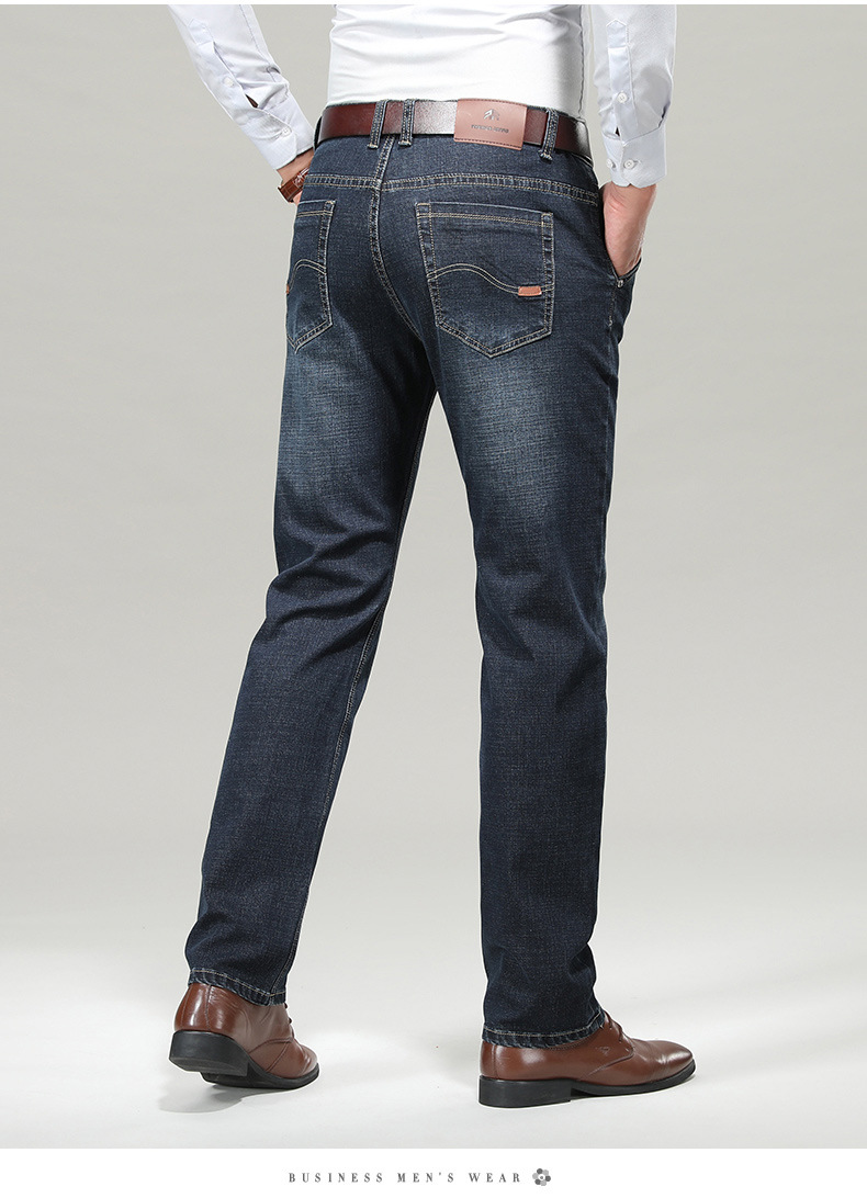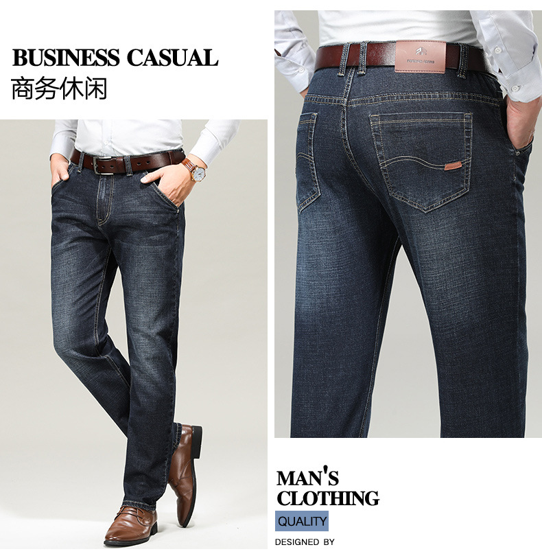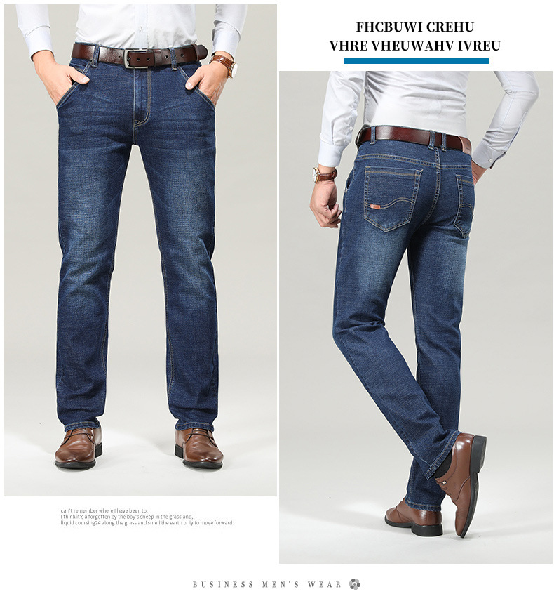 가을과 겨울 청바지 남성용 스트레이트 느슨한 탄성 남성용 바지 중년 플러스 사이즈 비즈니스 캐주얼 남성용 두꺼운 바지스토어 가기