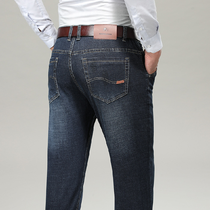 가을과 겨울 청바지 남성용 스트레이트 느슨한 탄성 남성용 바지 중년 플러스 사이즈 비즈니스 캐주얼 남성용 두꺼운 바지