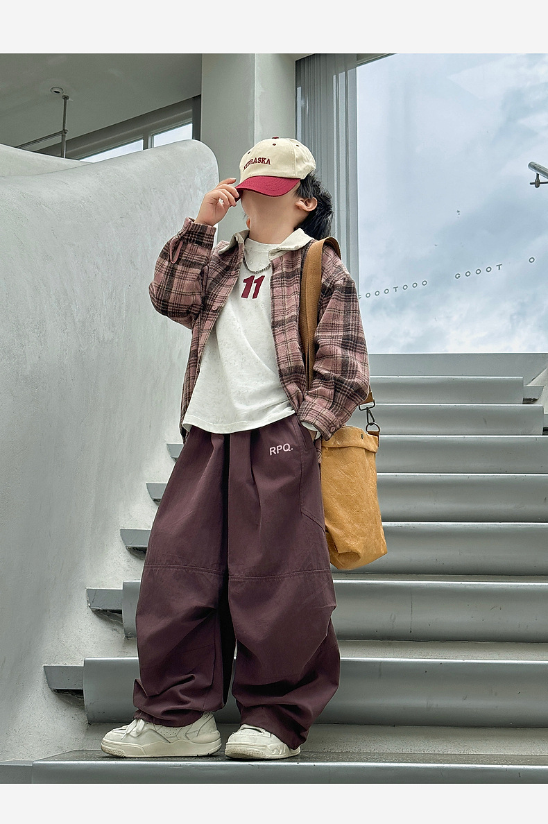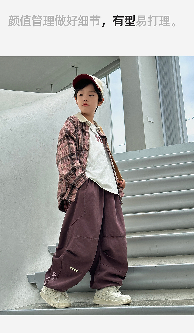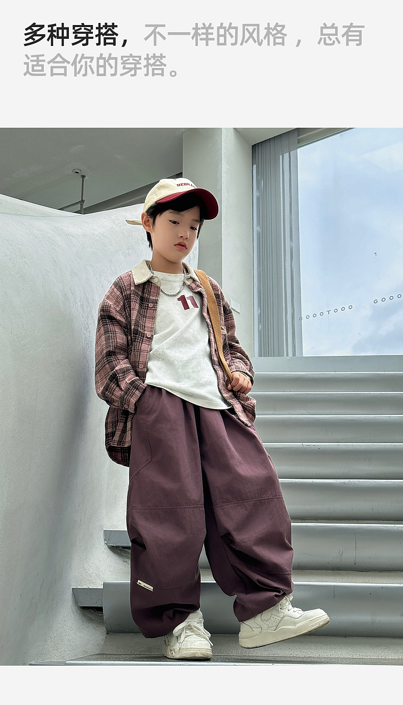 팬더 원원 2025 가을 야외 방수 남아 작업복 바지 어린이 가을 바지 와이드 레그 낙하산 바지스토어 가기