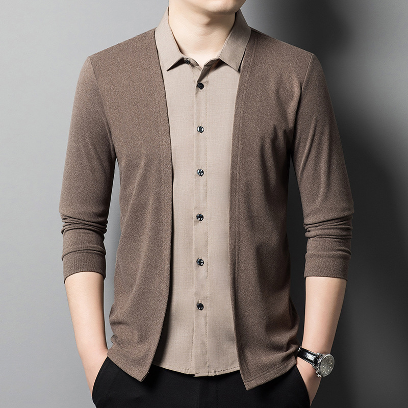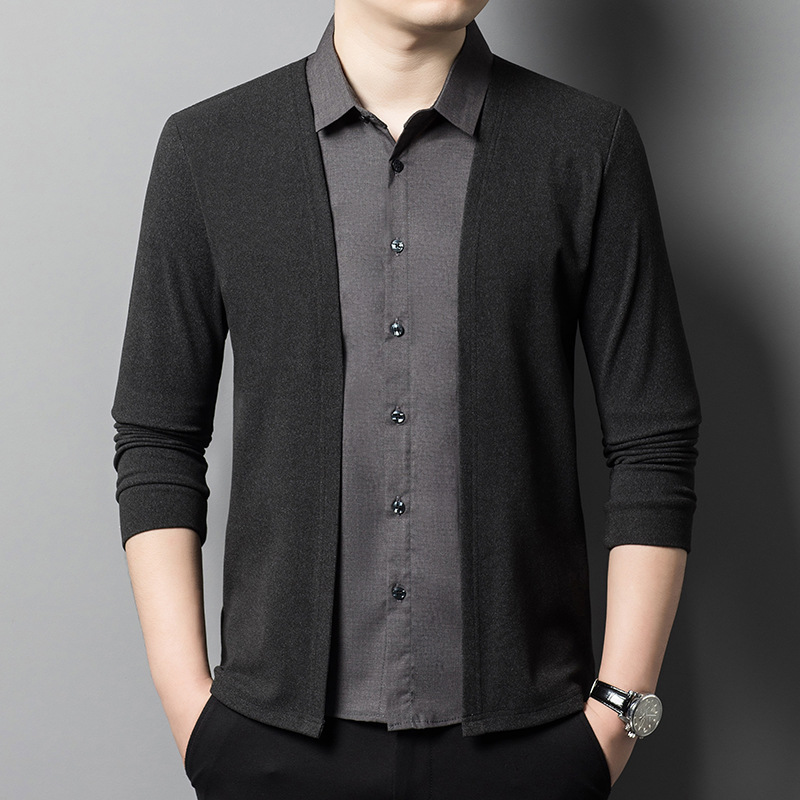 2024 가을 새 남성 가짜 투피스 셔츠 칼라 티셔츠 니트 카디건 캐주얼 비즈니스 스웨터 코트 남성복