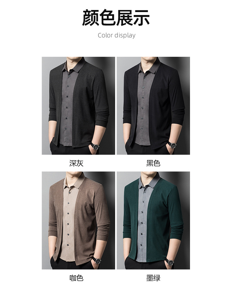 2024 가을 새 남성 가짜 투피스 셔츠 칼라 티셔츠 니트 카디건 캐주얼 비즈니스 스웨터 코트 남성복스토어 가기