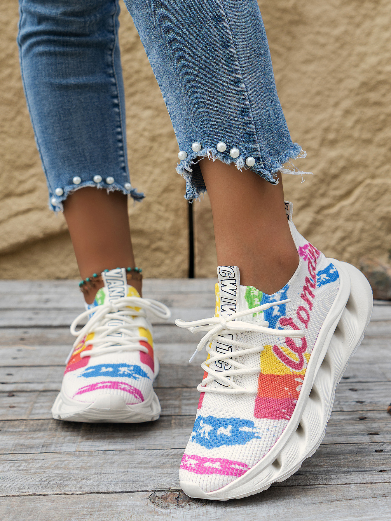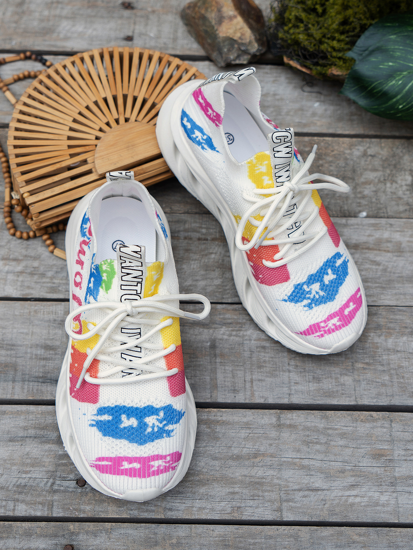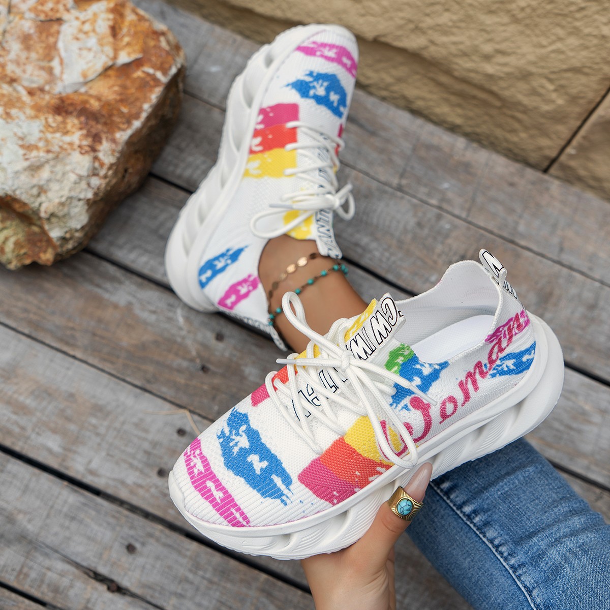 2024 가을과 겨울 새로운 대외 무역 플러스 사이즈 여성 캐주얼 신발 낙서 인쇄 꽃 패턴 쐐기 스포츠 여성 신발스토어 가기