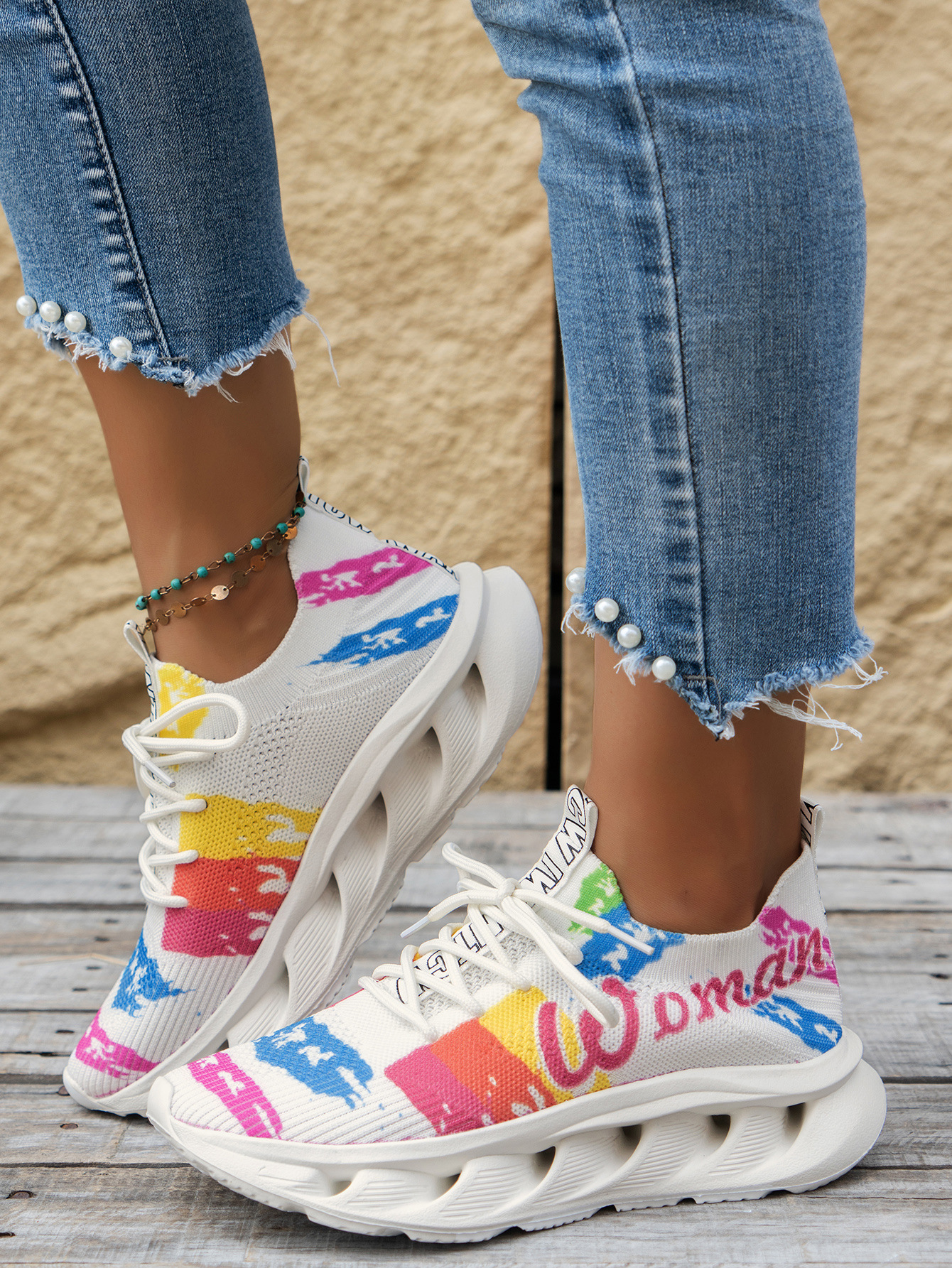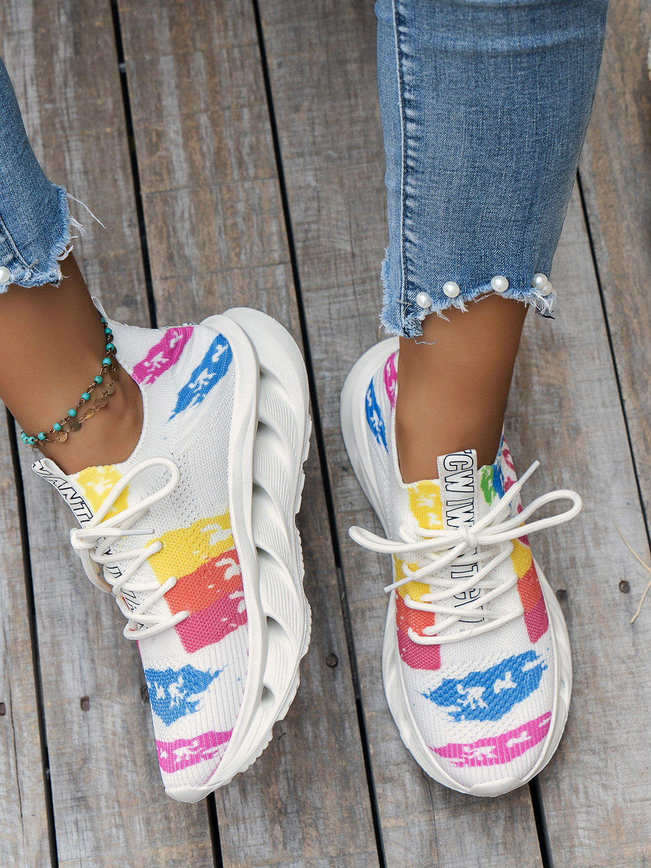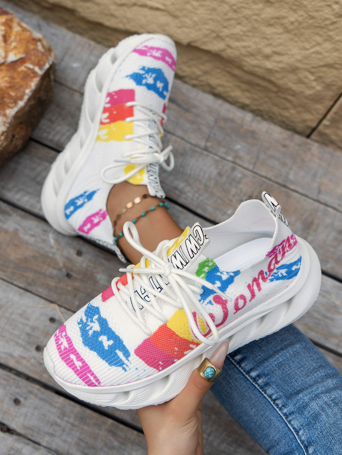 2024 가을과 겨울 새로운 대외 무역 플러스 사이즈 여성 캐주얼 신발 낙서 인쇄 꽃 패턴 쐐기 스포츠 여성 신발스토어 가기