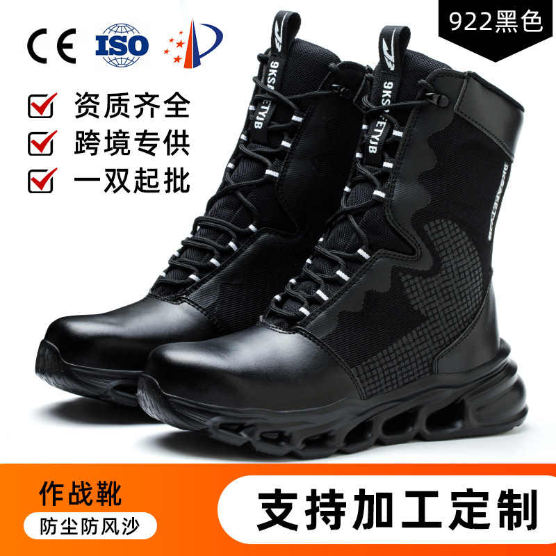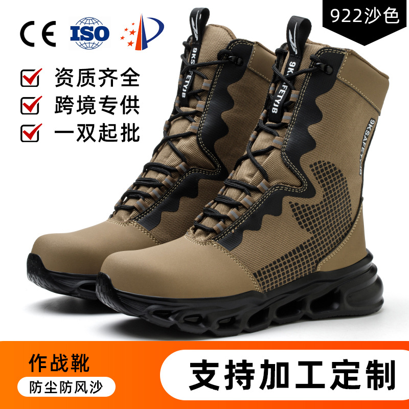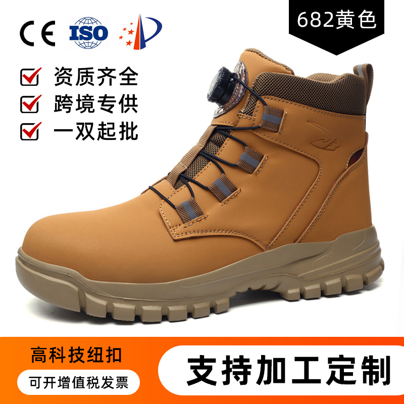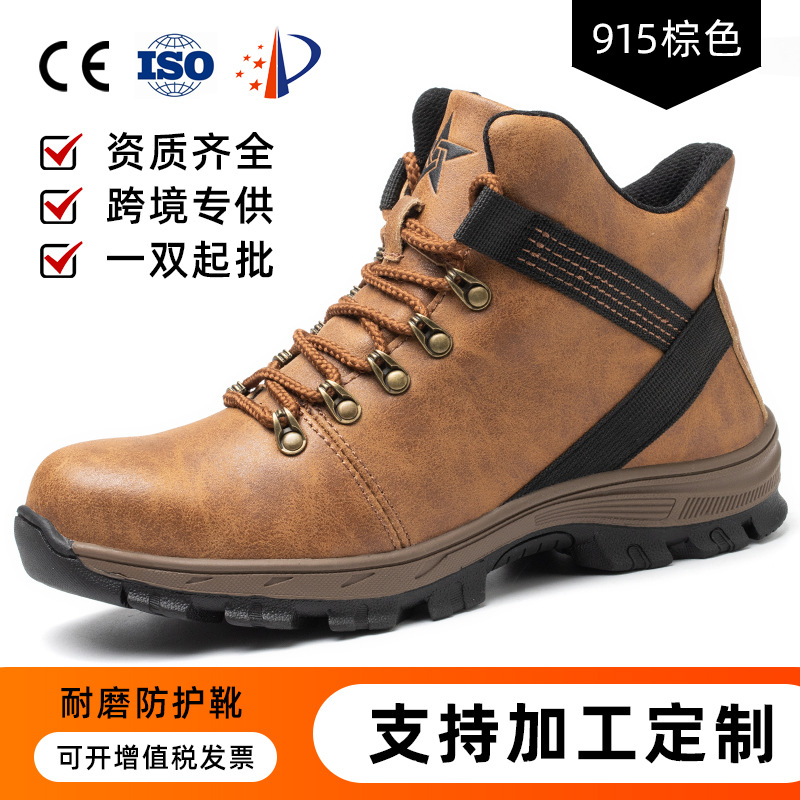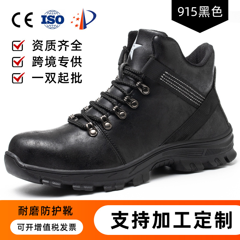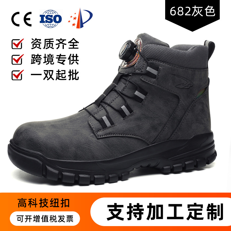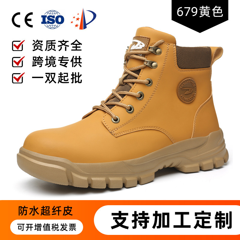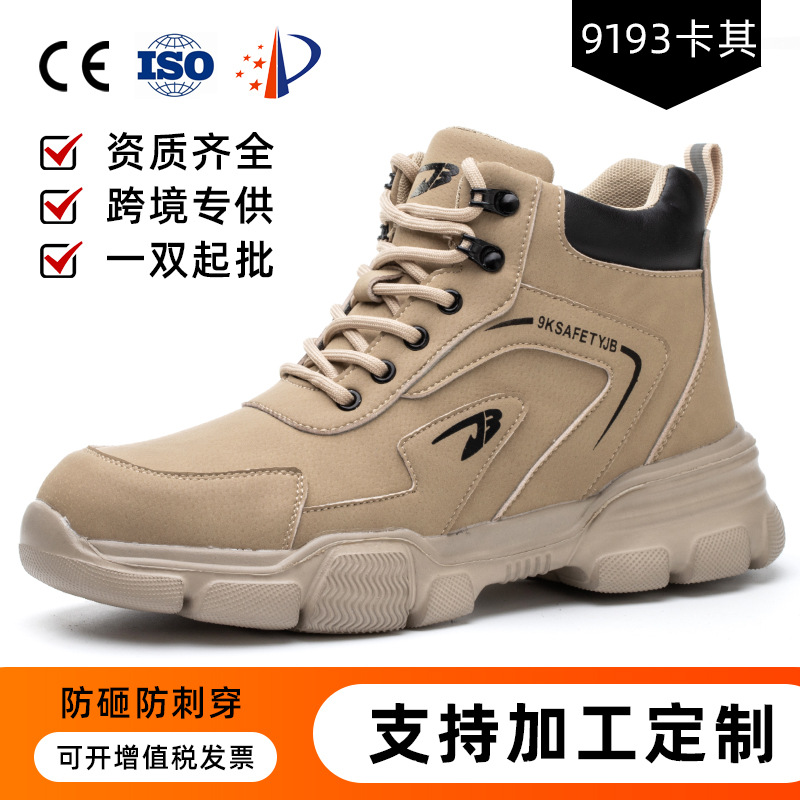 크로스보더 하이탑 안전화, 충격 방지 및 관통 방지, 사계절 사용 가능, 단면 면 안감 선택 가능, 내마모성 및 미끄럼 방지 작업화
