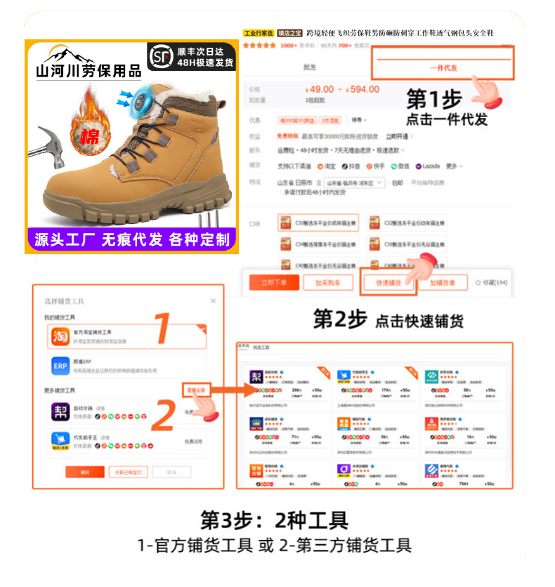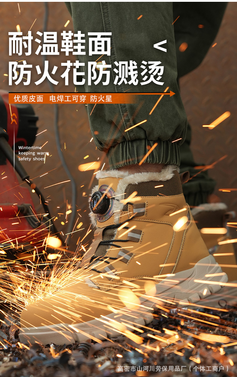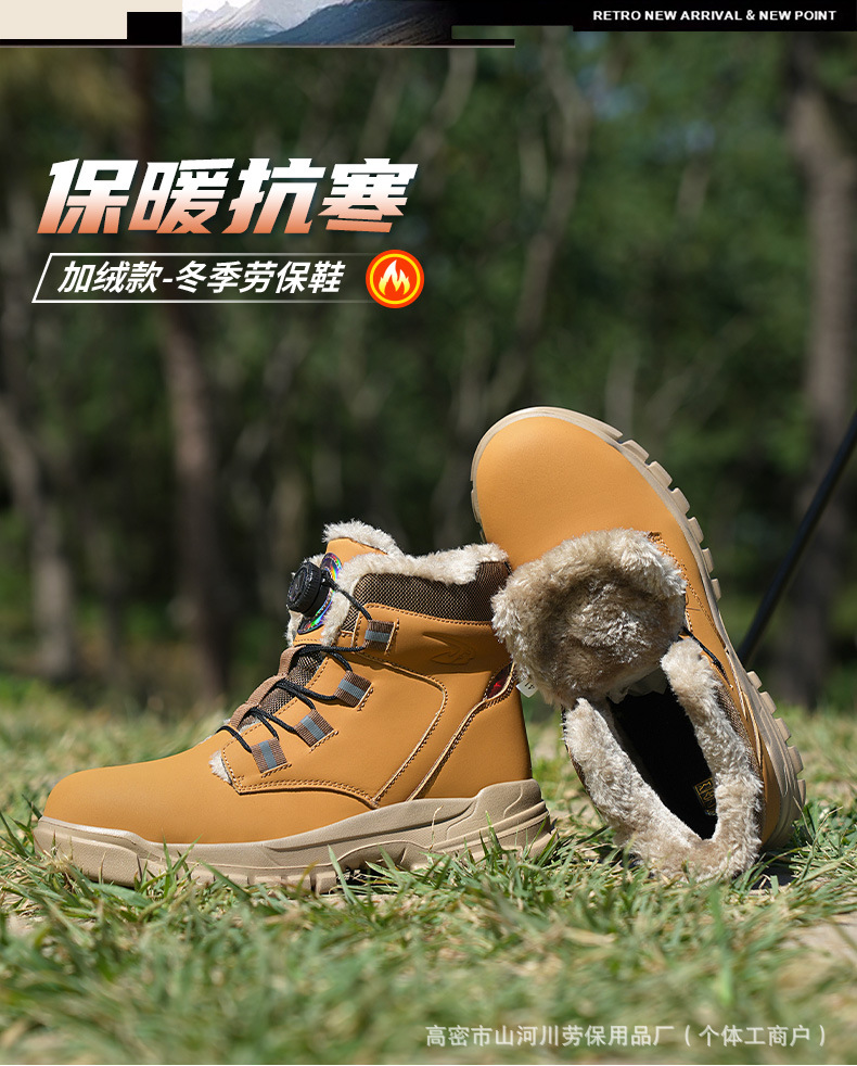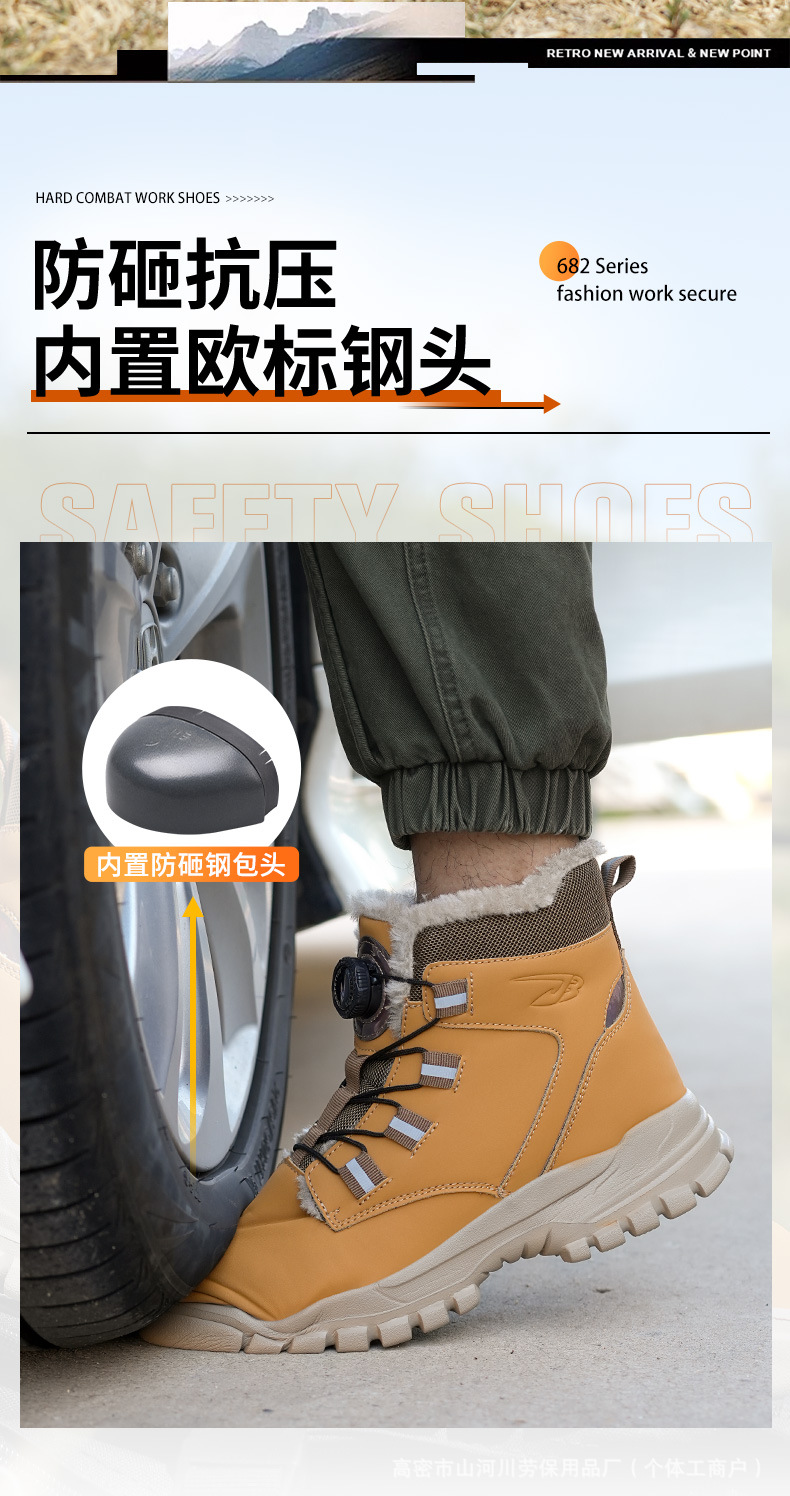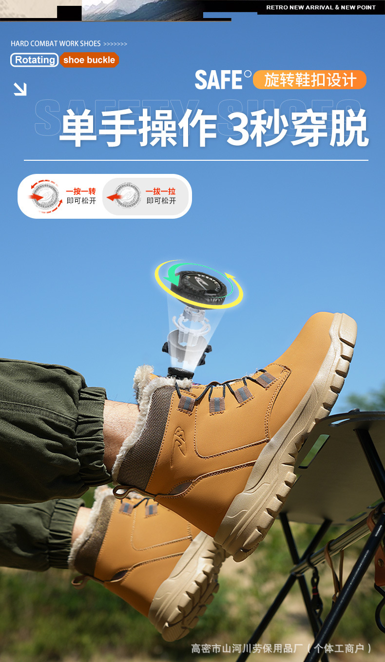 크로스보더 하이탑 안전화, 충격 방지 및 관통 방지, 사계절 사용 가능, 단면 면 안감 선택 가능, 내마모성 및 미끄럼 방지 작업화