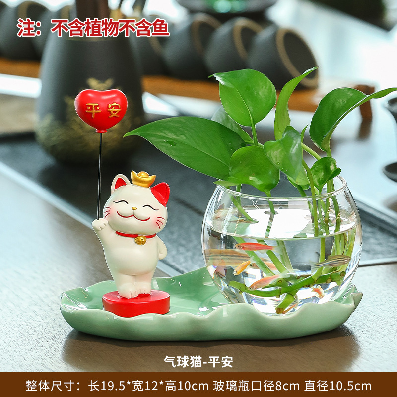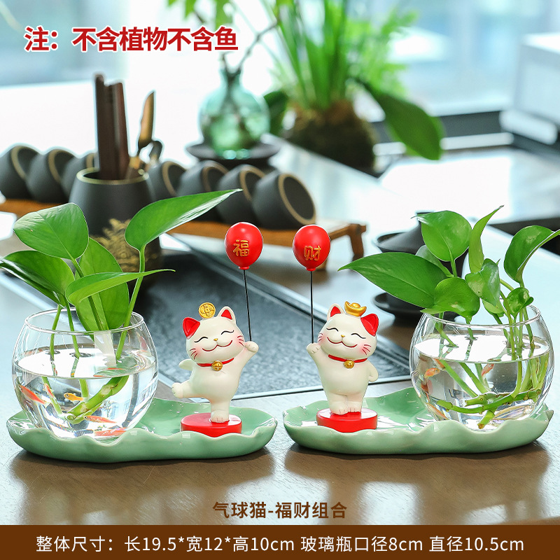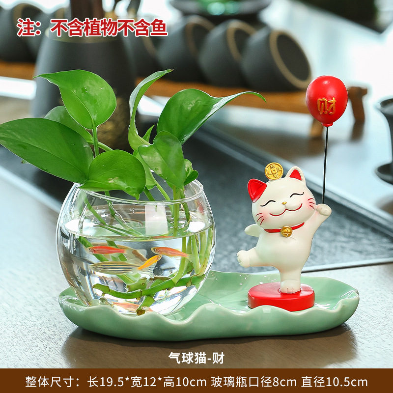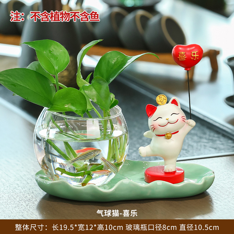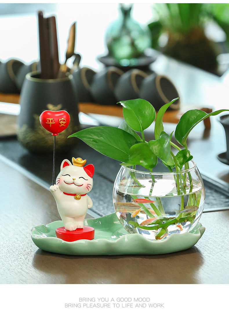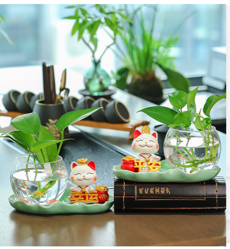 핑 해피 루시드 고양이 수경 꽃병 물 꽃 상승 유리 꽃병 사무실 데스크탑 장식 물고기 탱크 고양이