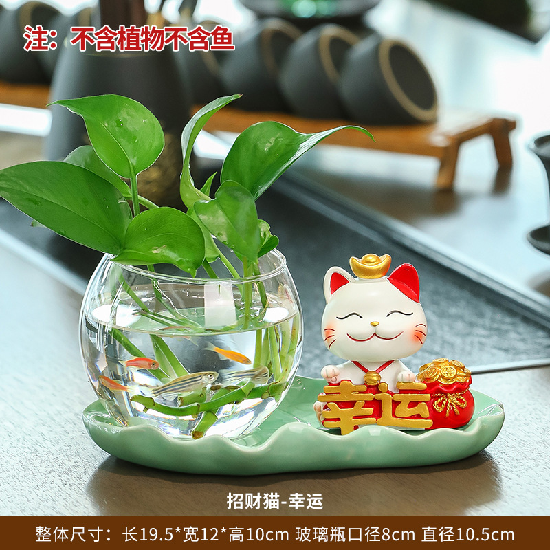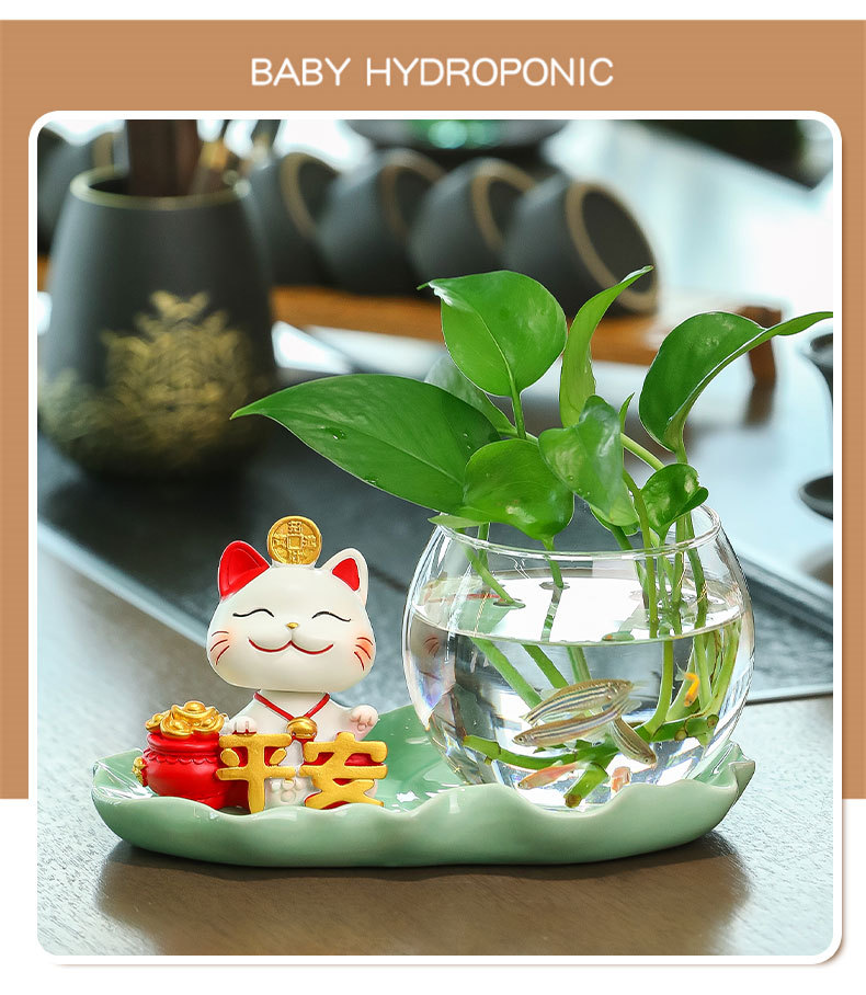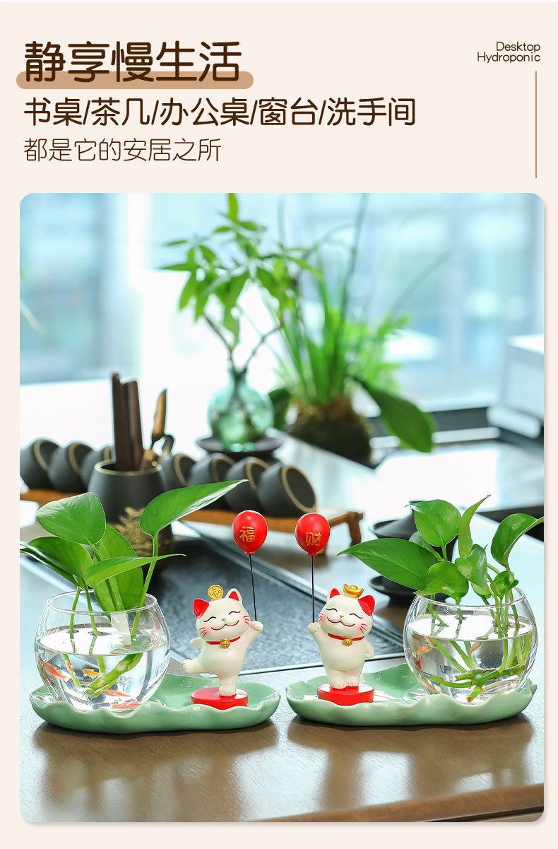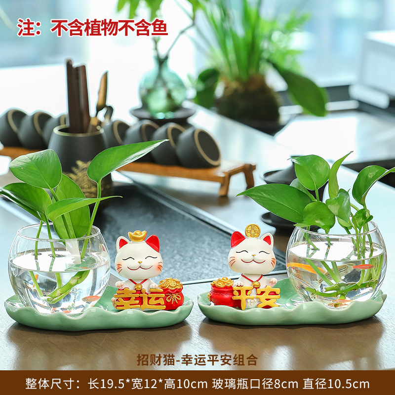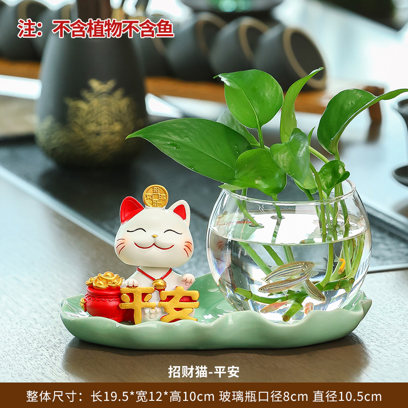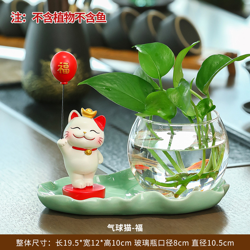 핑 해피 루시드 고양이 수경 꽃병 물 꽃 상승 유리 꽃병 사무실 데스크탑 장식 물고기 탱크 고양이