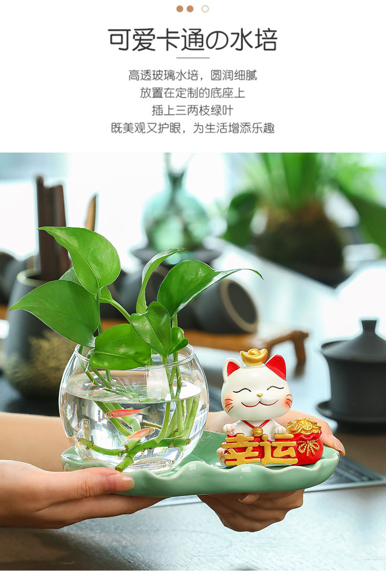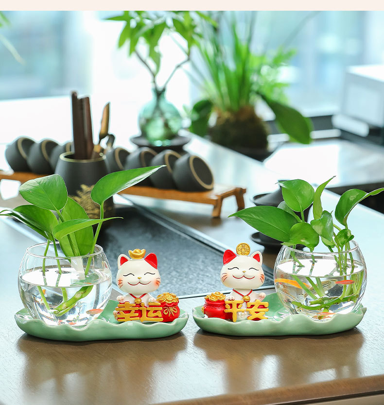 핑 해피 루시드 고양이 수경 꽃병 물 꽃 상승 유리 꽃병 사무실 데스크탑 장식 물고기 탱크 고양이스토어 가기
