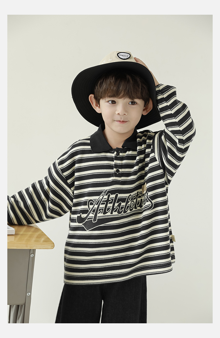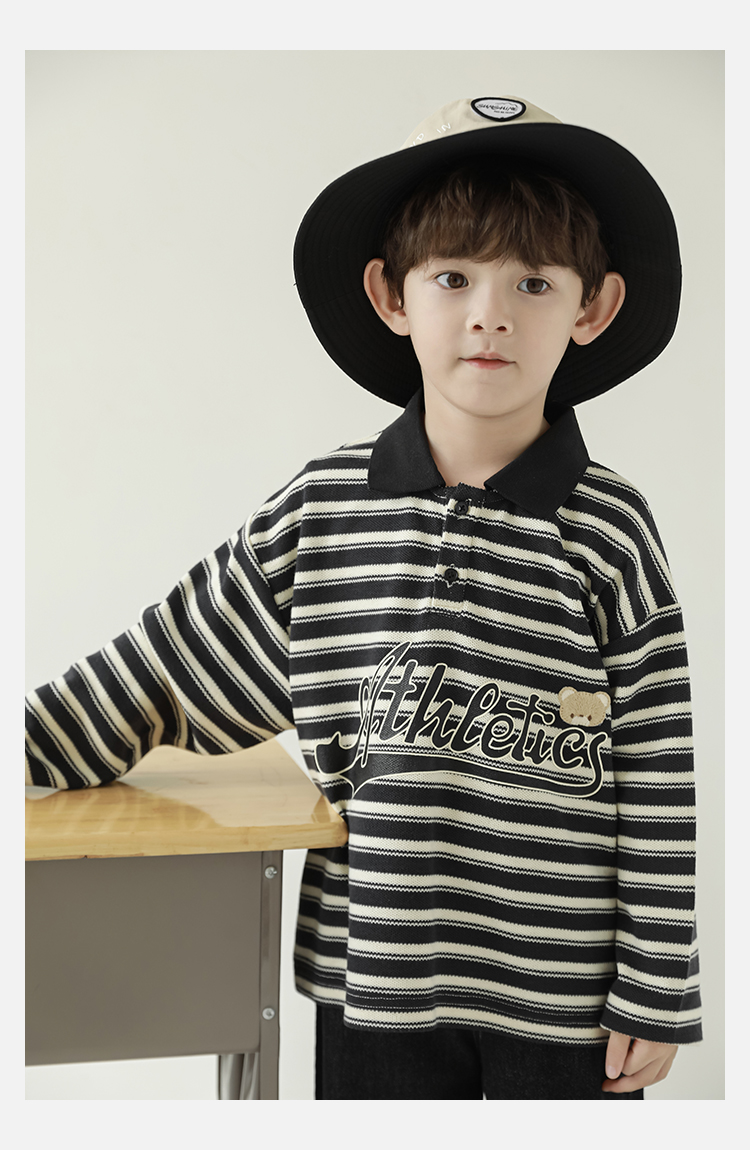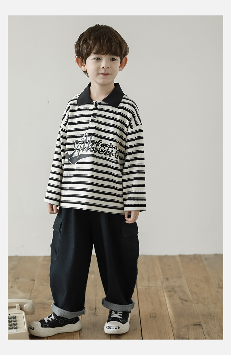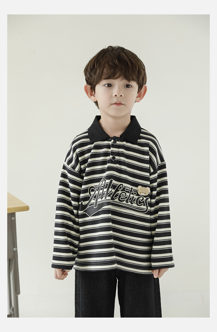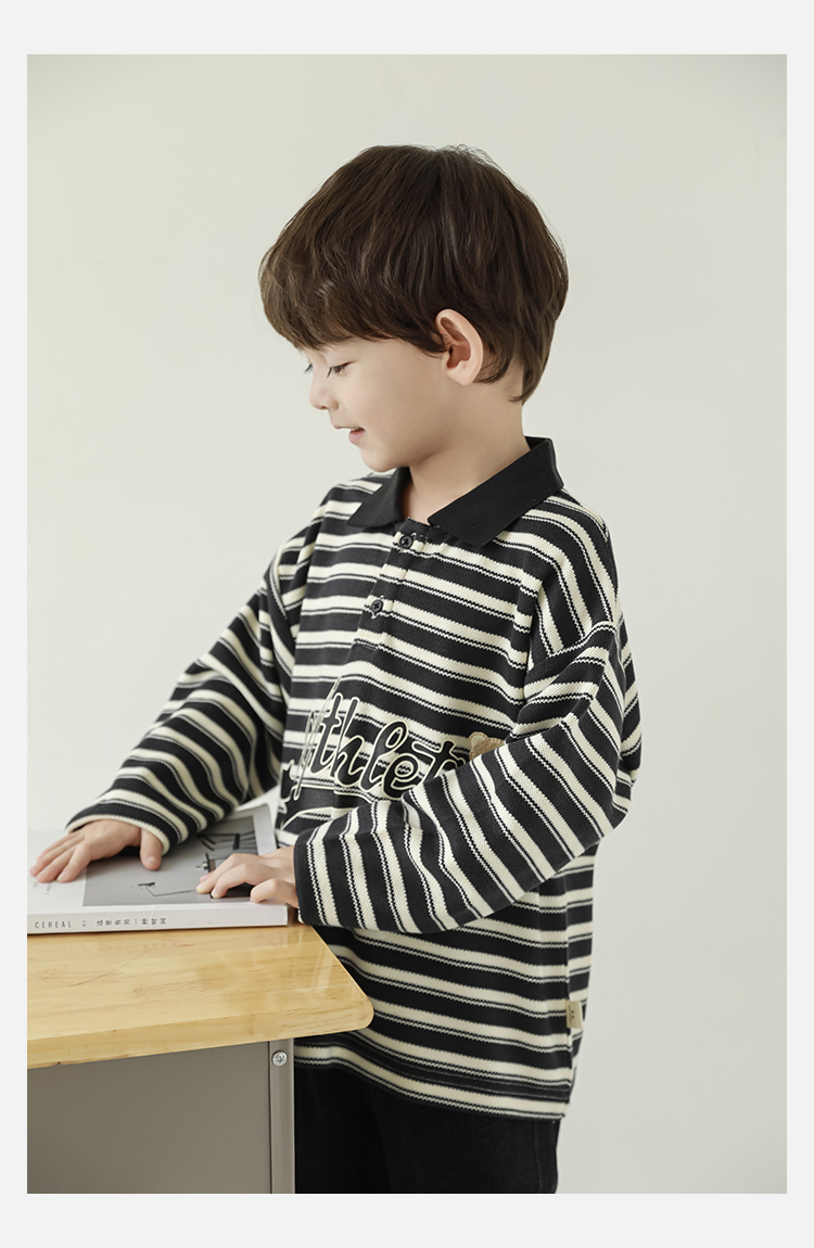 Wuri Boys 'T 셔츠 봄과 가을 2024 새로운 긴 소매 격자 옷깃베이스 셔츠 올 매치 어린이 탑스토어 가기