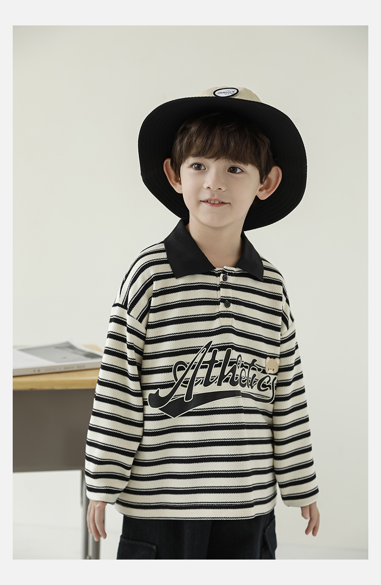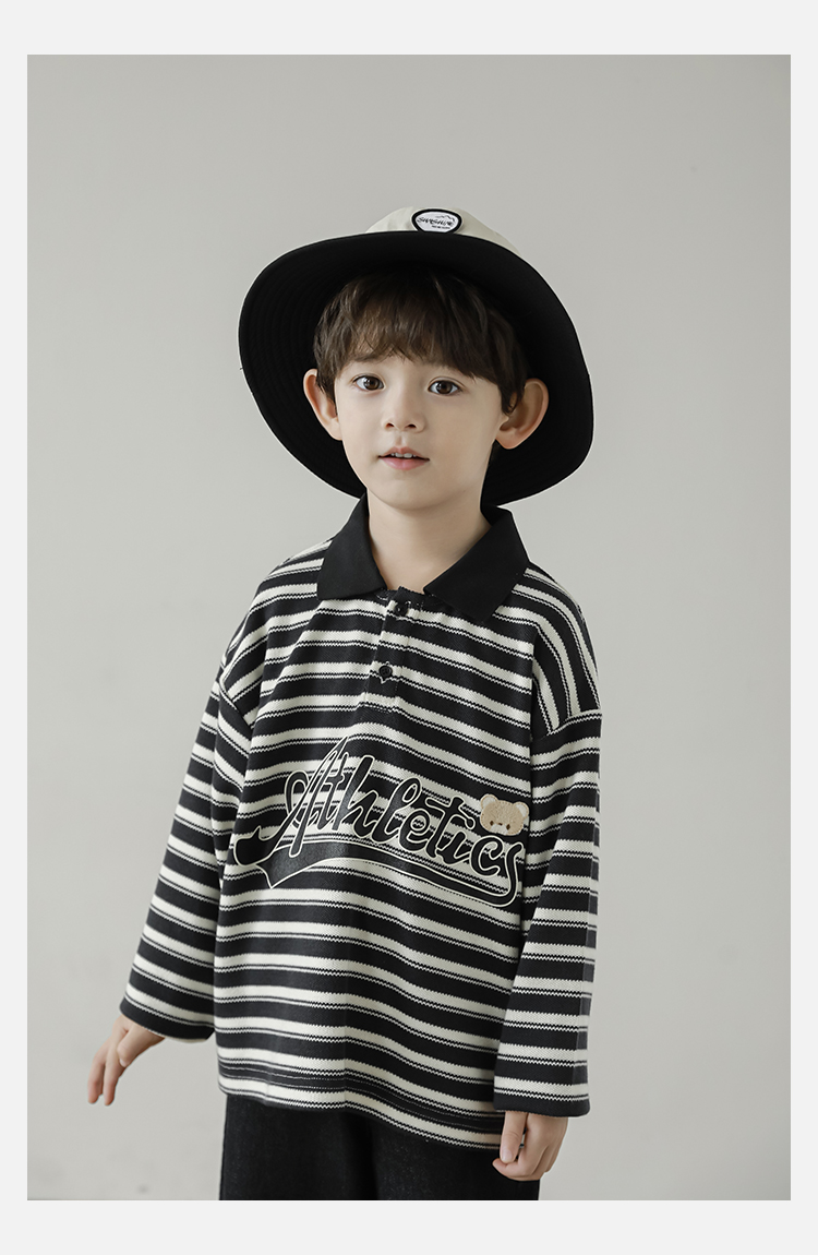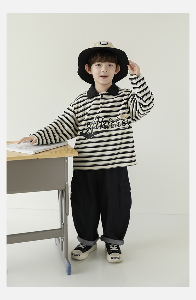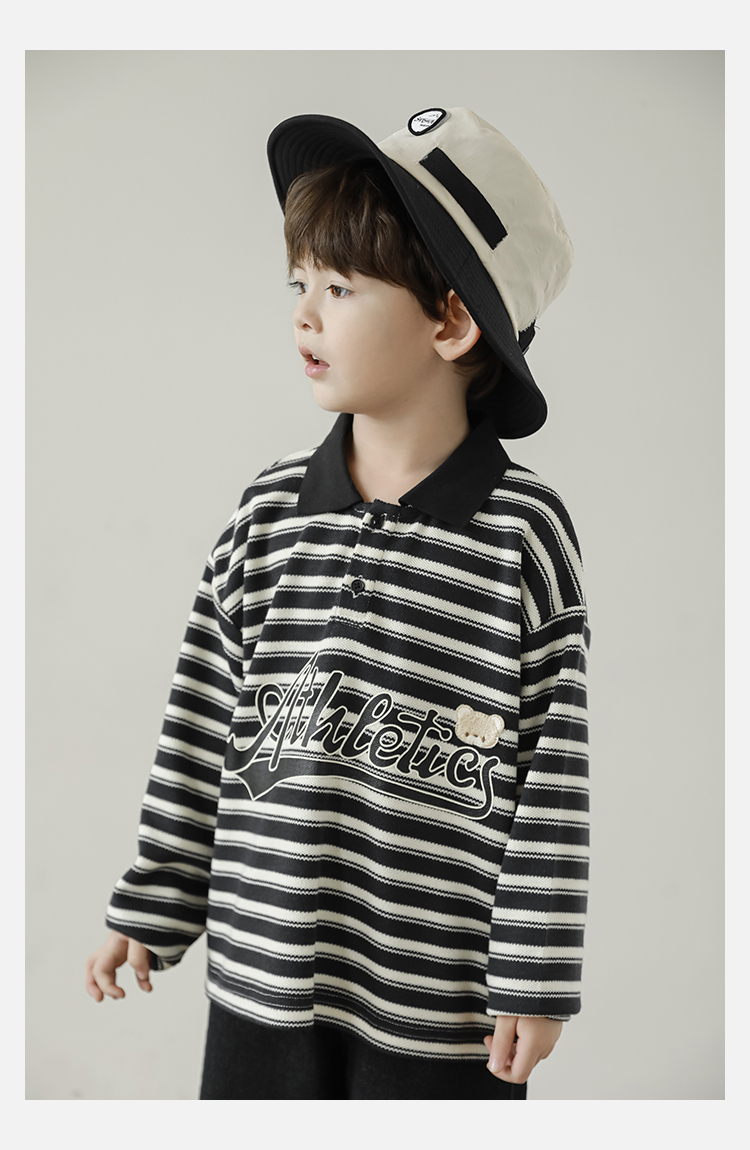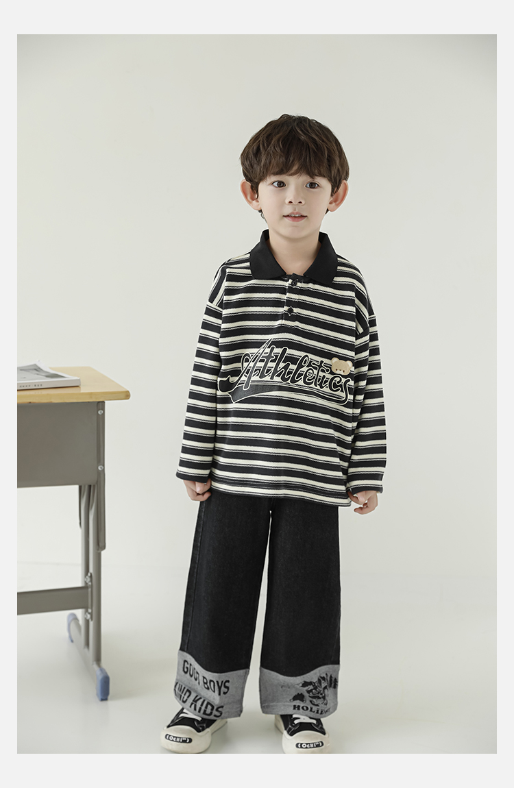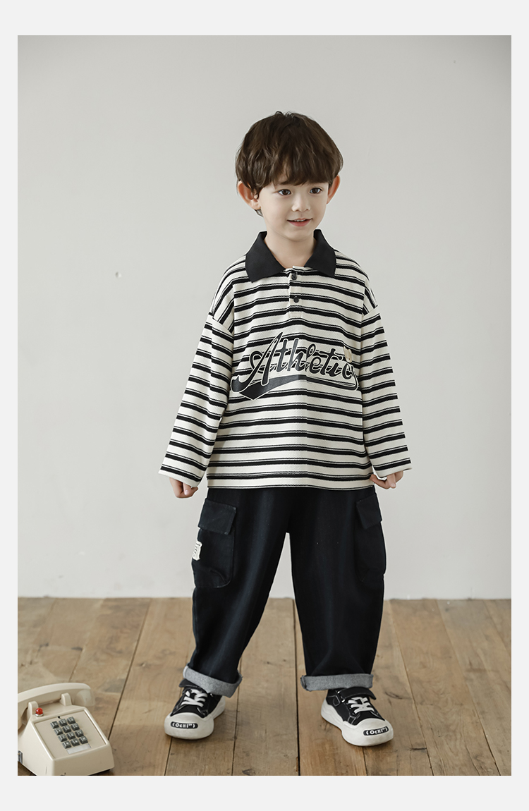 Wuri Boys 'T 셔츠 봄과 가을 2024 새로운 긴 소매 격자 옷깃베이스 셔츠 올 매치 어린이 탑스토어 가기