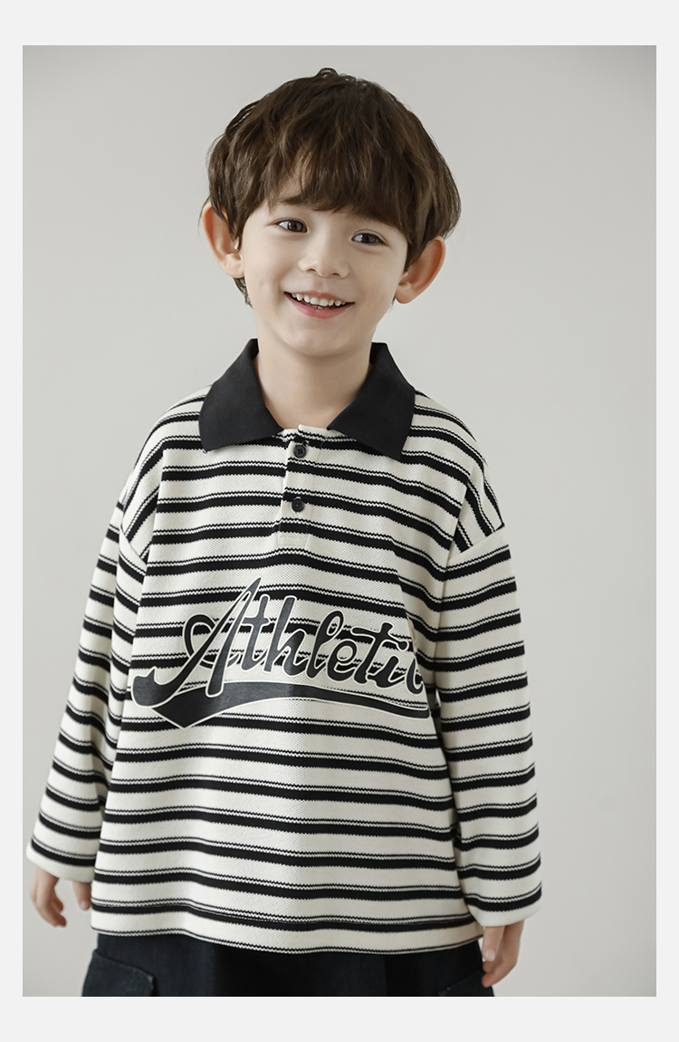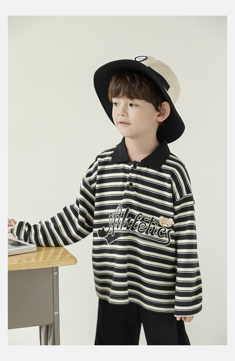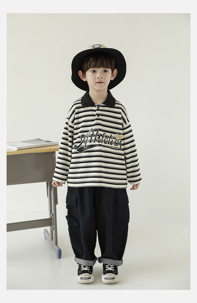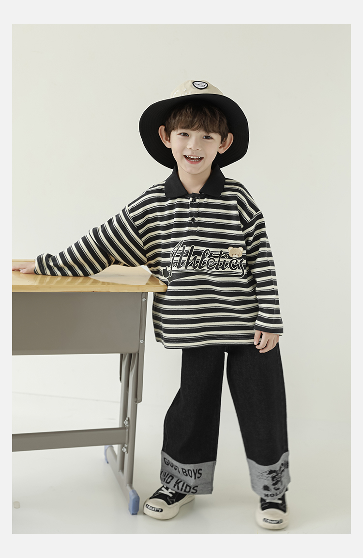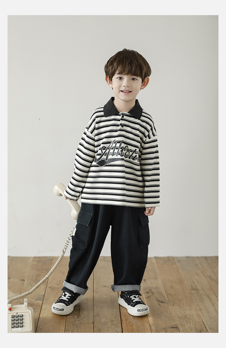 Wuri Boys 'T 셔츠 봄과 가을 2024 새로운 긴 소매 격자 옷깃베이스 셔츠 올 매치 어린이 탑스토어 가기