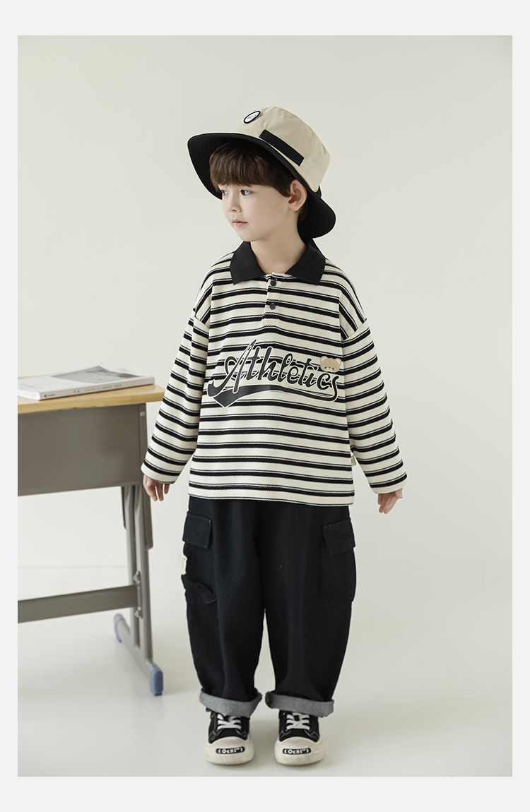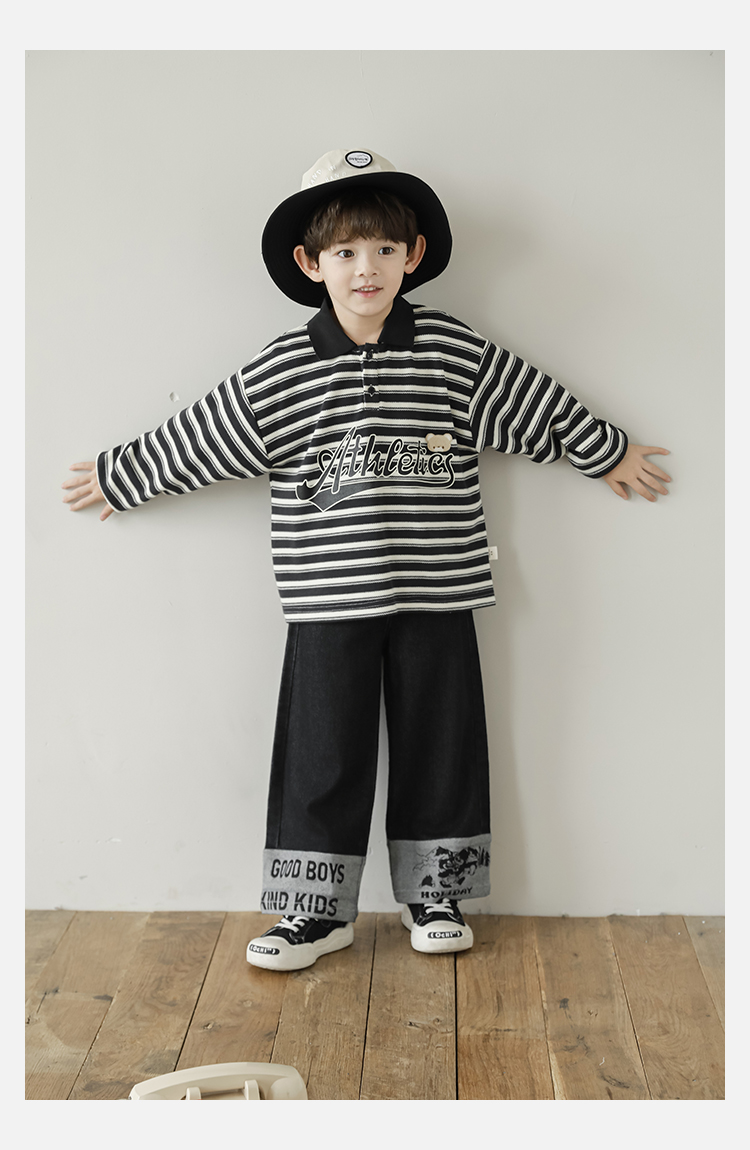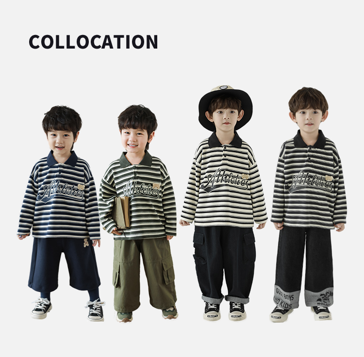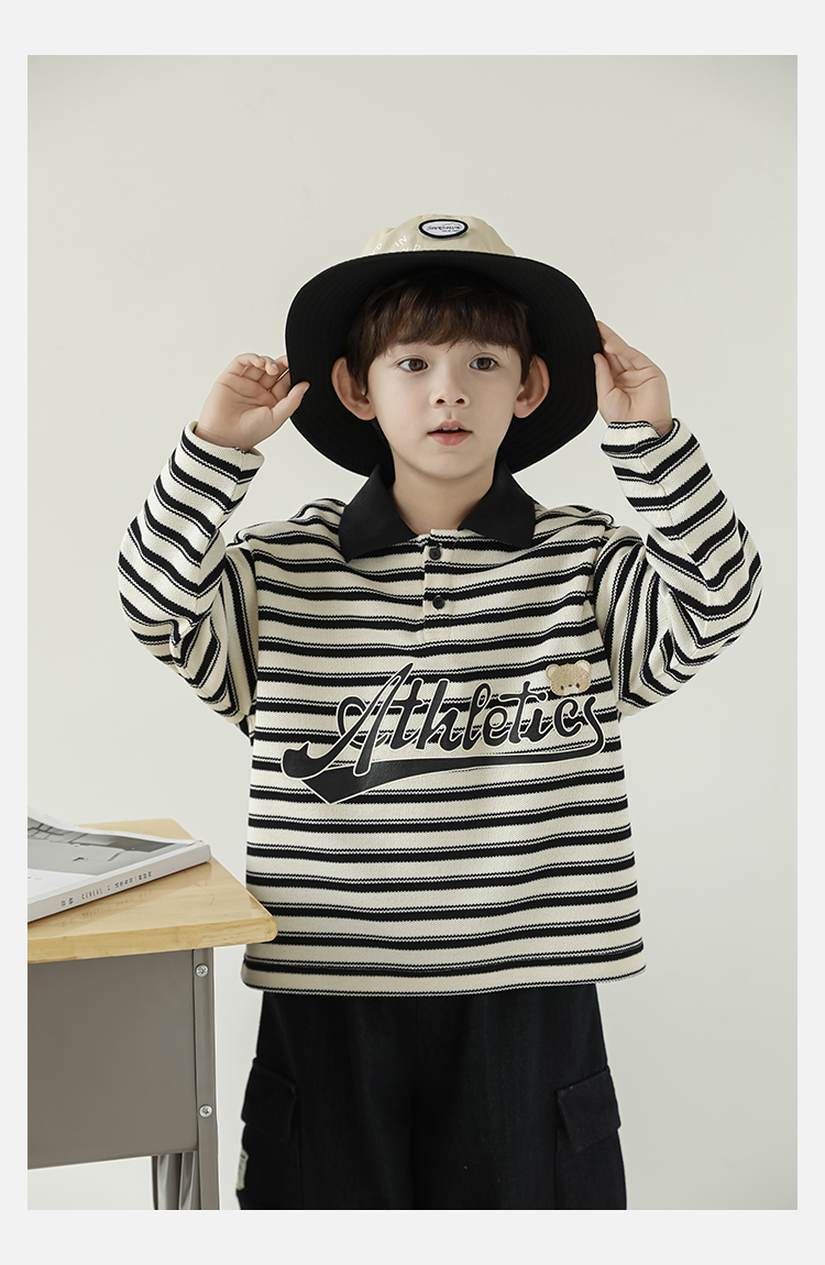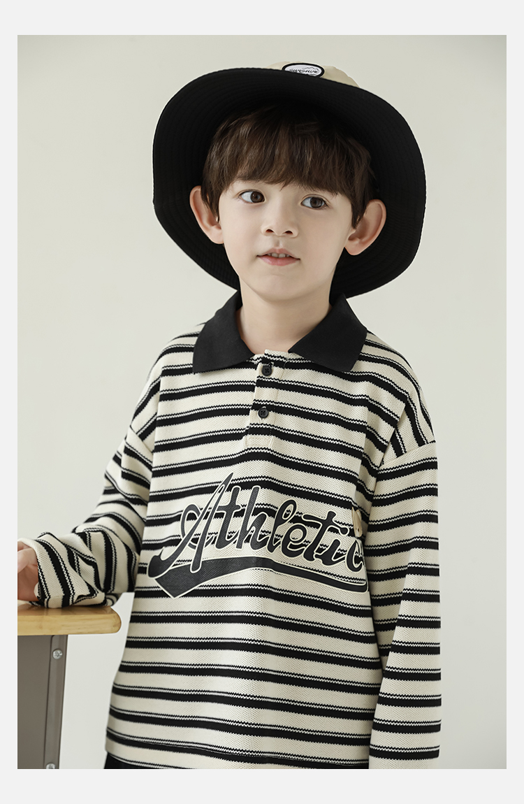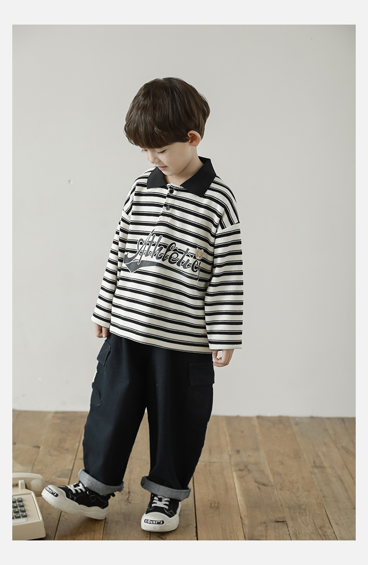 Wuri Boys 'T 셔츠 봄과 가을 2024 새로운 긴 소매 격자 옷깃베이스 셔츠 올 매치 어린이 탑스토어 가기