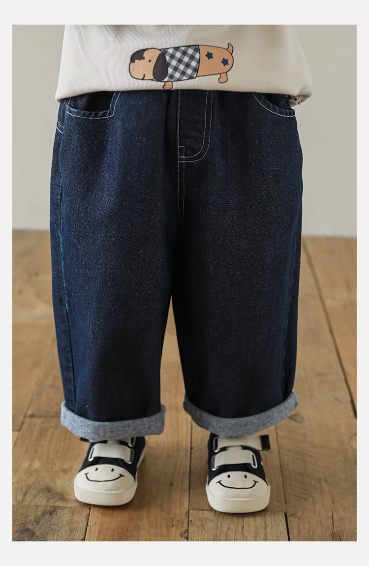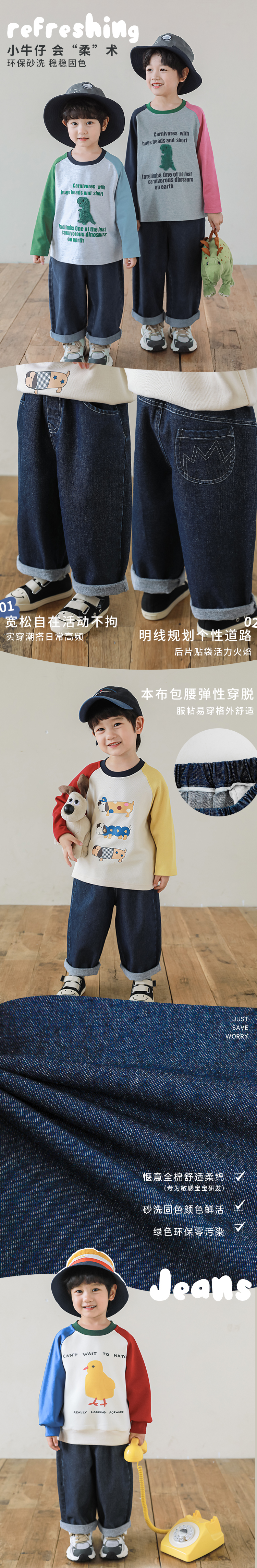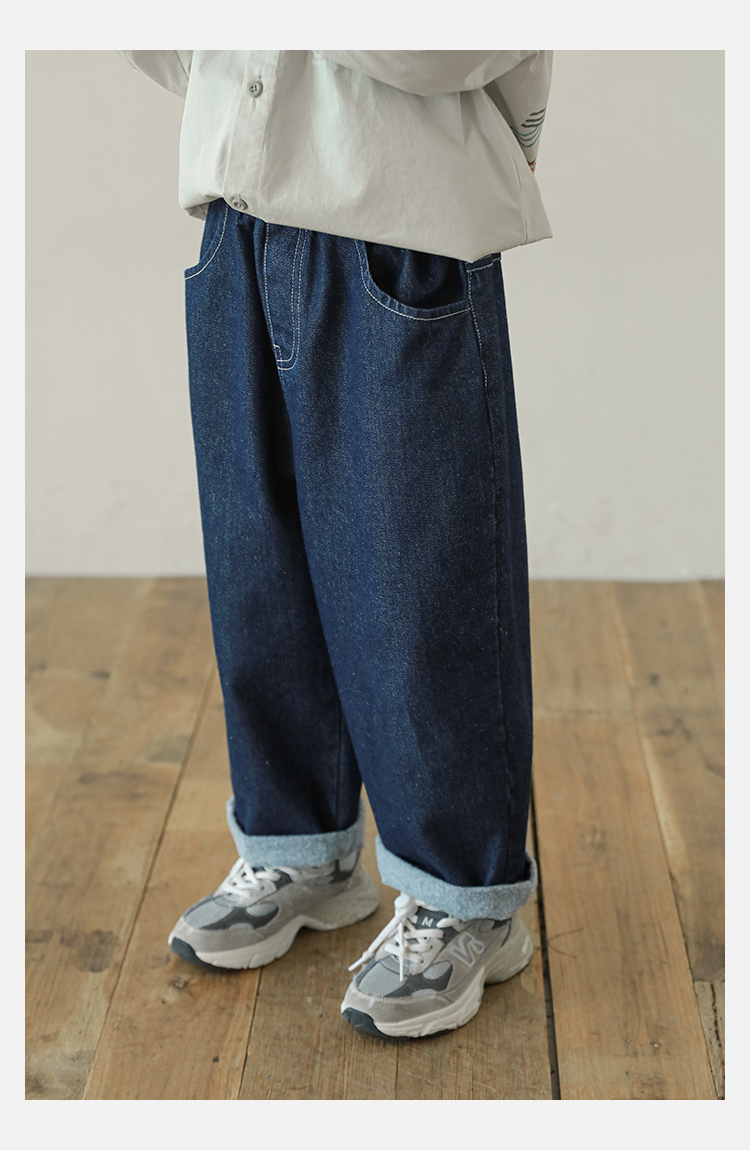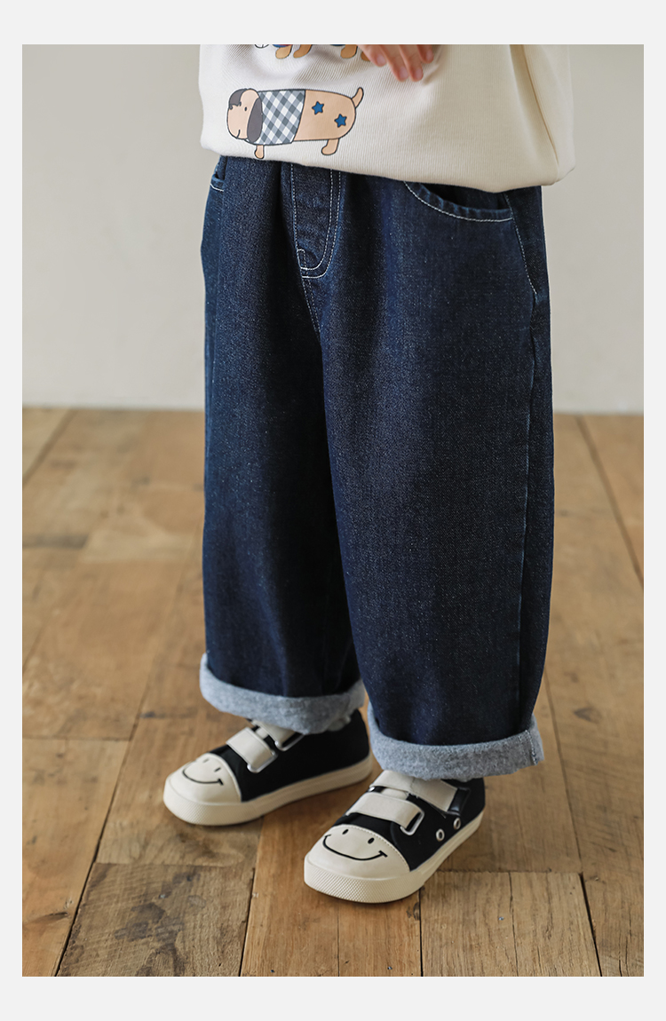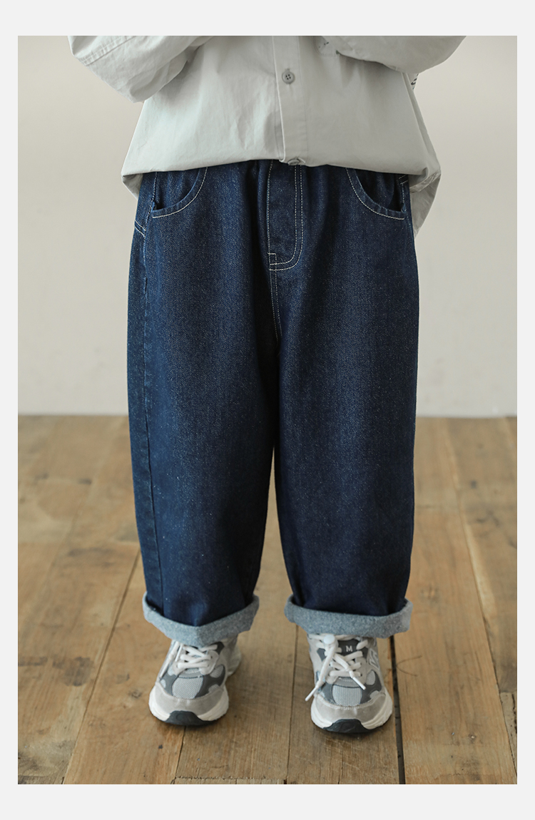Wulibu Yinan 2025 가을 신상 루즈한 스트레이트 와이드 레그 청바지, 패셔너블하고 활용도가 높은 아동용 팬츠스토어 가기