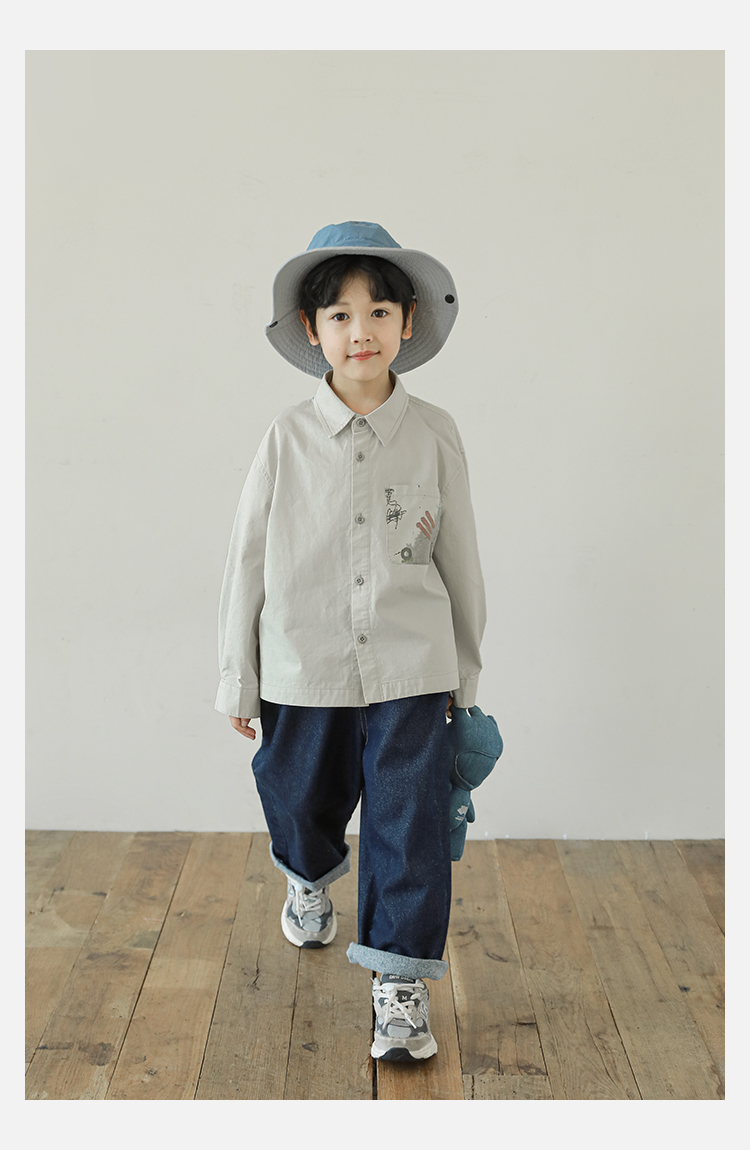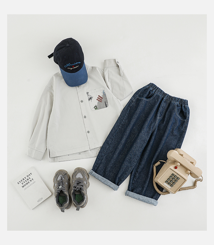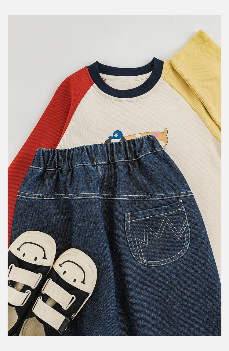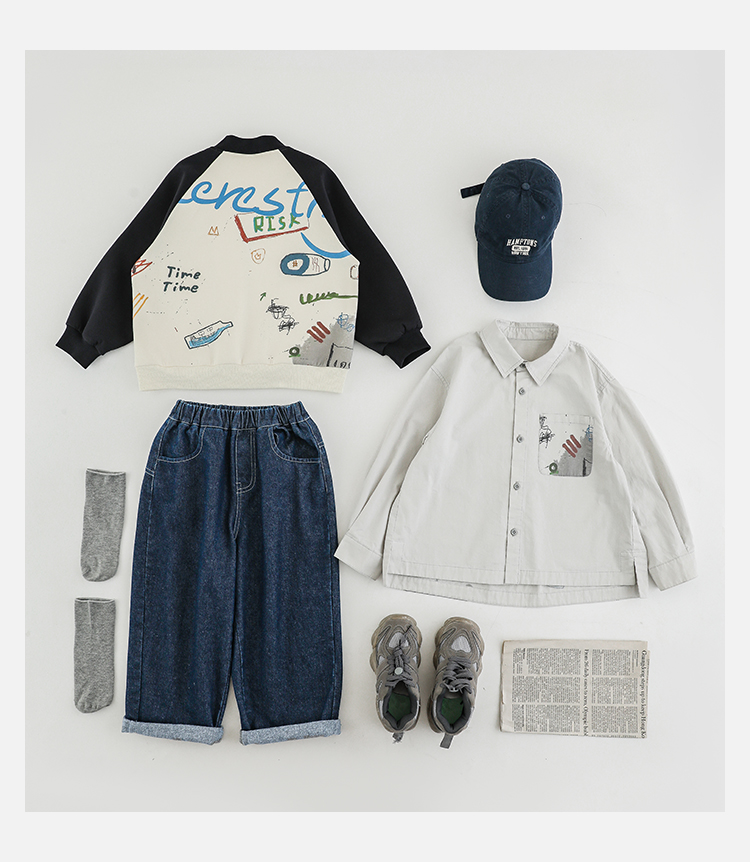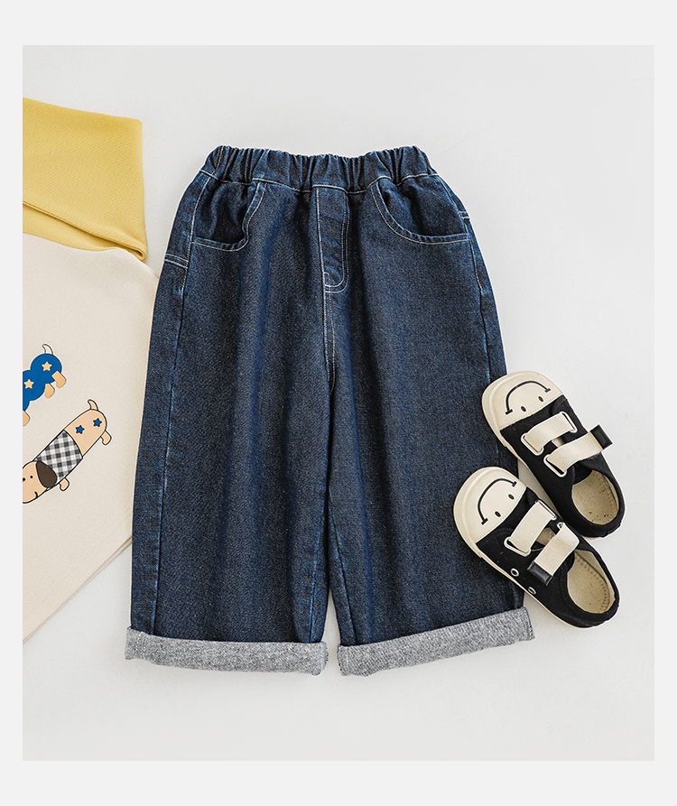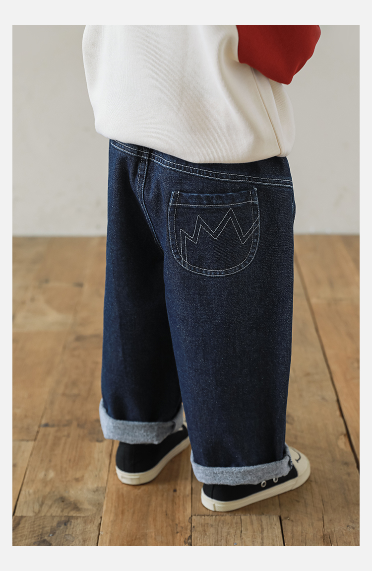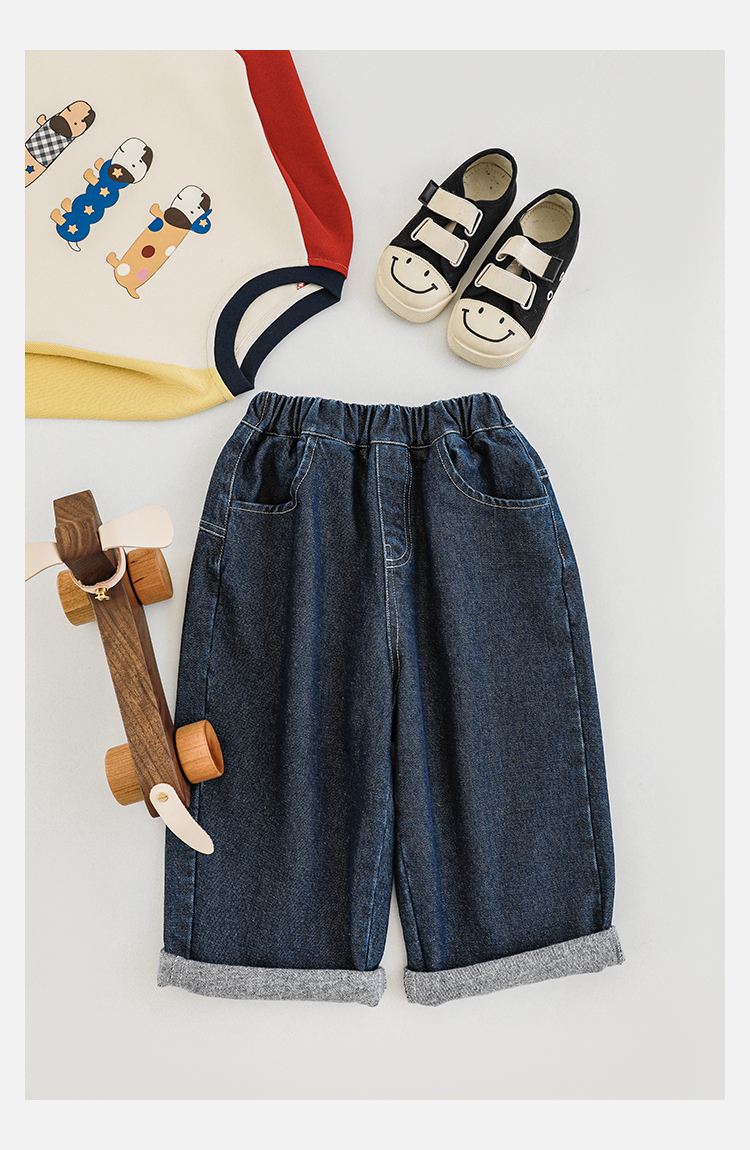 Wulibu Yinan 2025 가을 신상 루즈한 스트레이트 와이드 레그 청바지, 패셔너블하고 활용도가 높은 아동용 팬츠스토어 가기