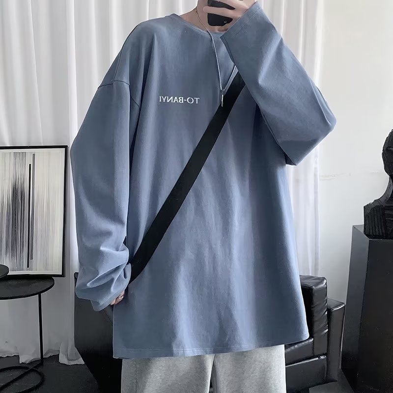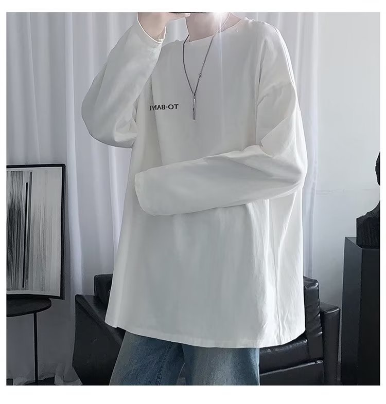 홍콩 스타일 긴팔 티셔츠 남성용 가을 느슨한 둥근 목 커플의베이스 셔츠 캐주얼 트렌디 이너 탑 남성용 티셔츠스토어 가기