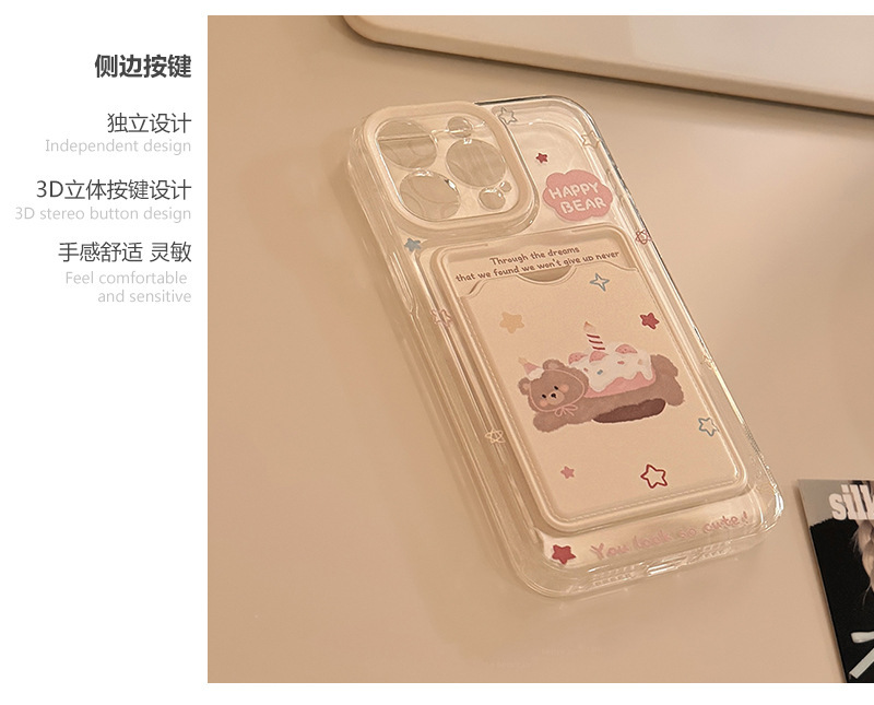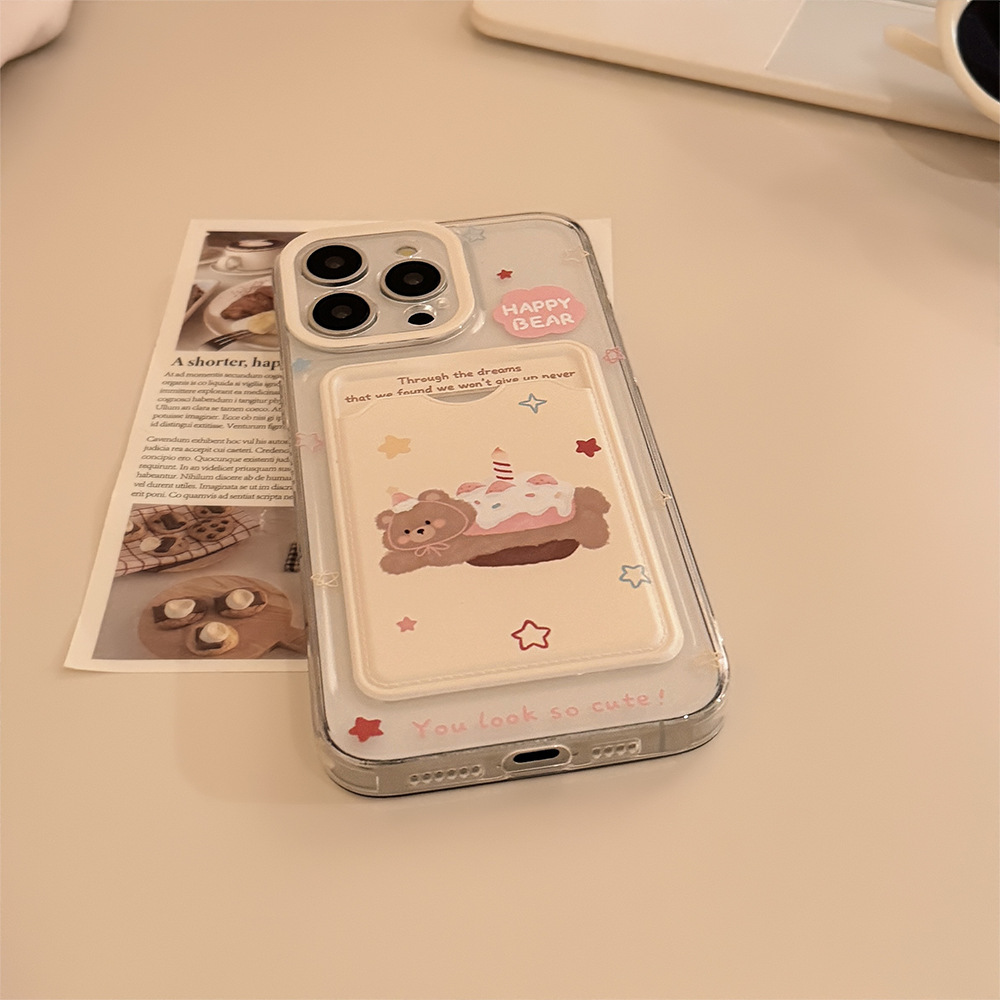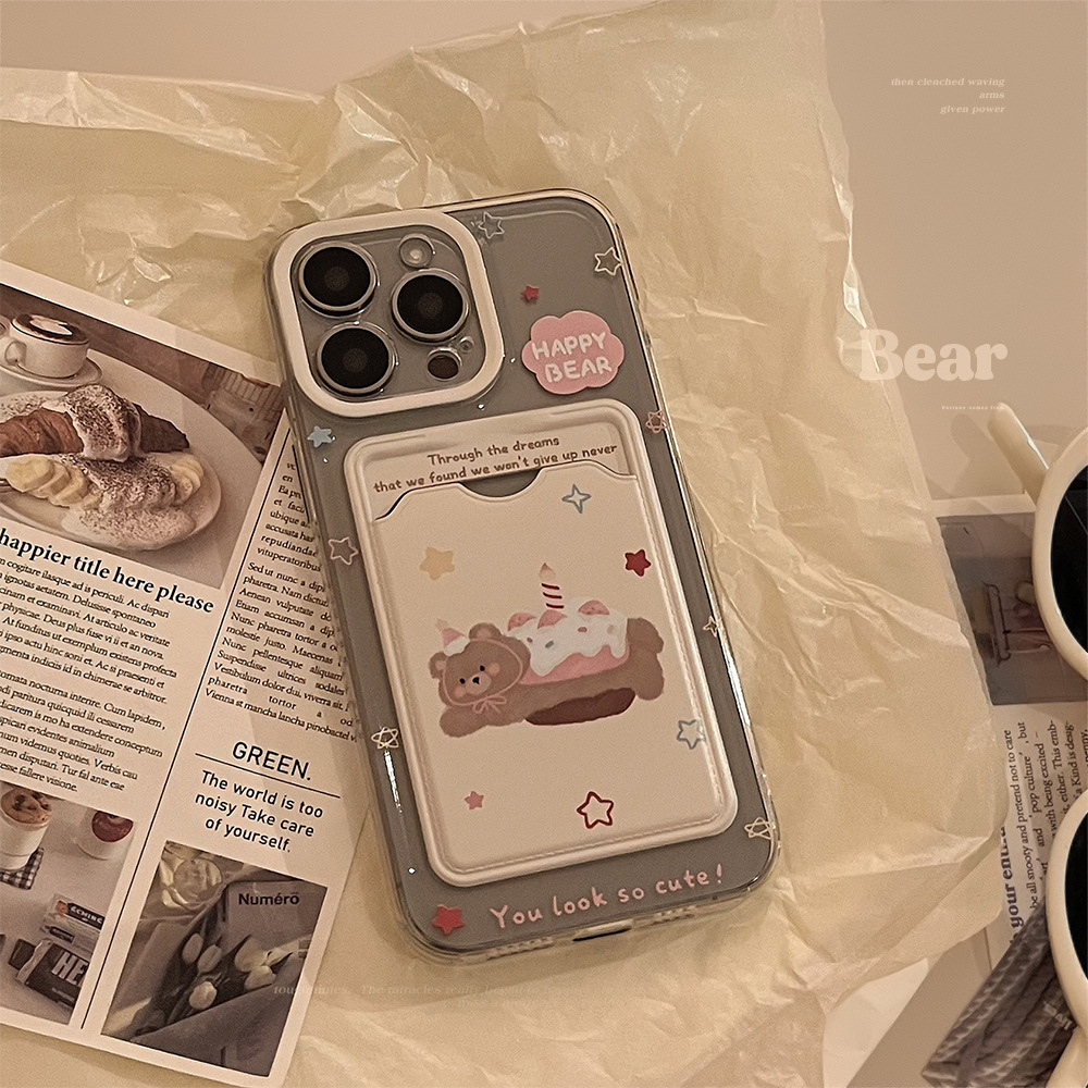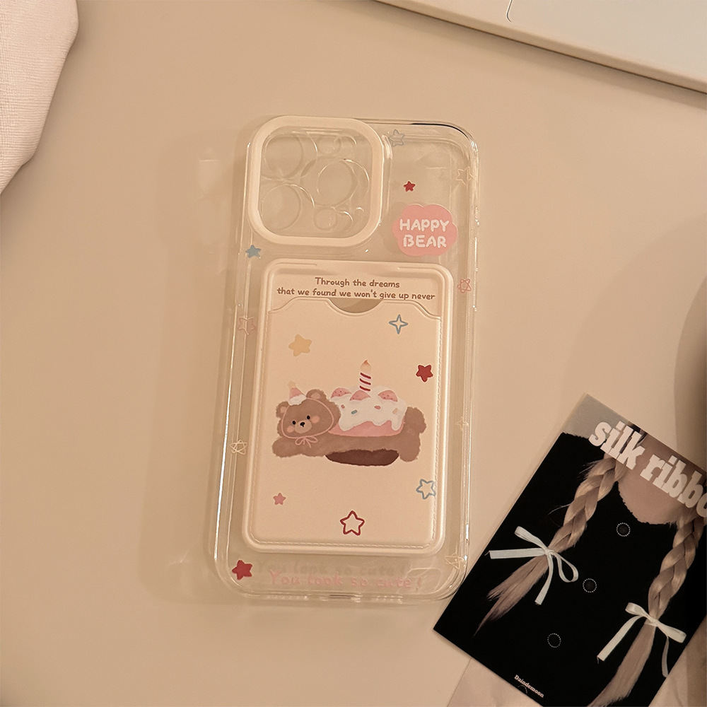 Hanfeng 베어 케이크 카드 케이스 애플 16promax 휴대 전화 케이스 iphone15 투명 11 풀 13 소프트