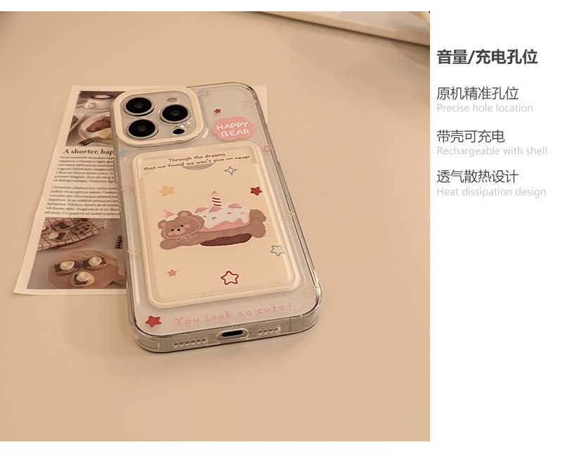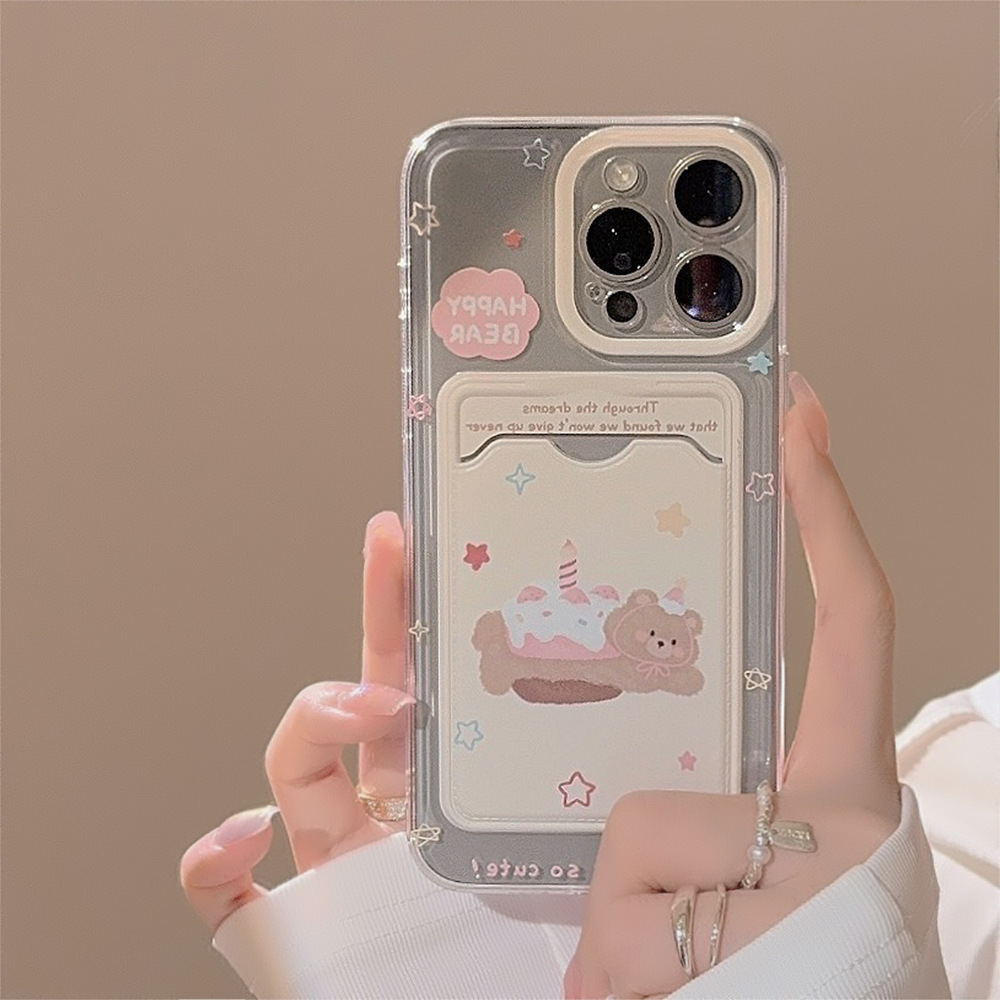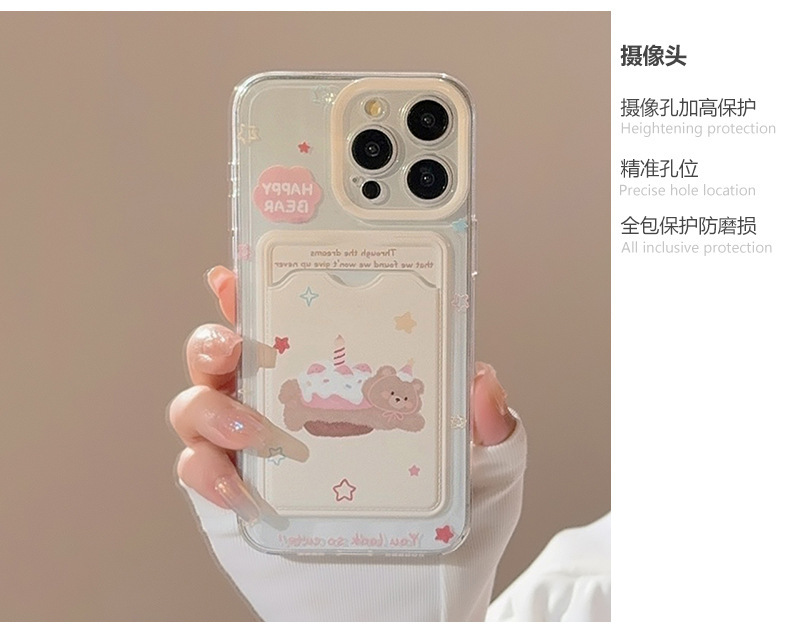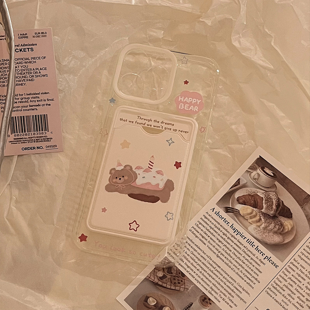 Hanfeng 베어 케이크 카드 케이스 애플 16promax 휴대 전화 케이스 iphone15 투명 11 풀 13 소프트
