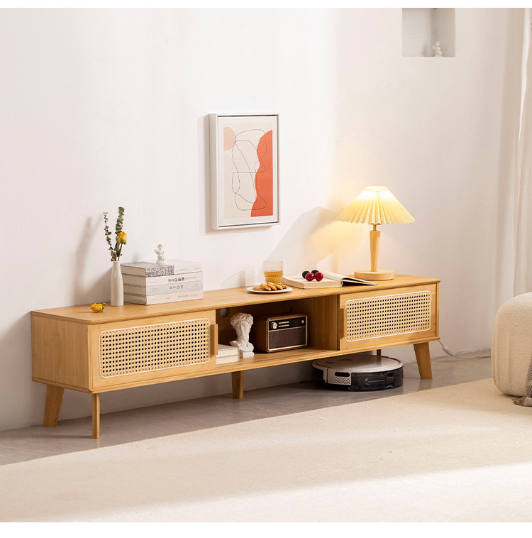 일본 스타일의 단단한 나무 등나무 커피 테이블 TV 내각 조합 작은 아파트 간단한 현대 홈스테이 사물함 바닥 보관 캐비닛